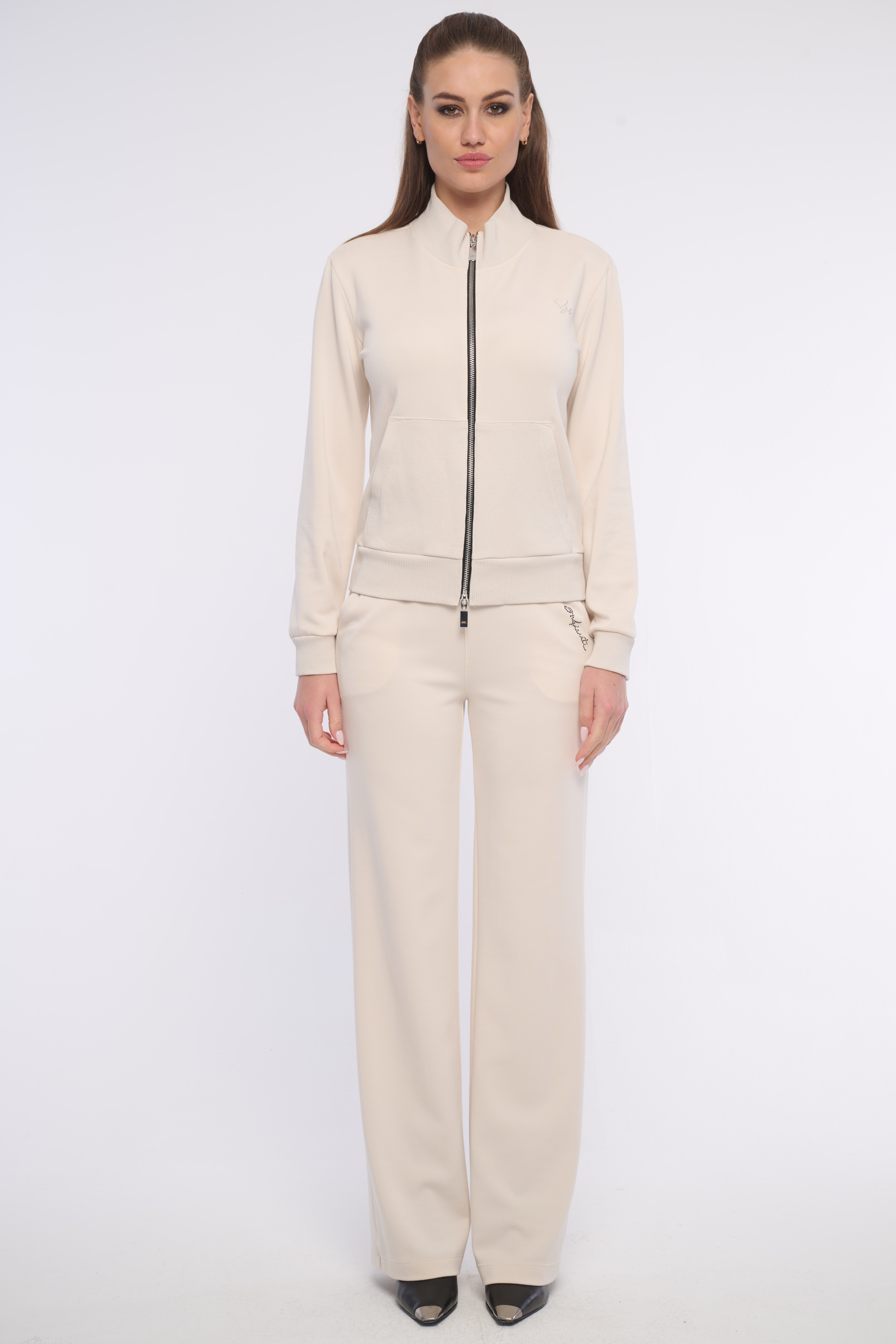 Velmi pohodlná mikina z kombinace materiálů - kapsy, zakončení rukávů a stoják jsou z žebra. Detailem je logo z luxusních krystalů Preciosa. Dostupná ve dvou barevných variantách.