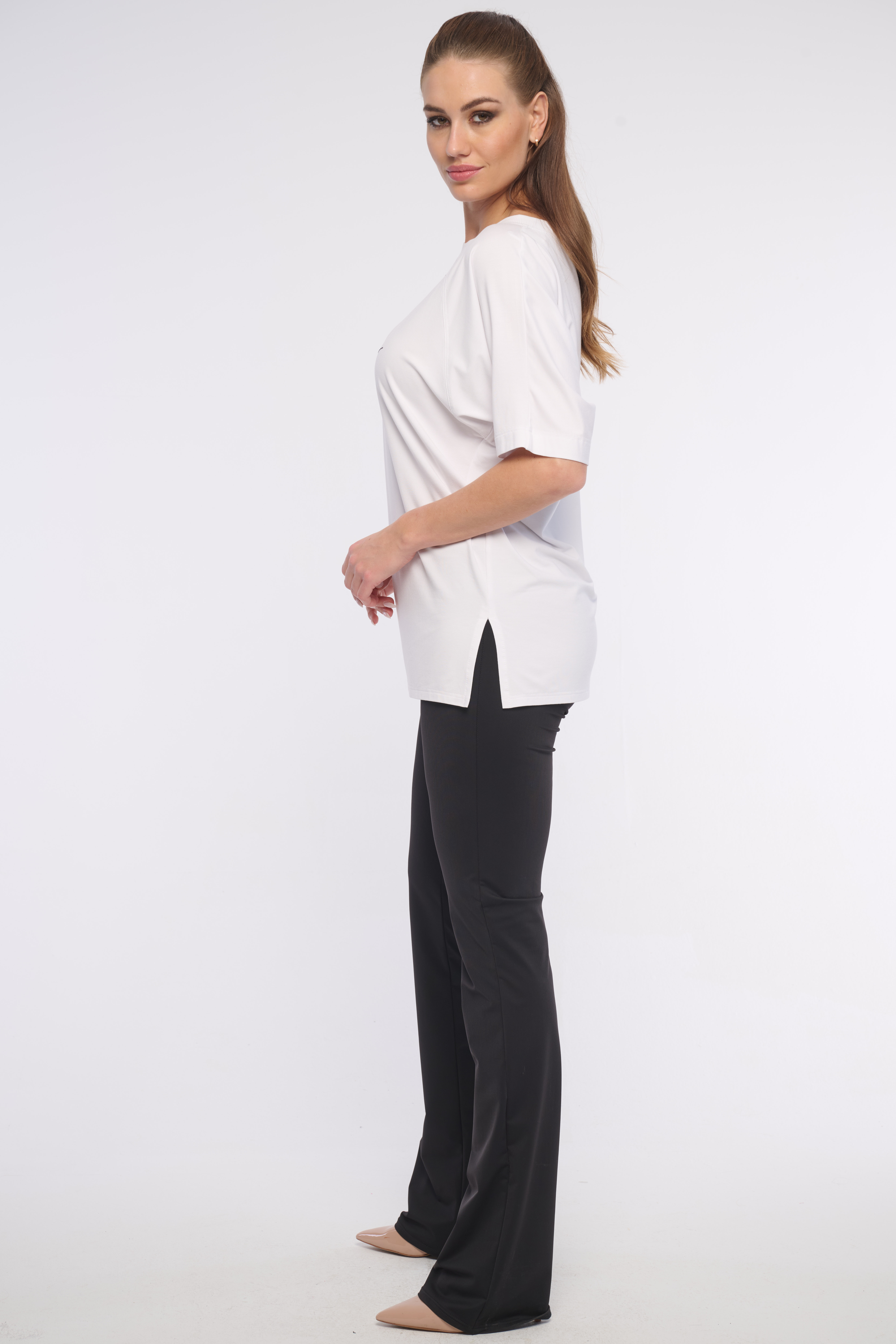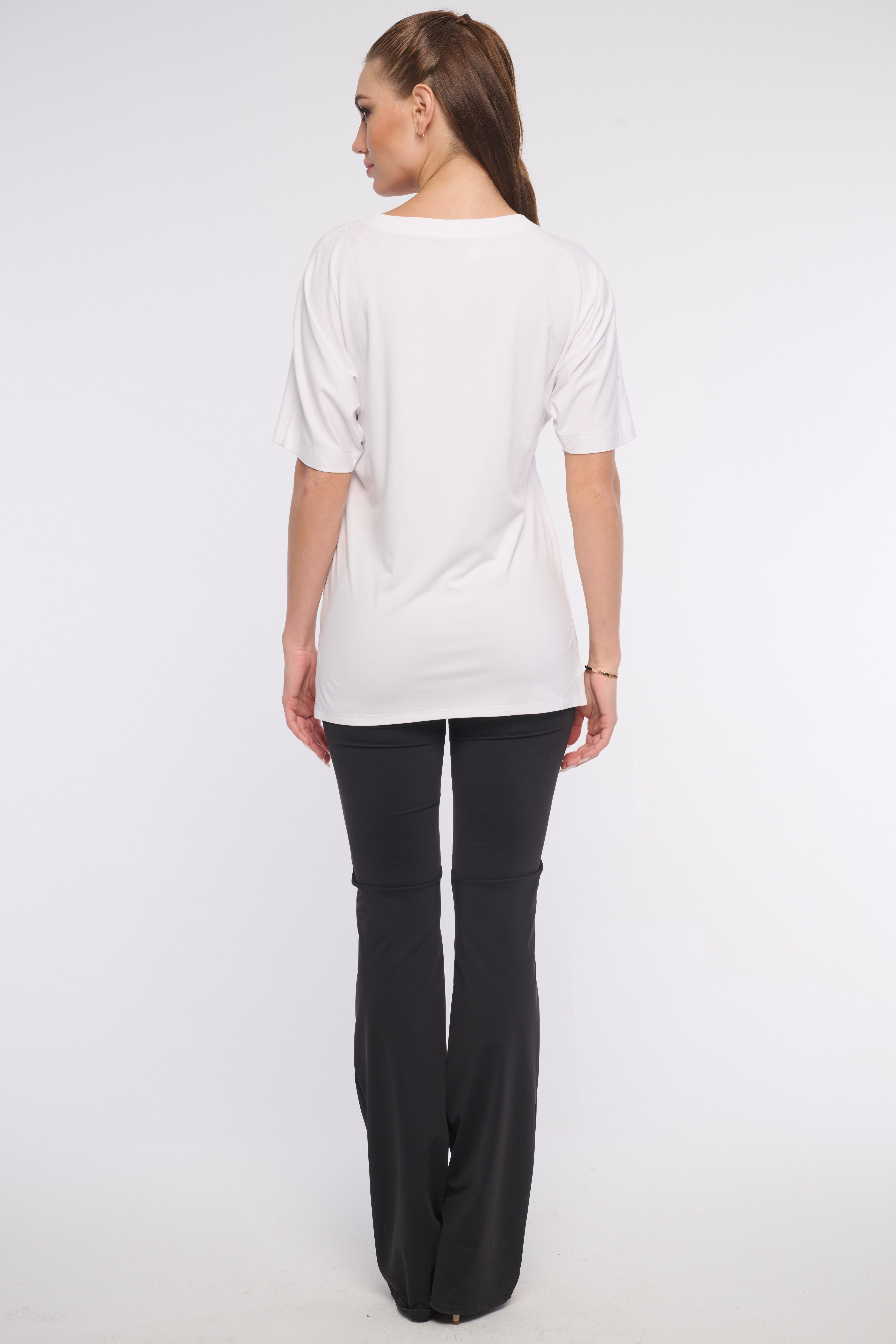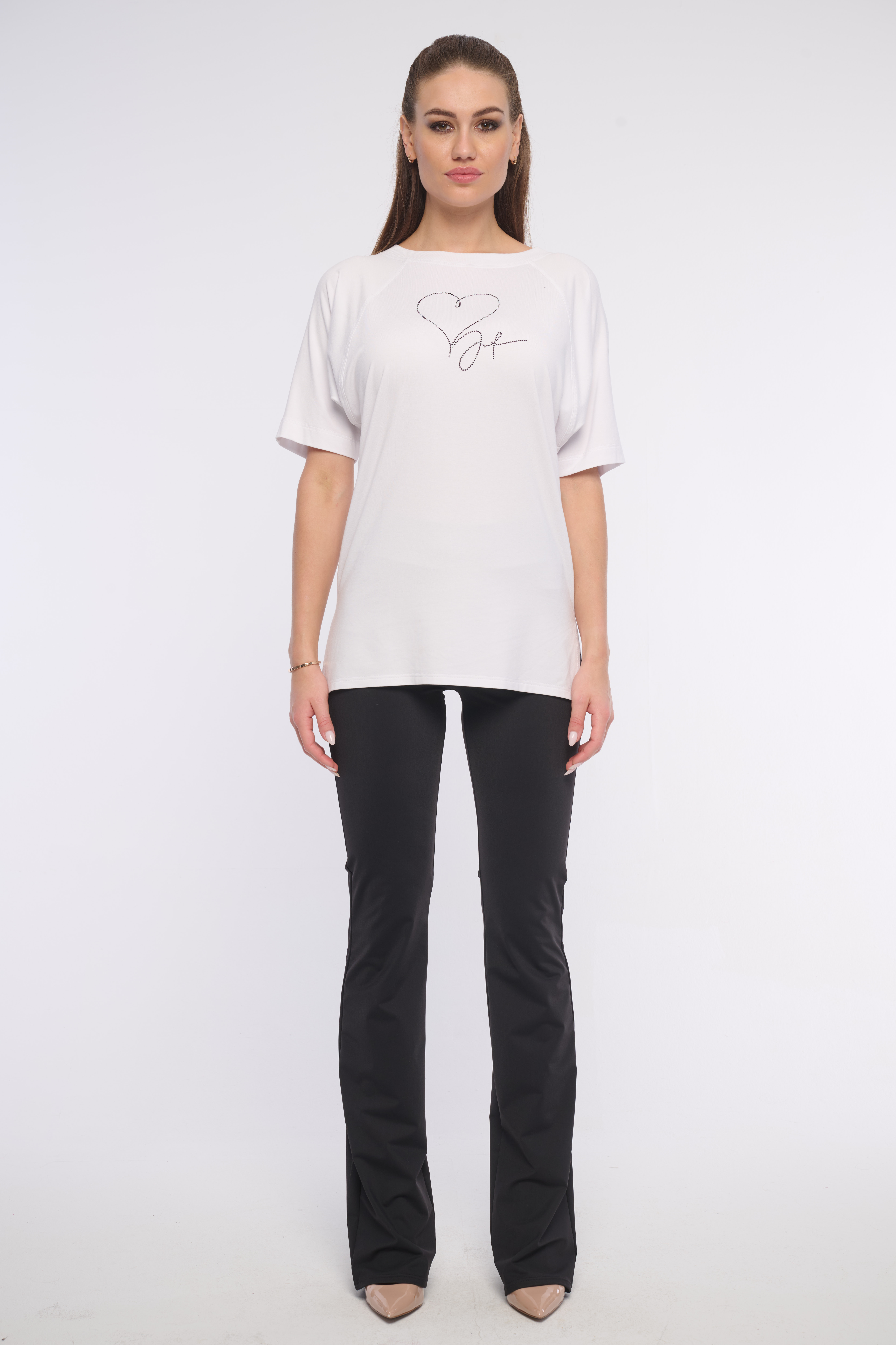 Elegantní a velmi pohodlné volné triko z příjemného materiálu s žebrovým lemem okolo výstřihu, zdobené naším logem z luxusních krystalů Swarovski. Dostupné ve dvou variantách.