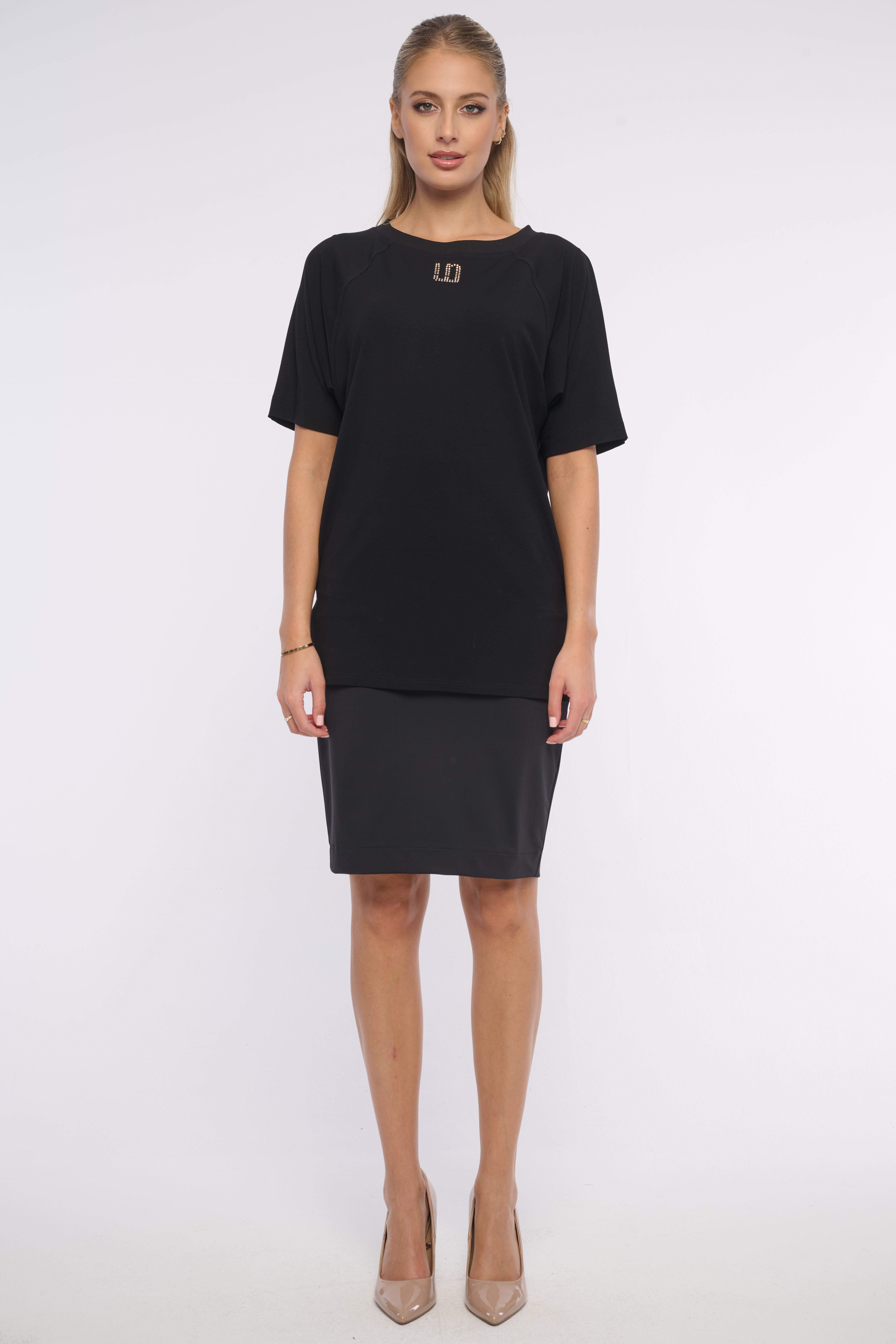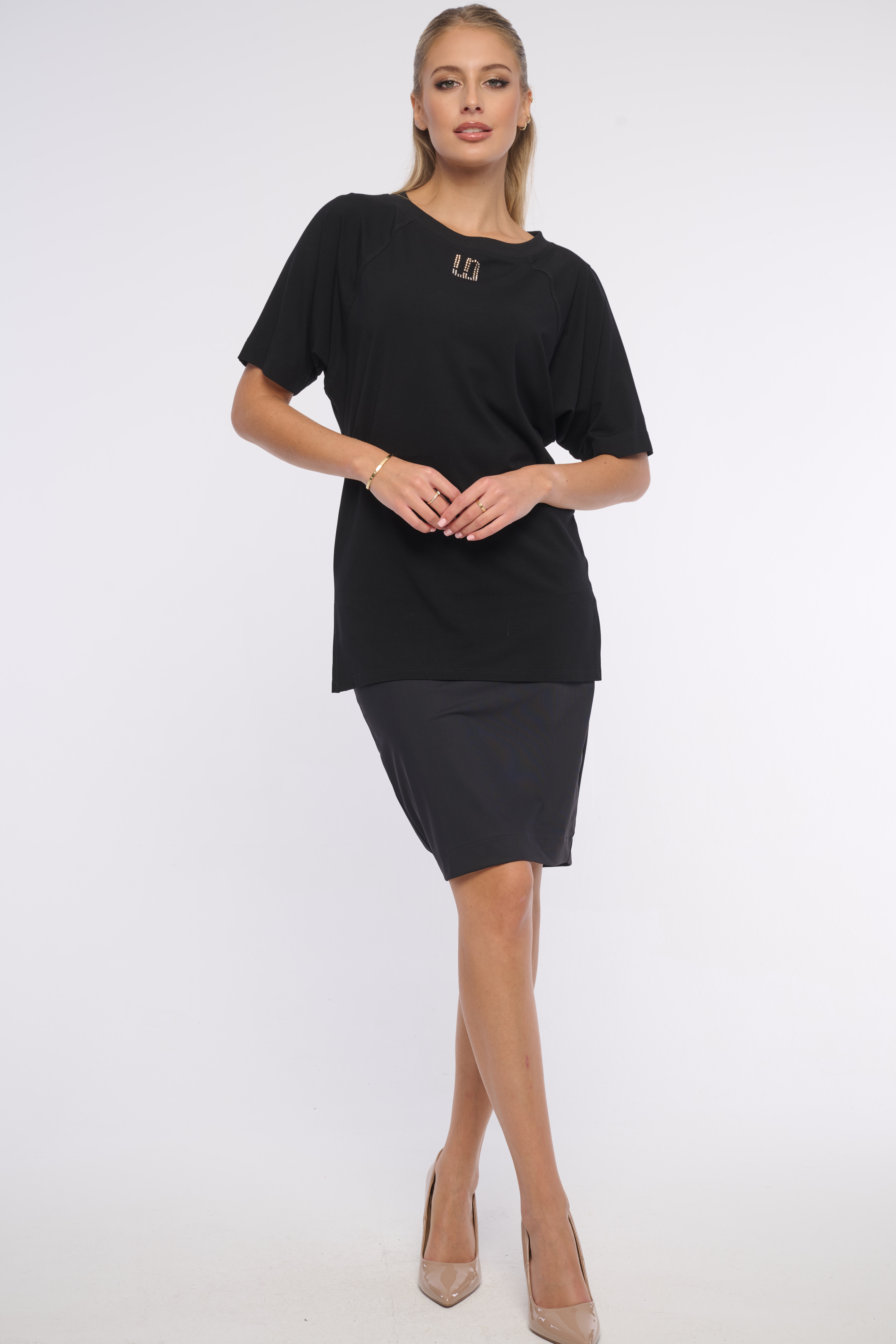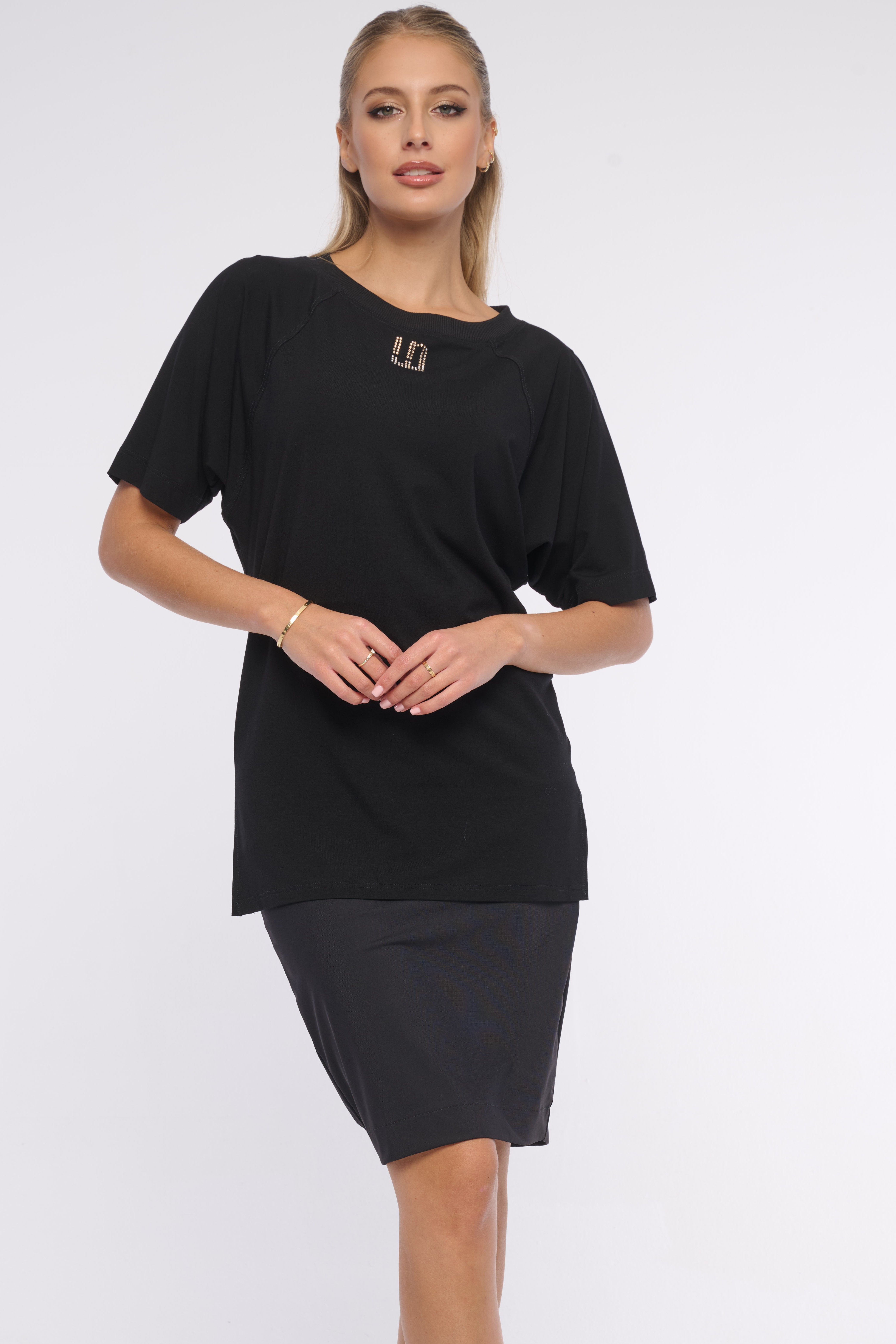 Elegantní a velmi pohodlné volné triko z příjemného materiálu s žebrovým lemem okolo výstřihu, zdobené naším logem z luxusních krystalů Swarovski. Dostupné ve dvou variantách.