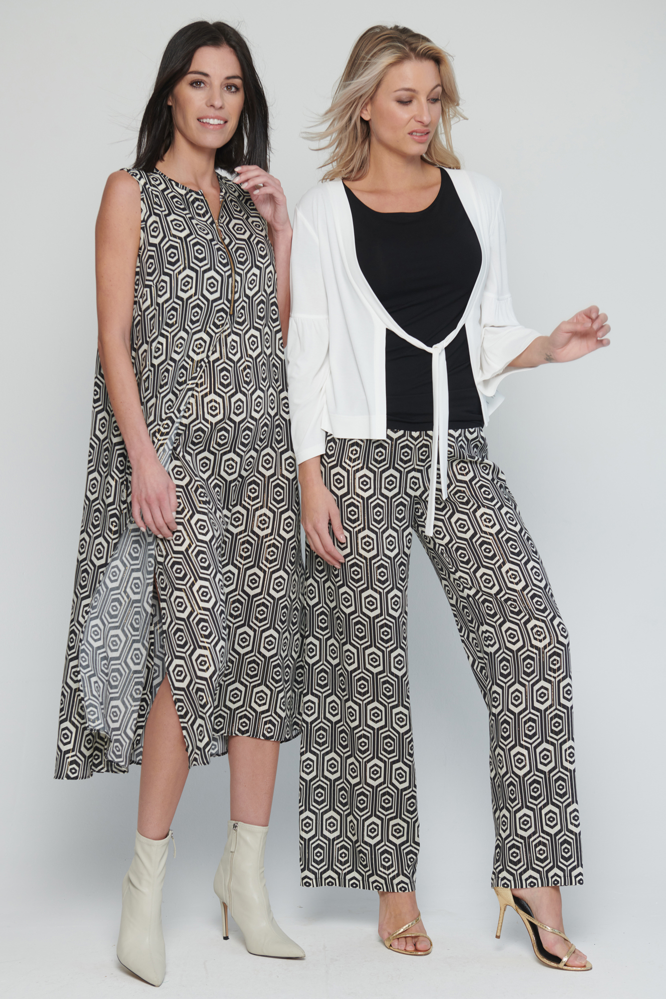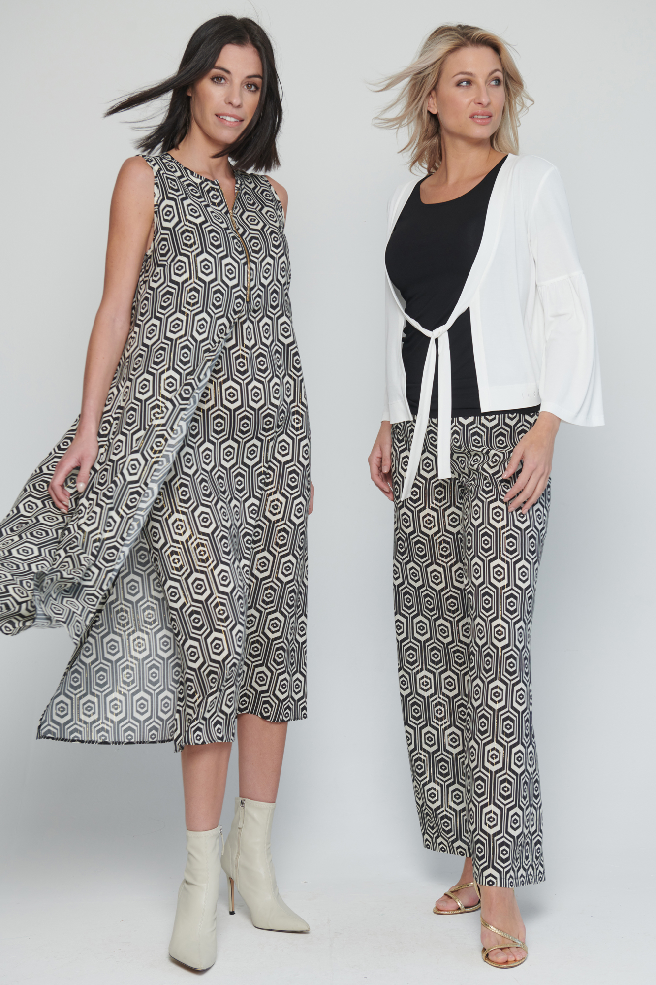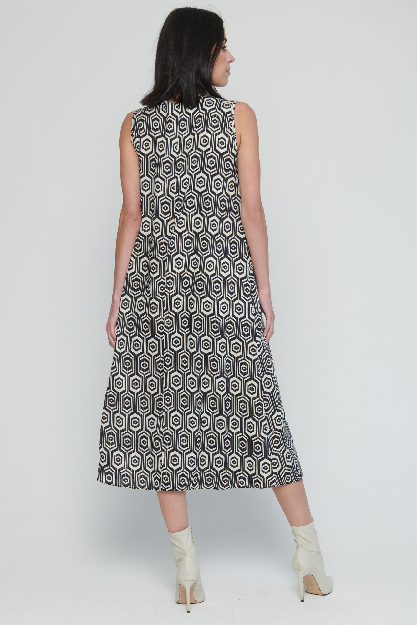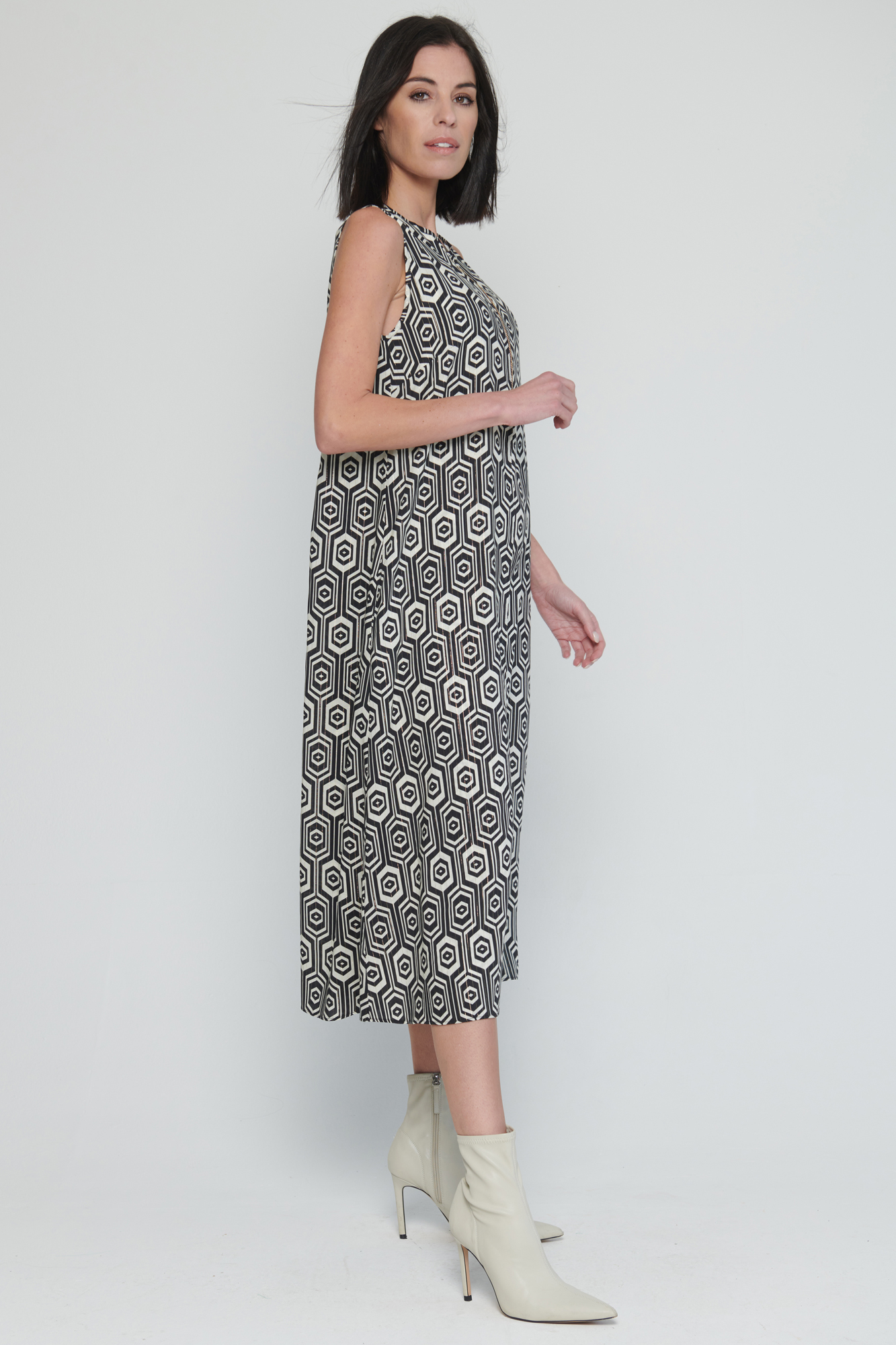 Volné dlouhé šaty bez rukávu. Zlatý zip.