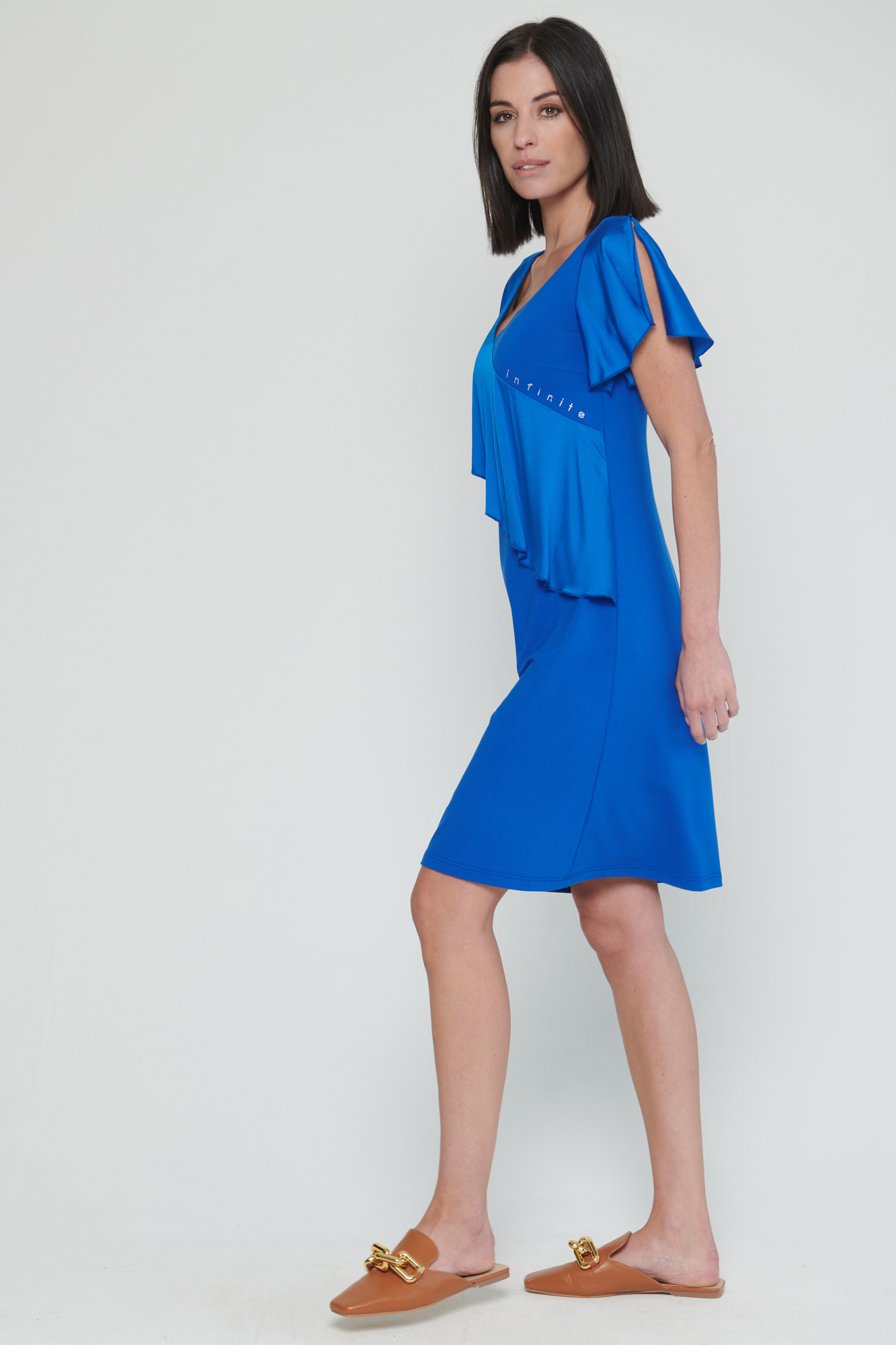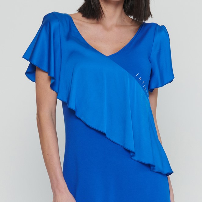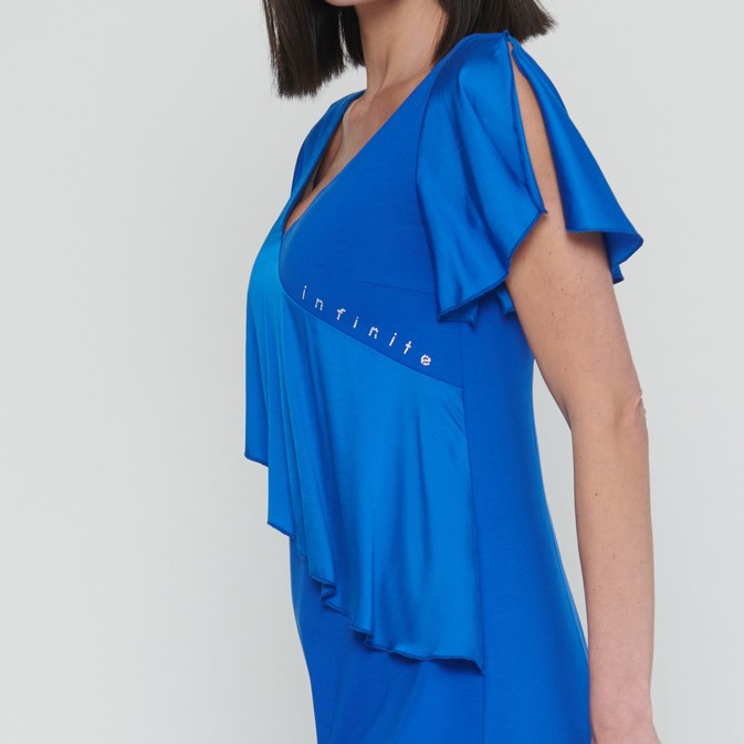 Úpletové šaty s kanýrem na předním díle. V délce šatů jsou rozparky a na straně crystalové logo Infinite.