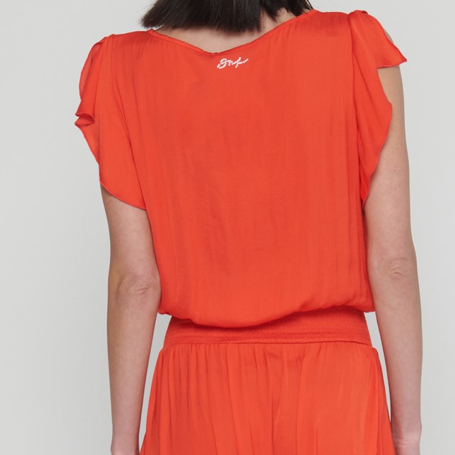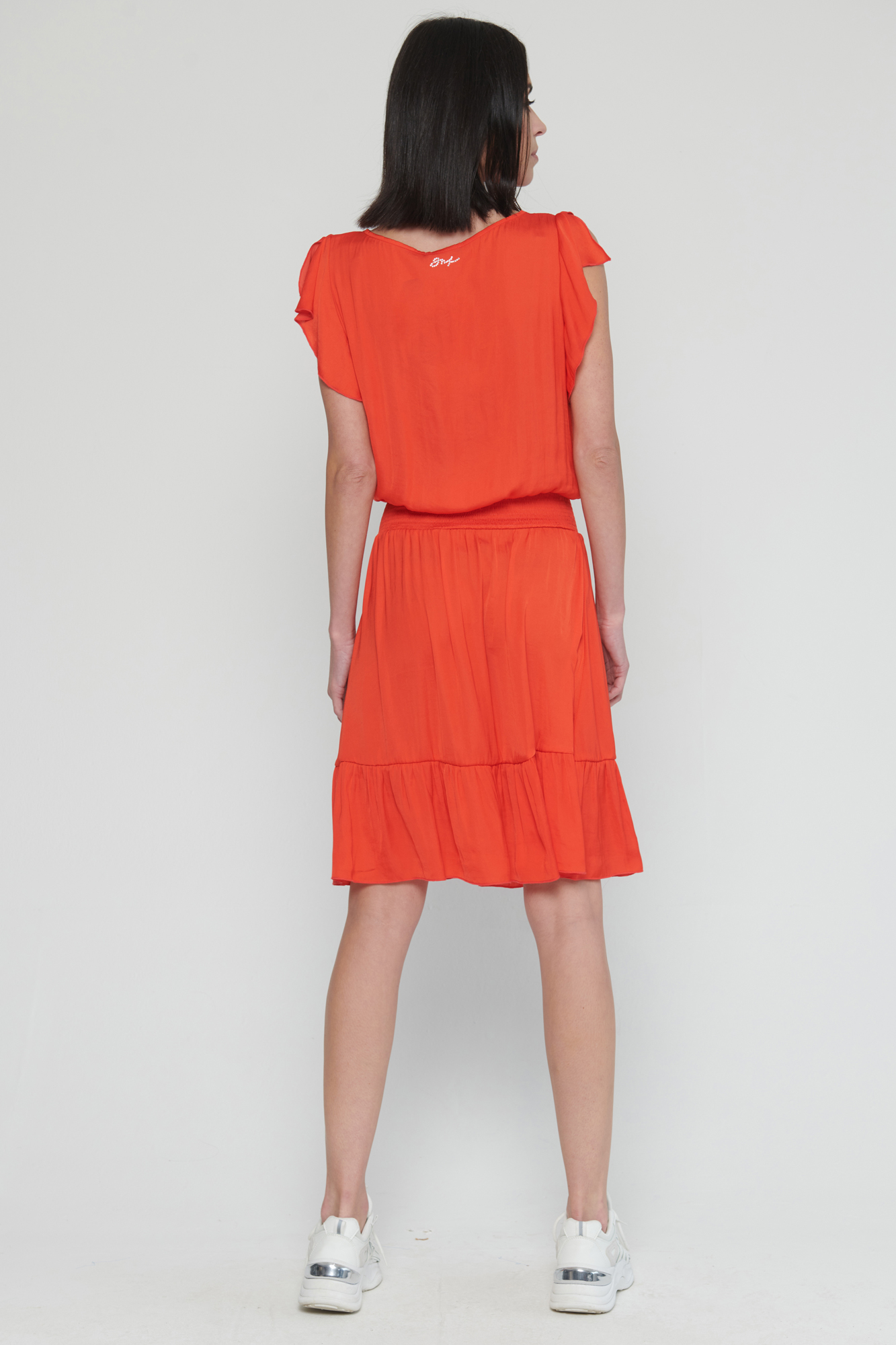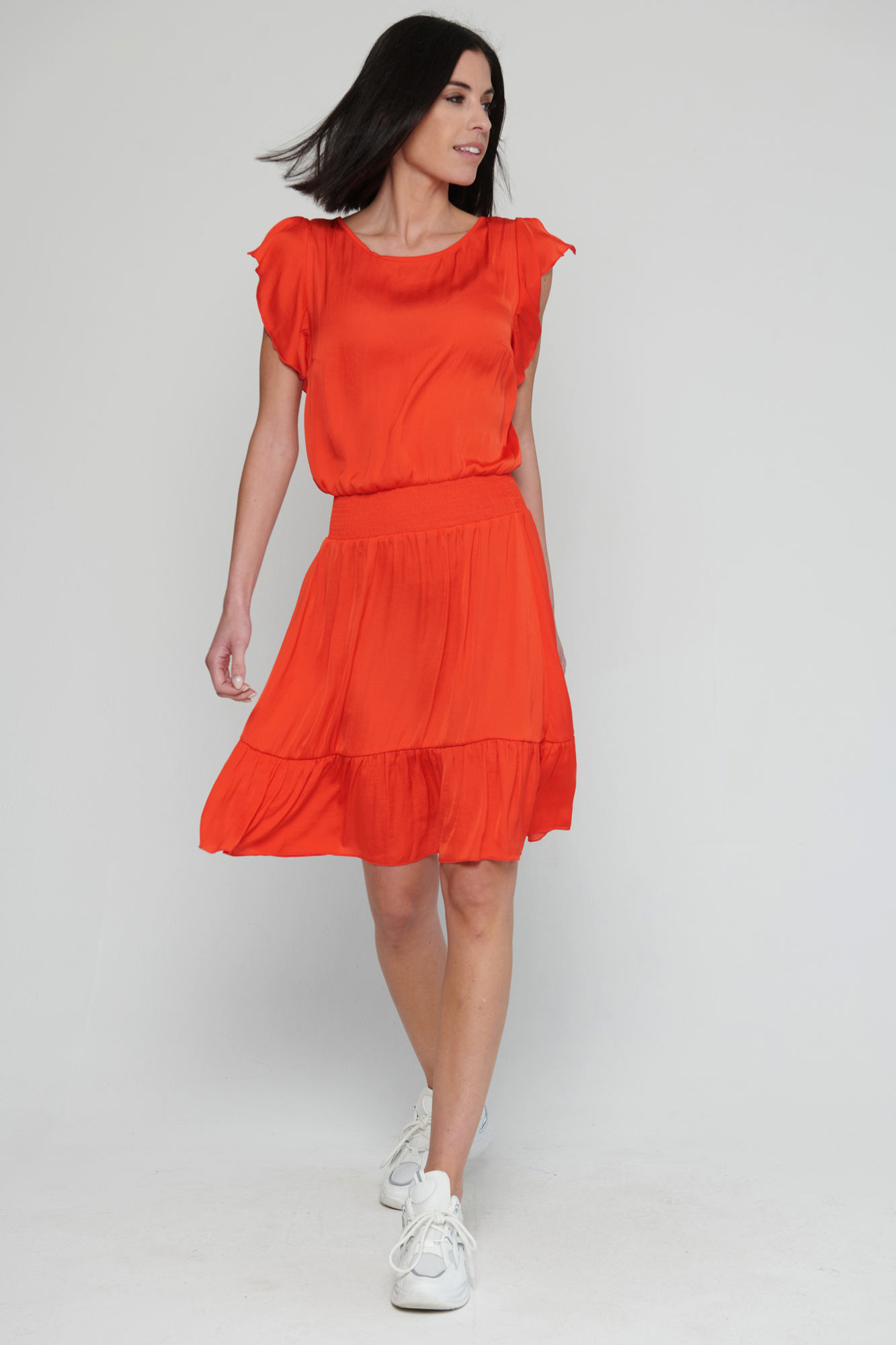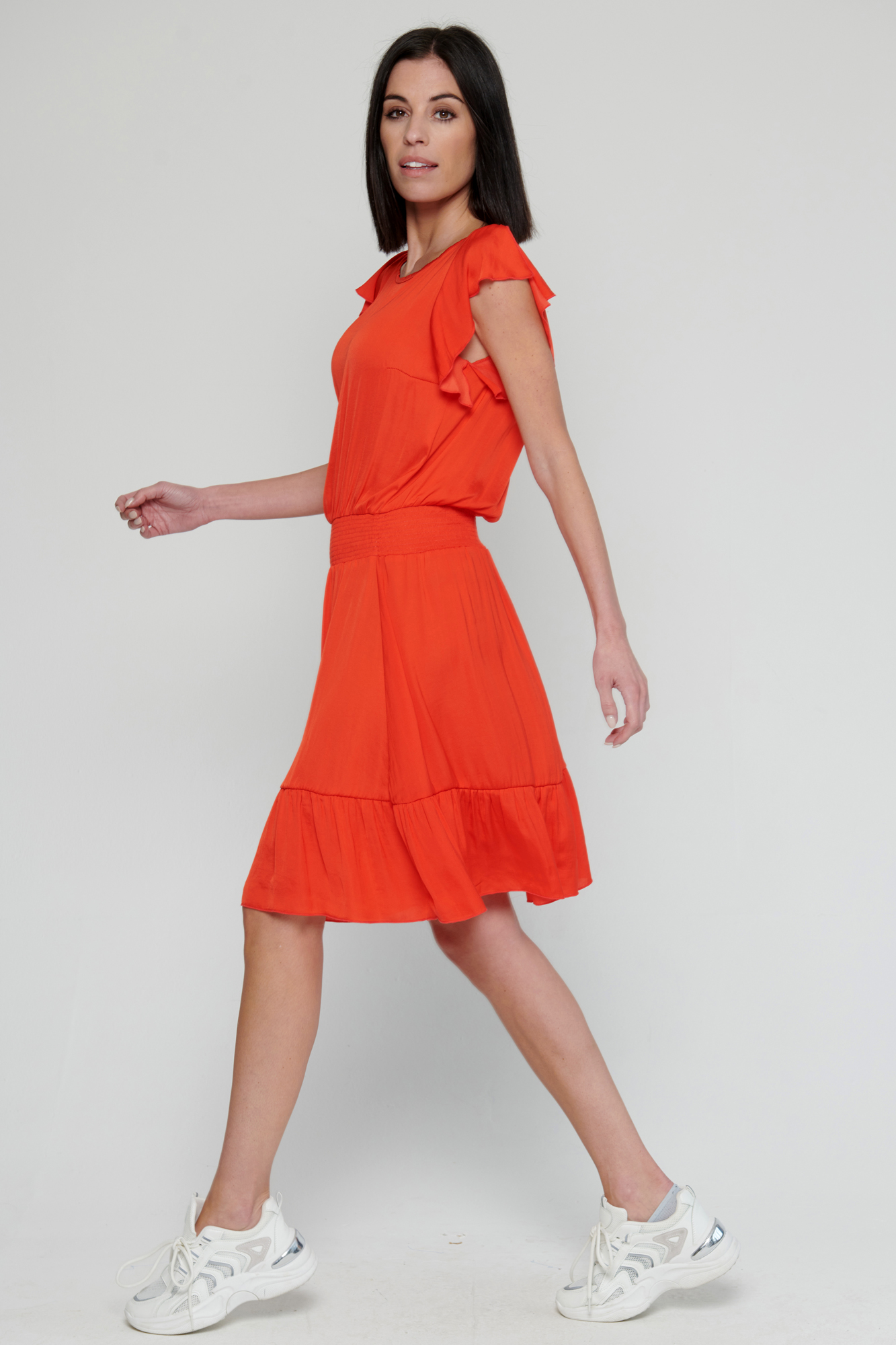 Romantické mini šaty s kanýrem a volány na rukávech.
