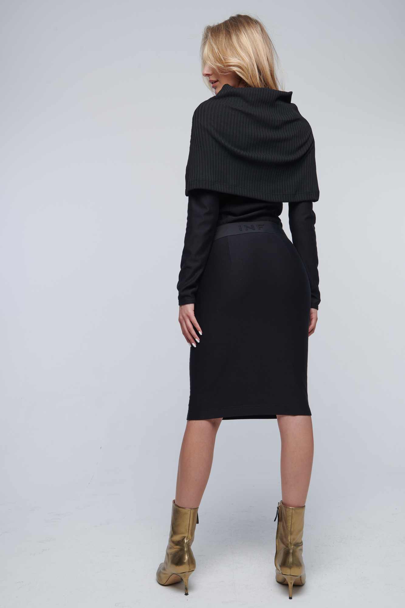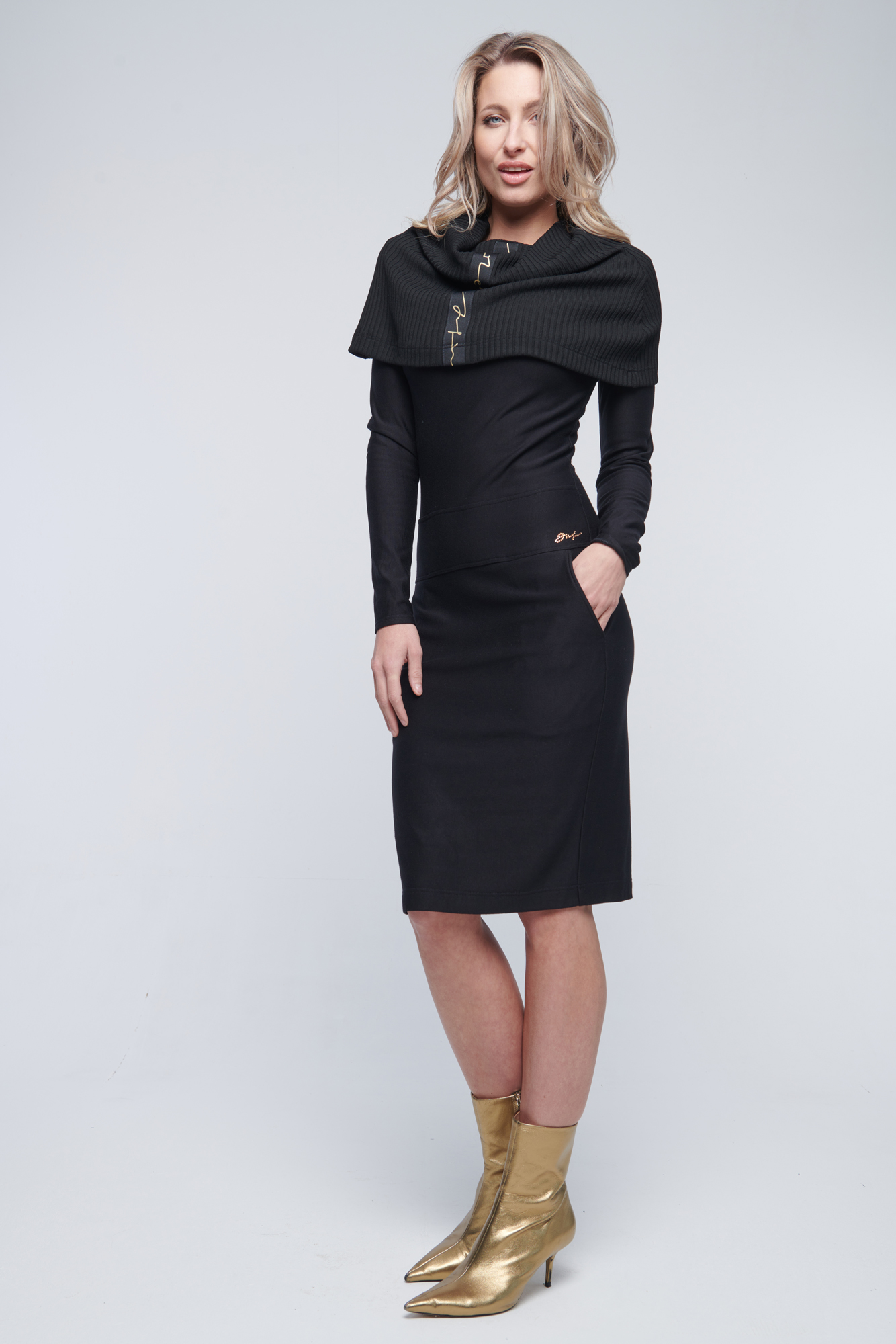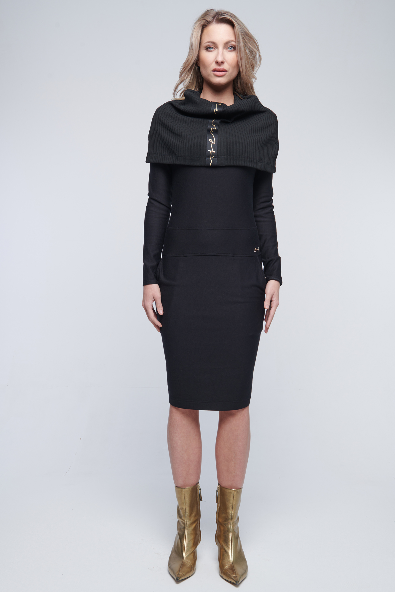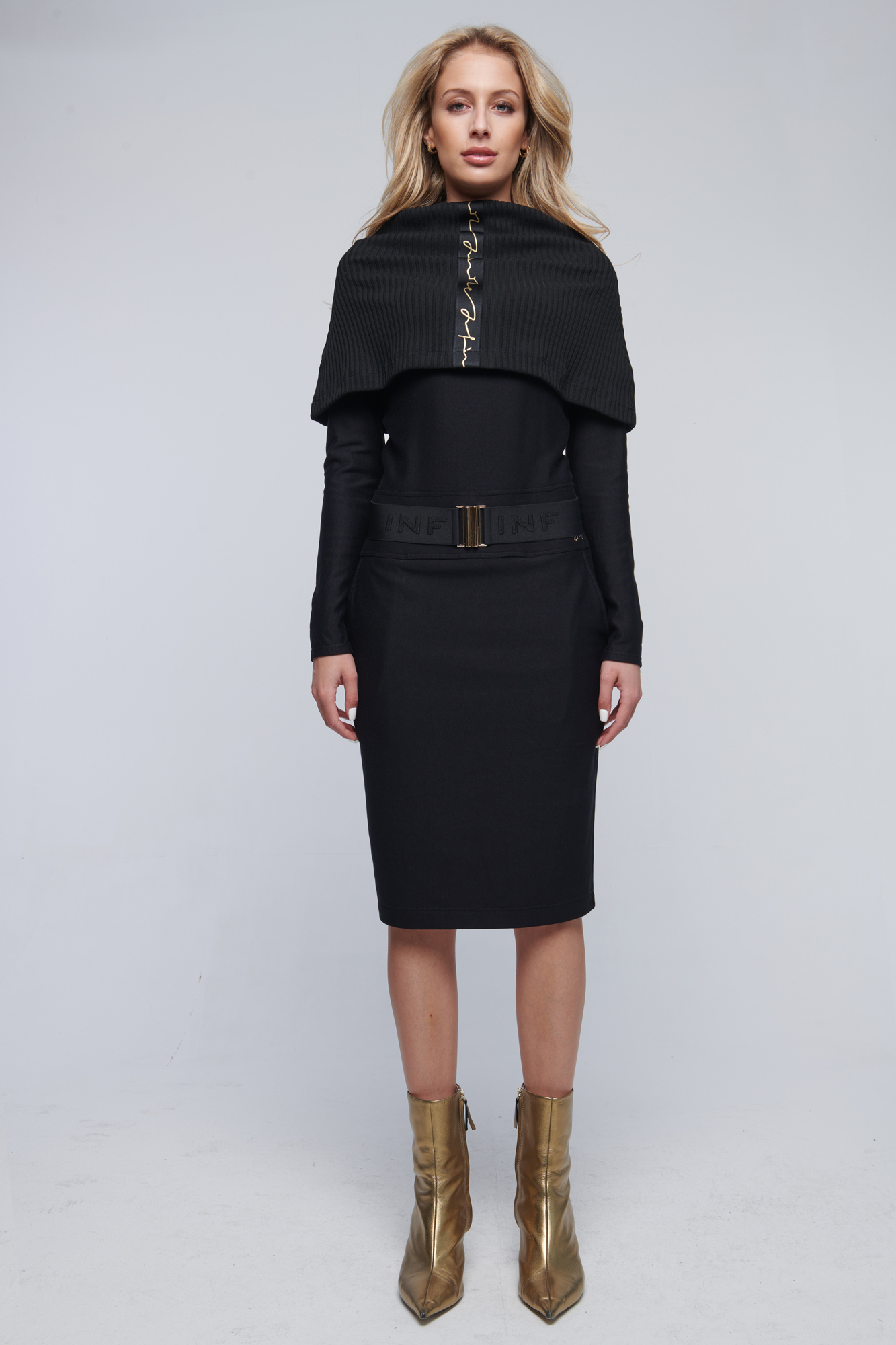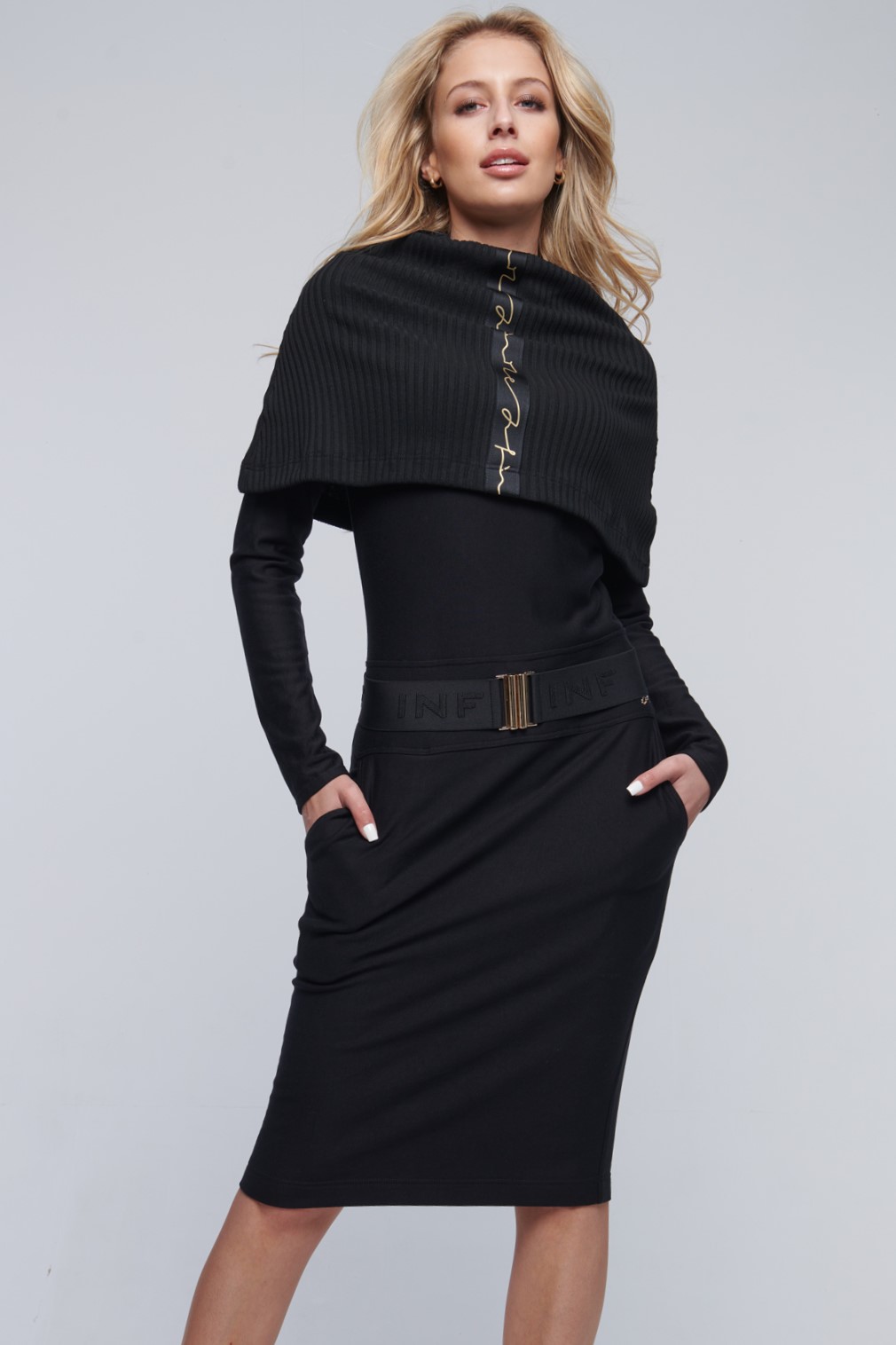 Šaty v kombinaci se žebrový úpletem a stuhou INF.