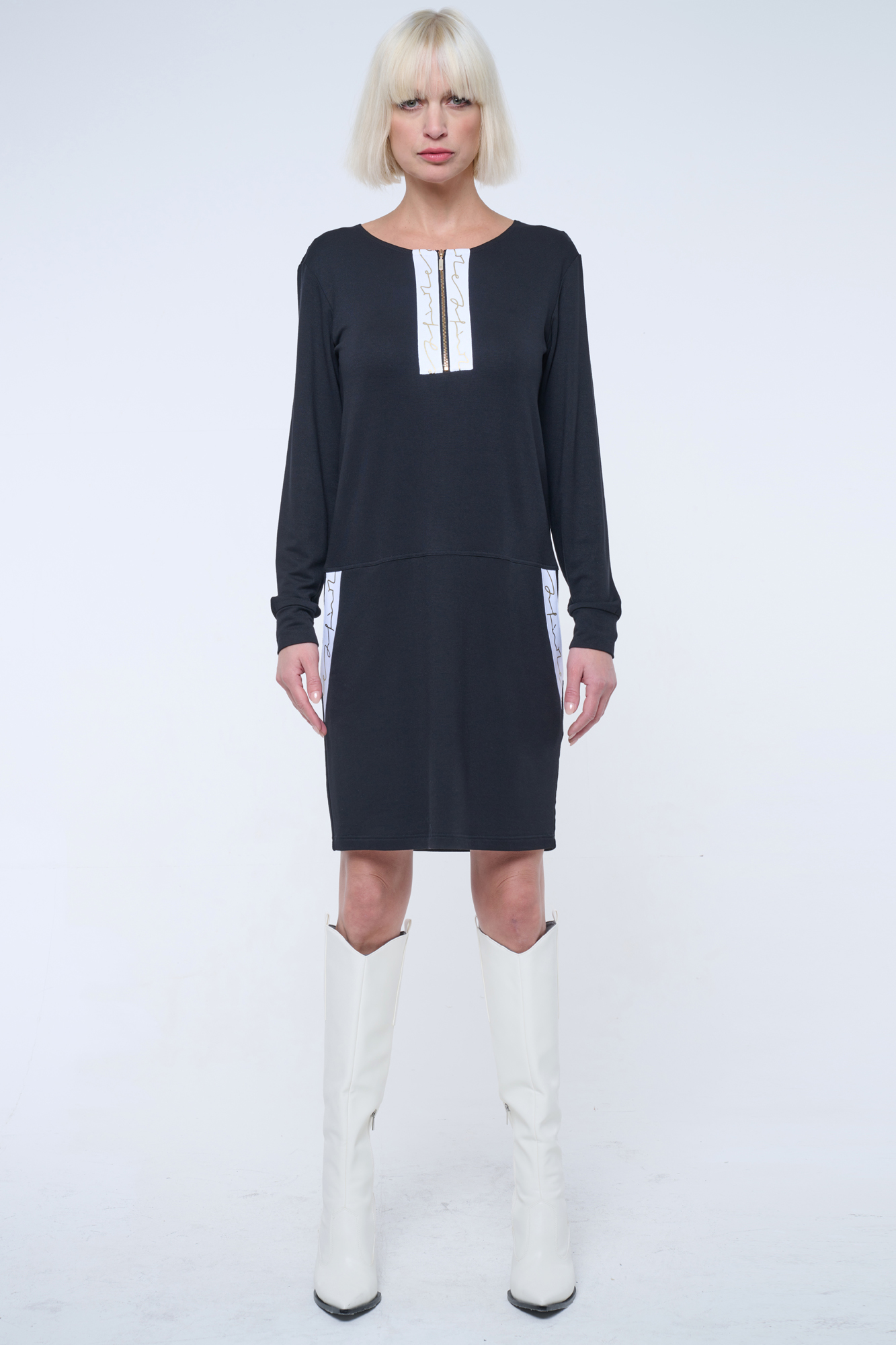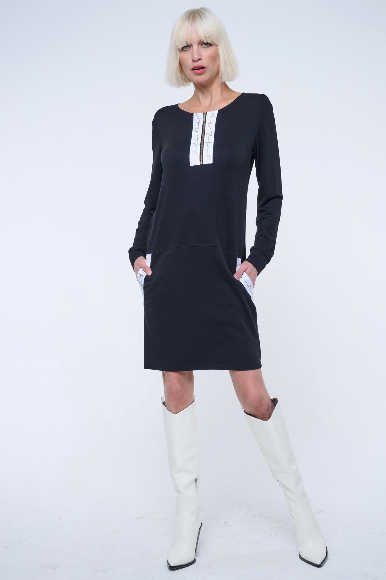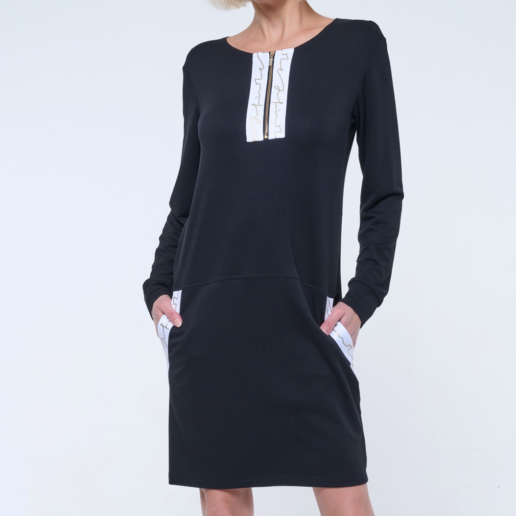 Mikinové šaty s efektním lampasem INF. Zlatý zip.