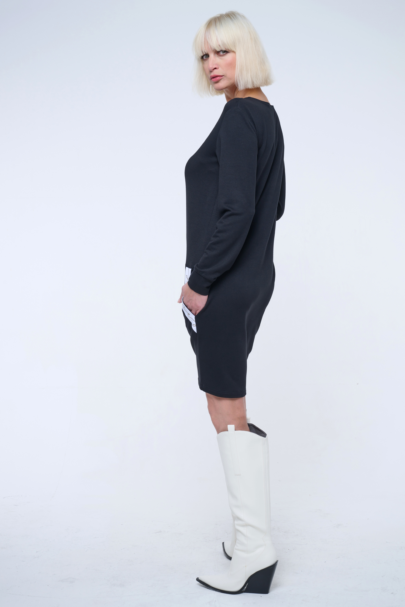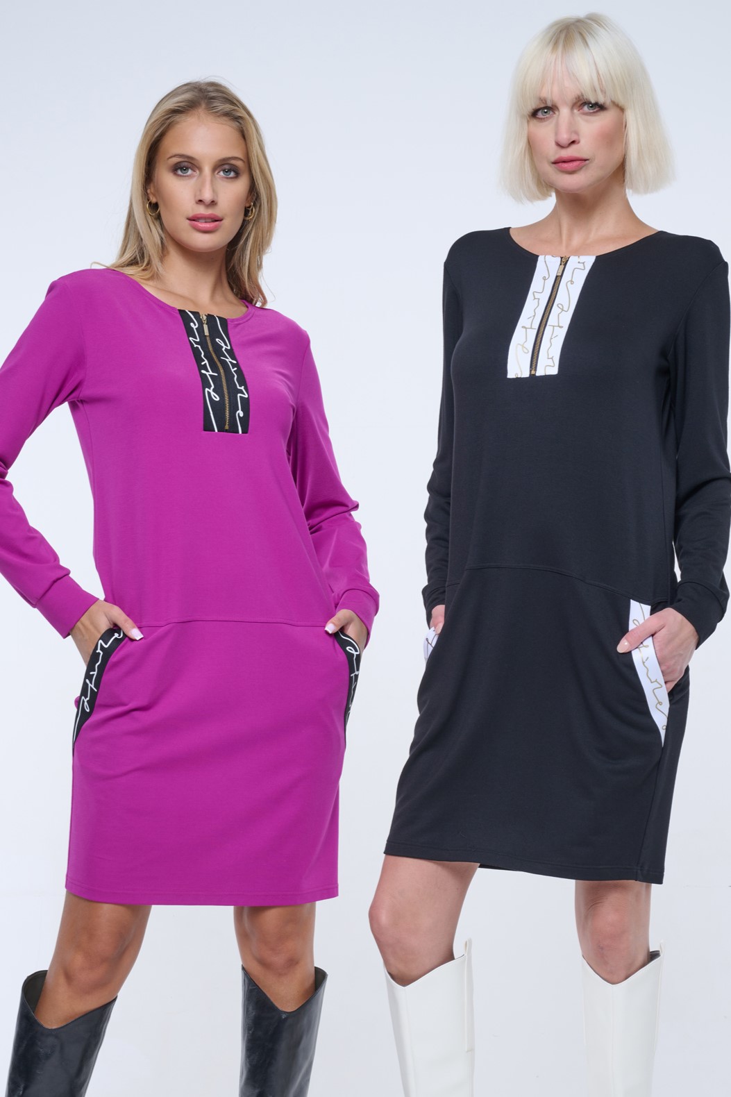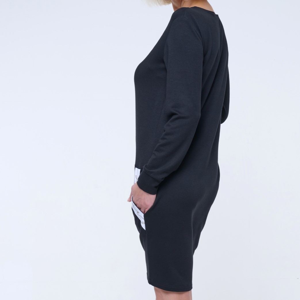 Mikinové šaty s efektním lampasem INF. Zlatý zip.