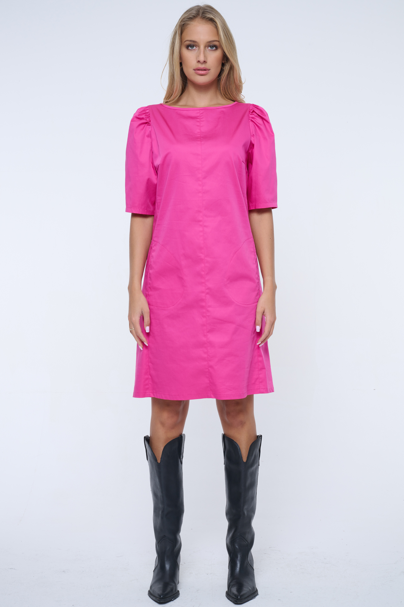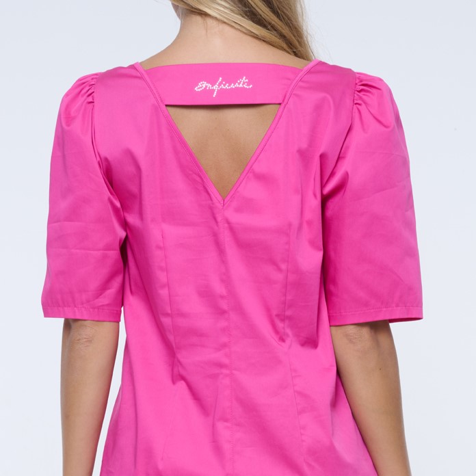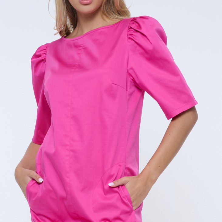 Mírně rozšířené šaty s lehce nabranými rukávy. Krystaly Infinite na zadním díle. Možnost využití i na slavnostnější příležitost.