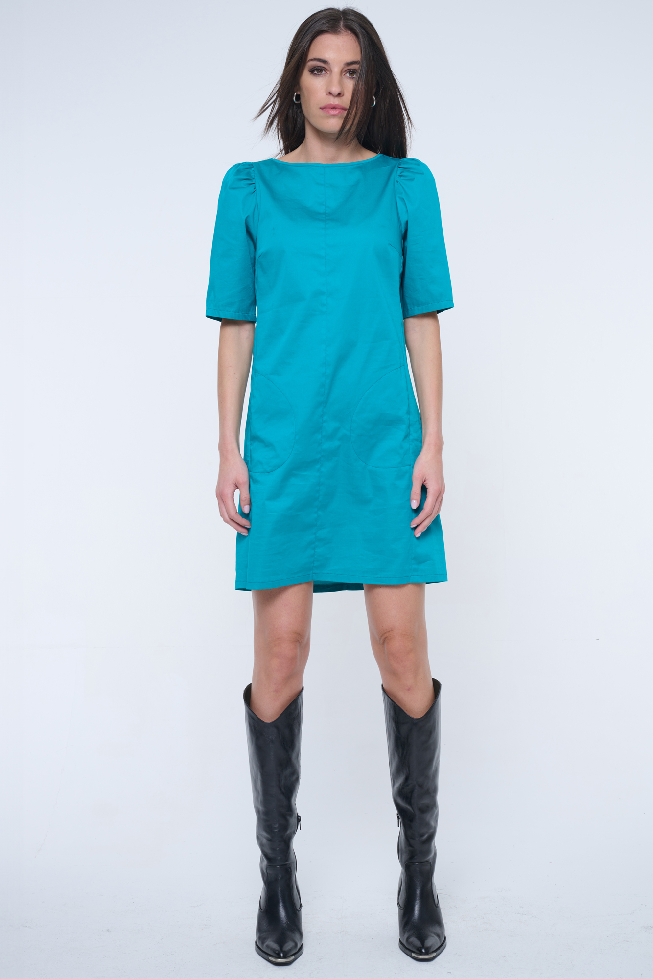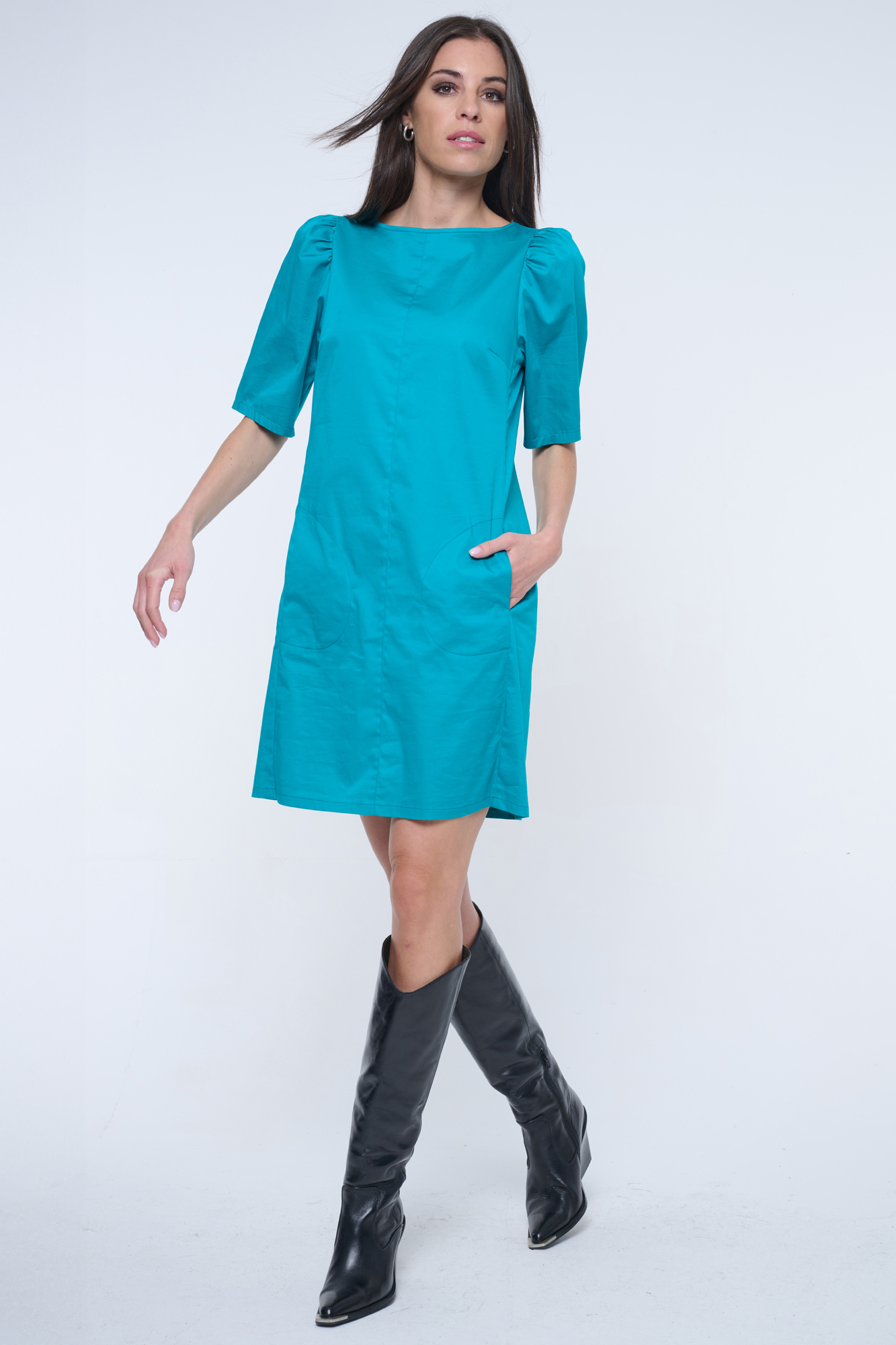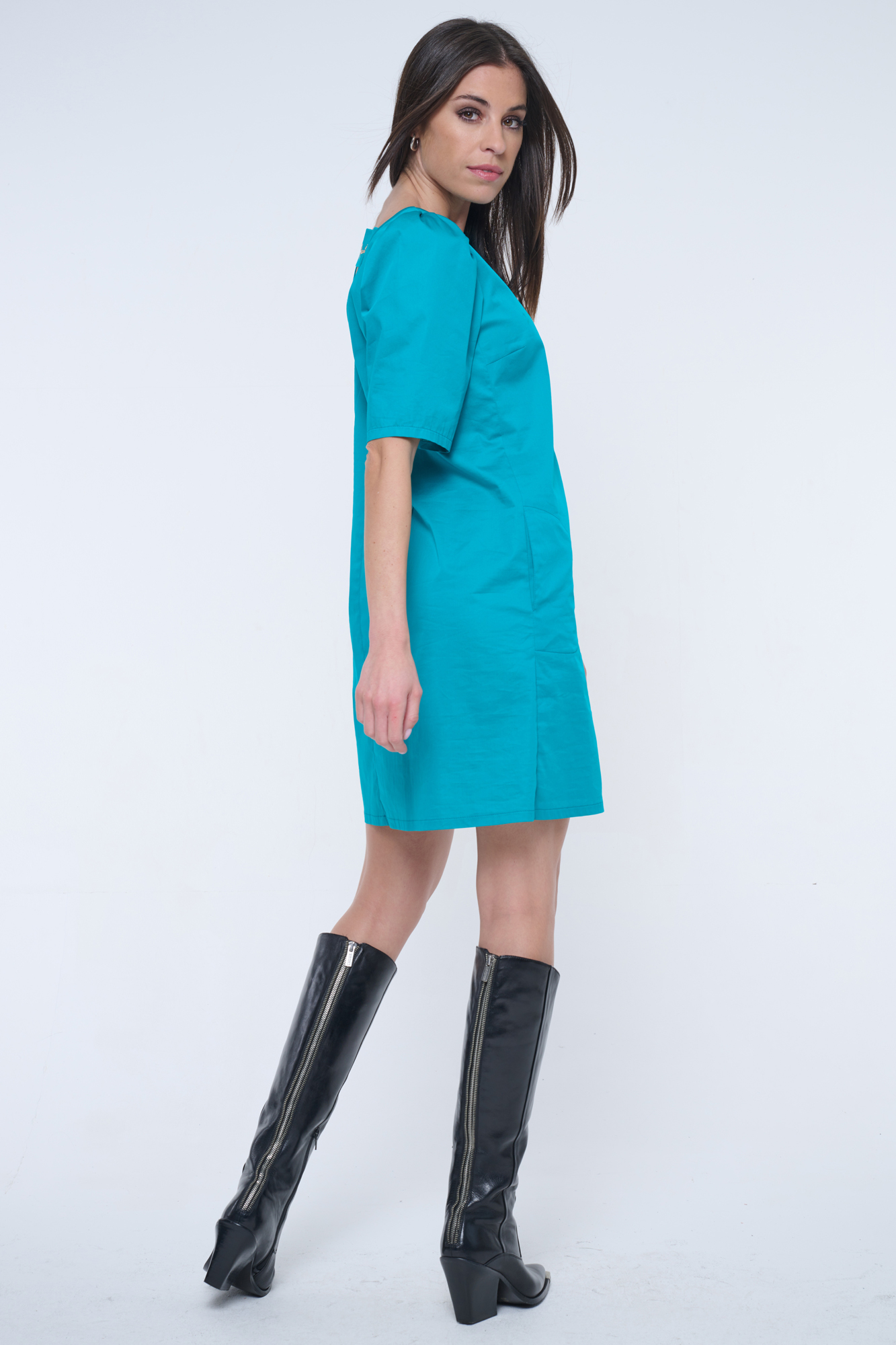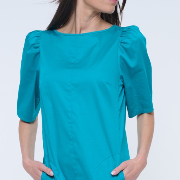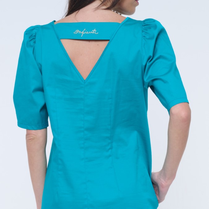 Mírně rozšířené šaty s lehce nabranými rukávy. Krystaly Infinite na zadním díle. Možnost využití i na slavnostnější příležitost.