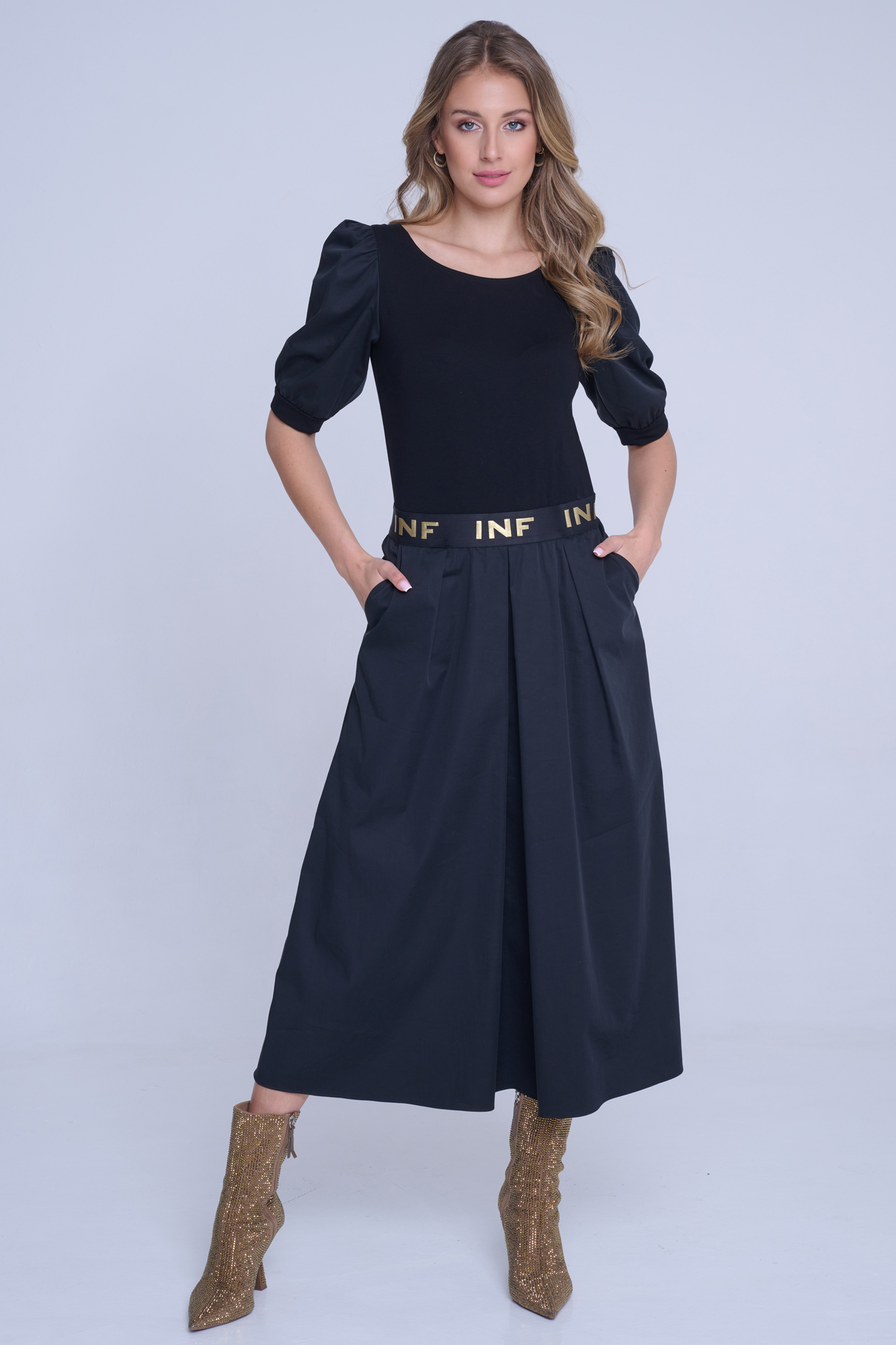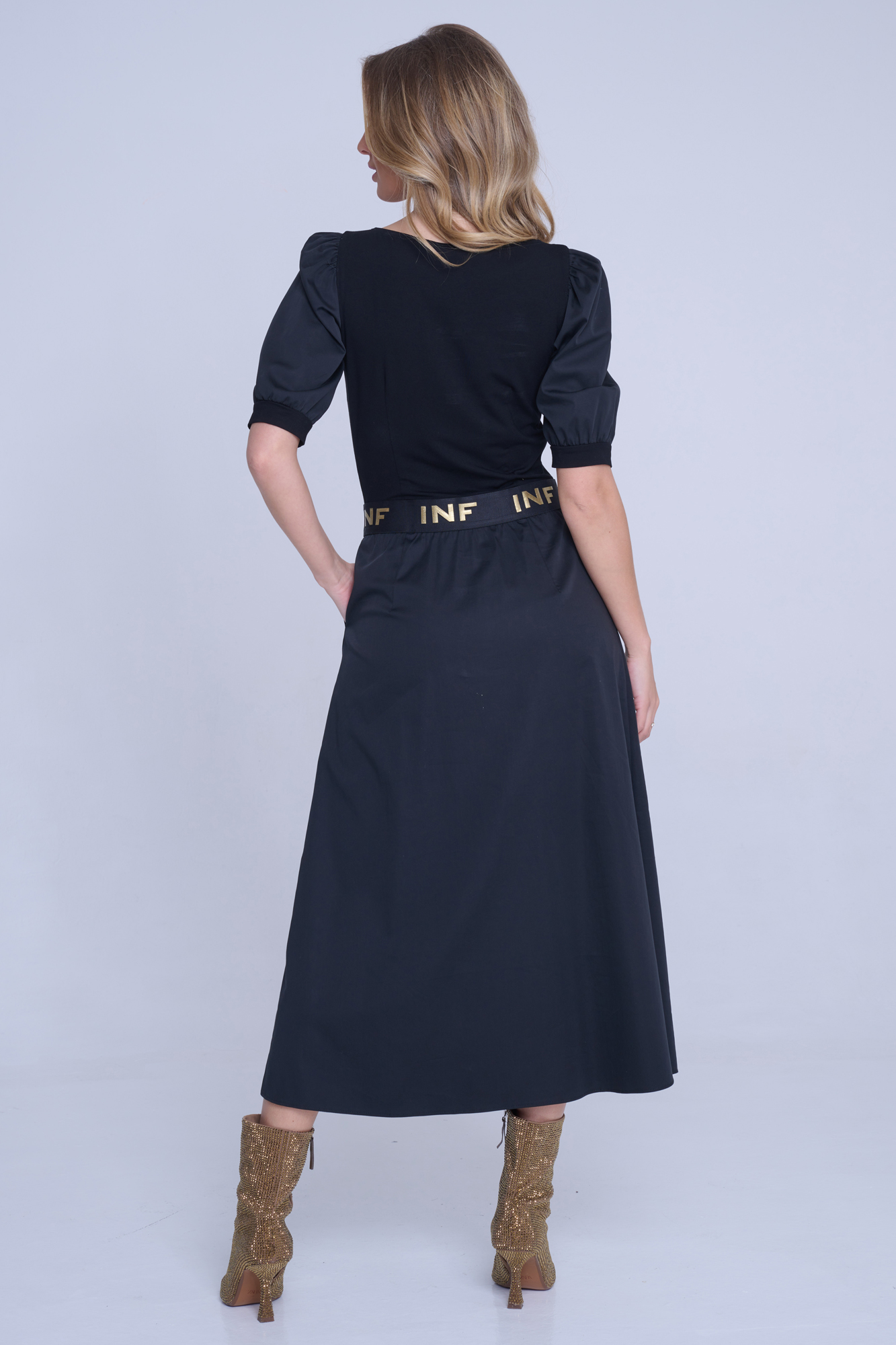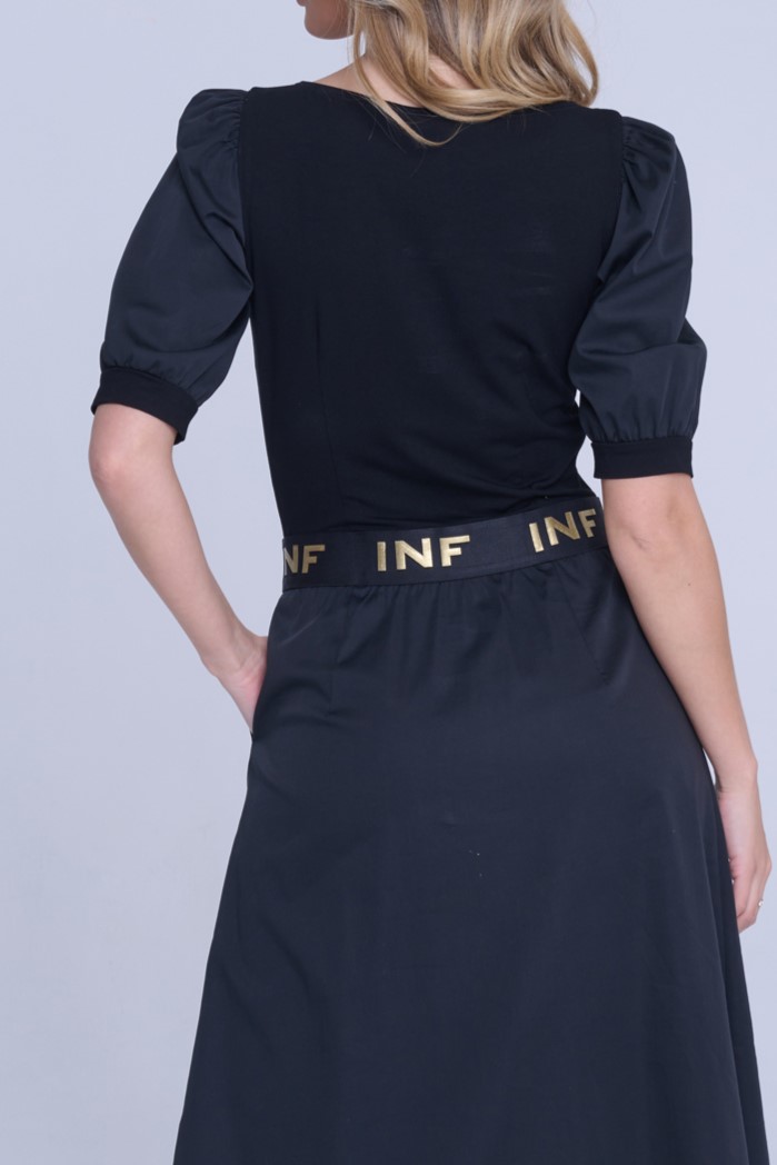 Gumový černozlatý pásek INF v pase.
