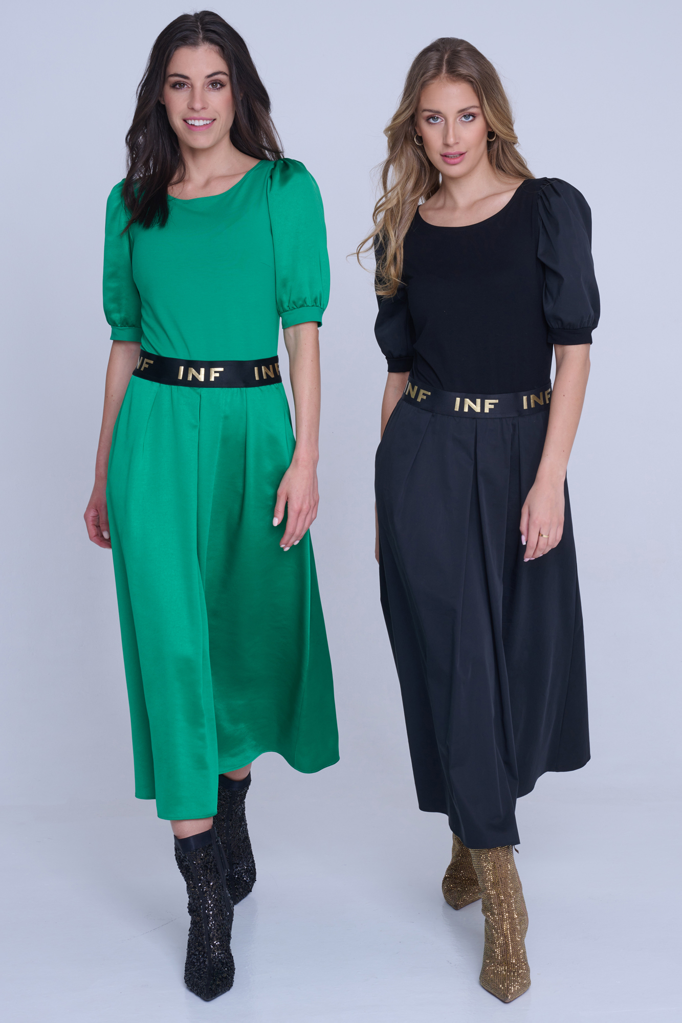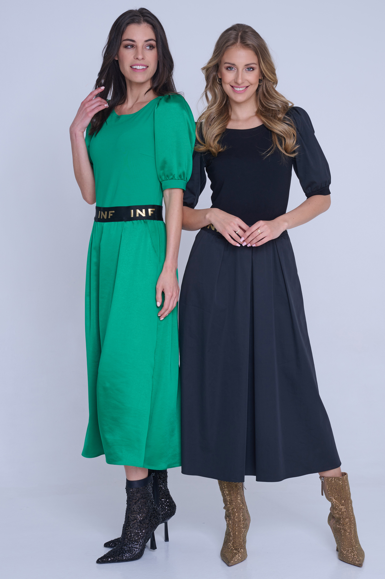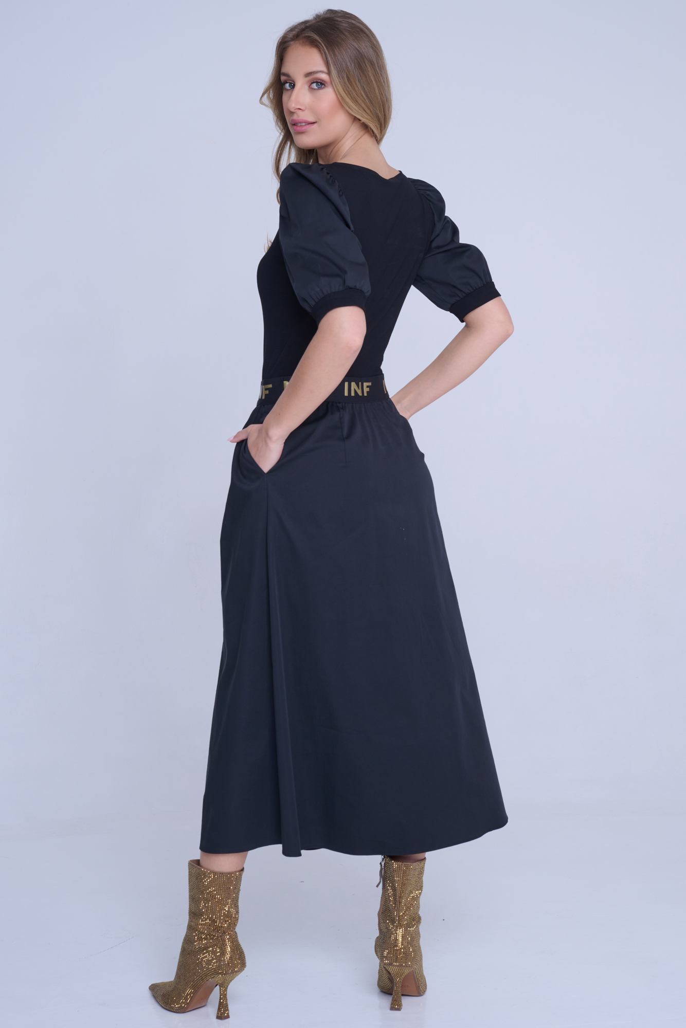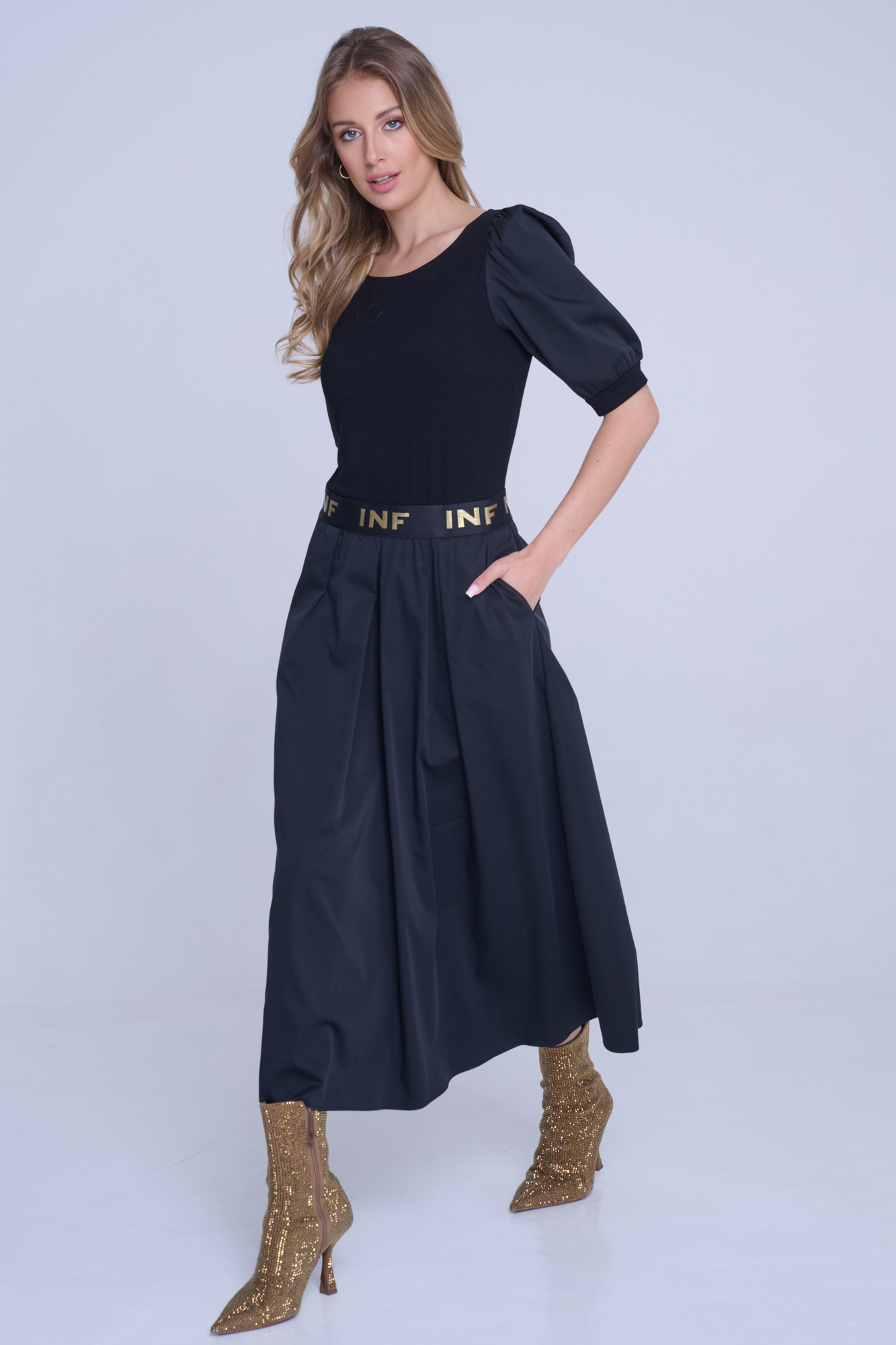 Dlouhé šaty Infinite s nabíranými rukávy.