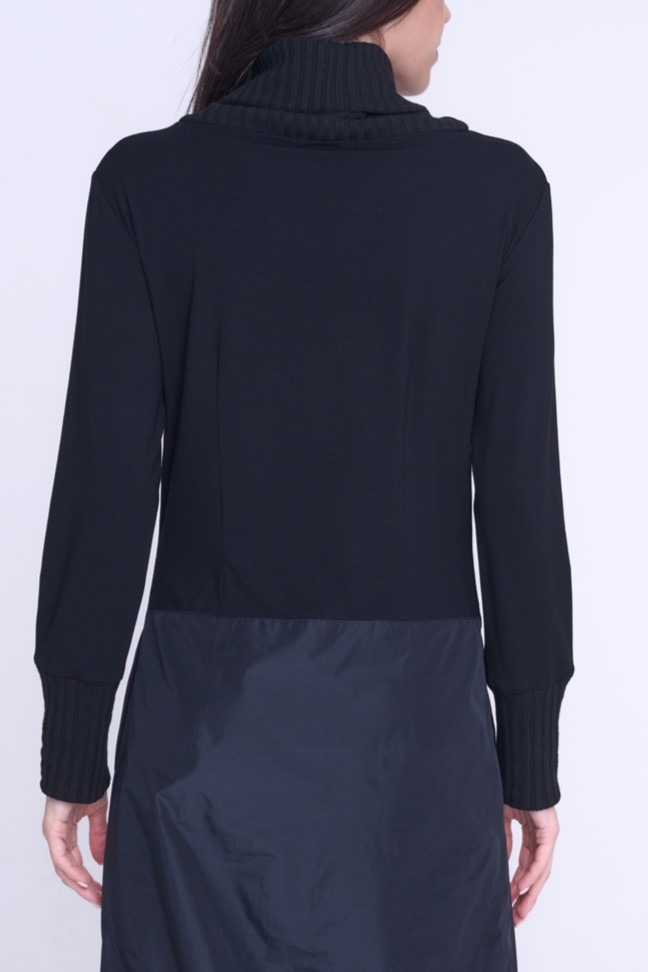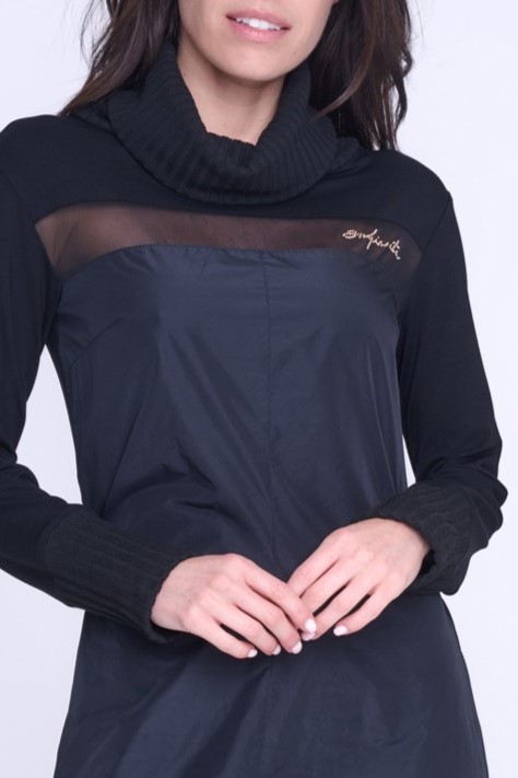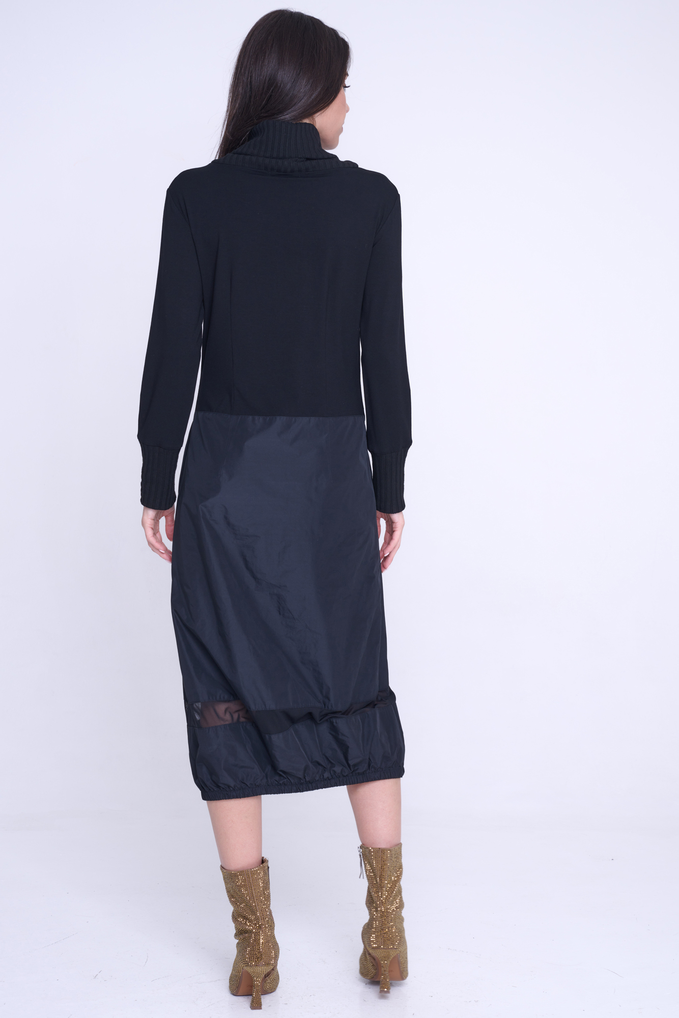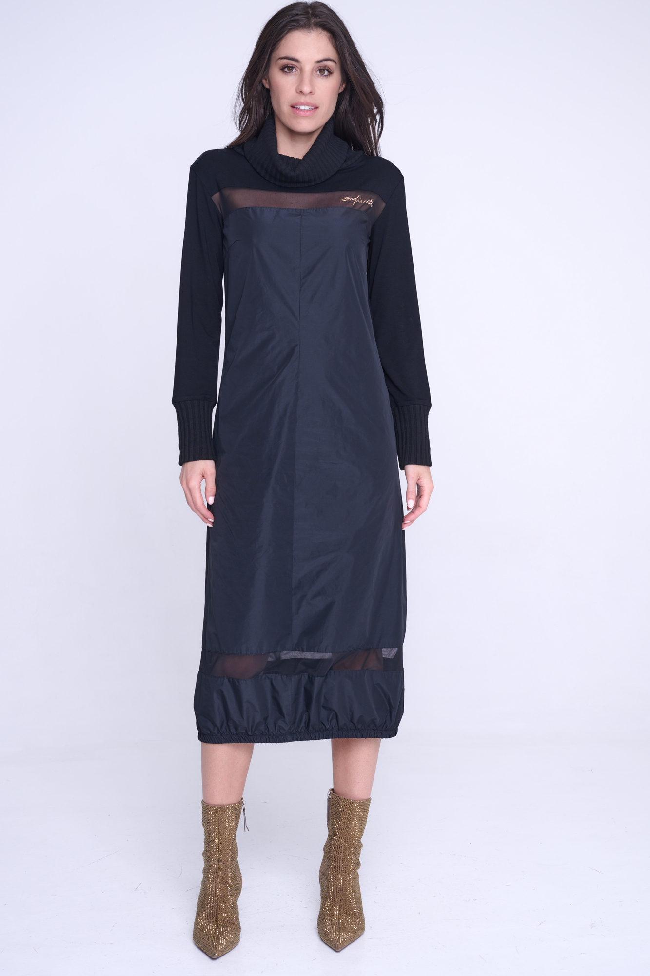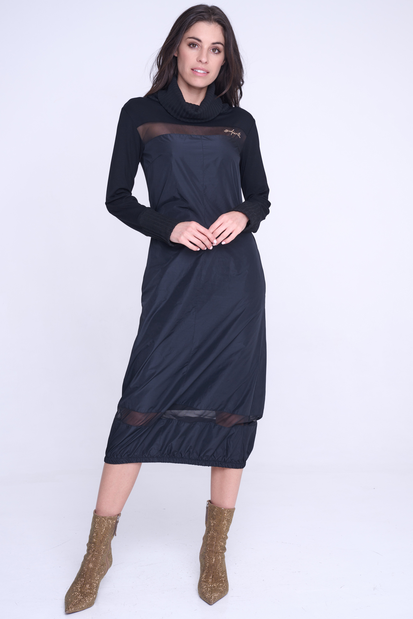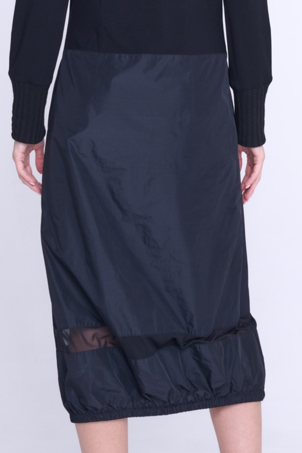 Atraktivní šaty Infinite. Kombinace žebrového úpletu, šusťáku a tylu.
