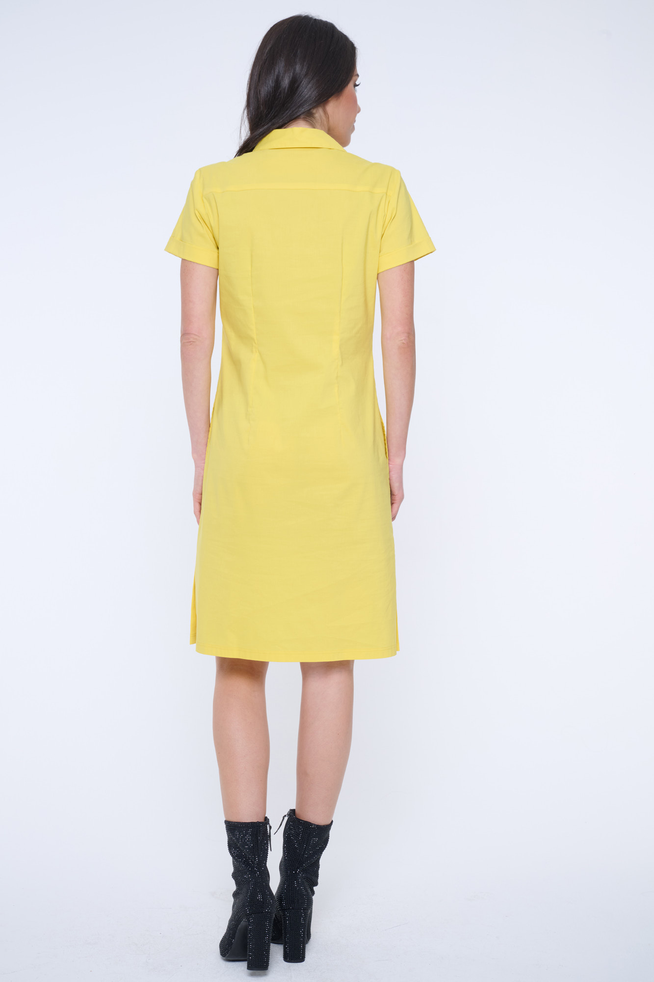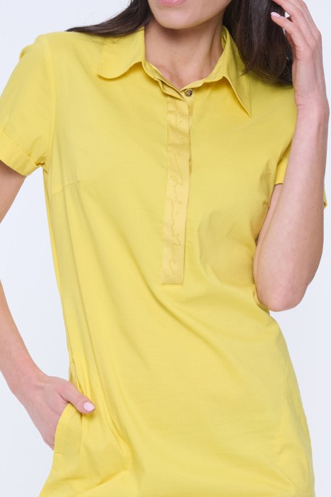 Košilové šaty z příjemného strečového bavlněného materiálu s příměsí polyamidu. Na bocích kapsy. Ve výstřihu je nápis Infinite z transparentních krystalů Preciosa.