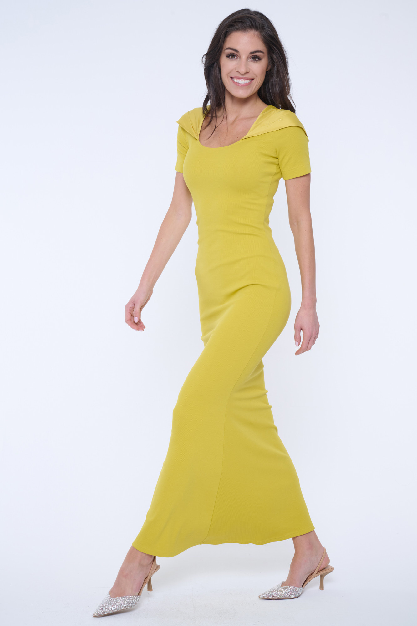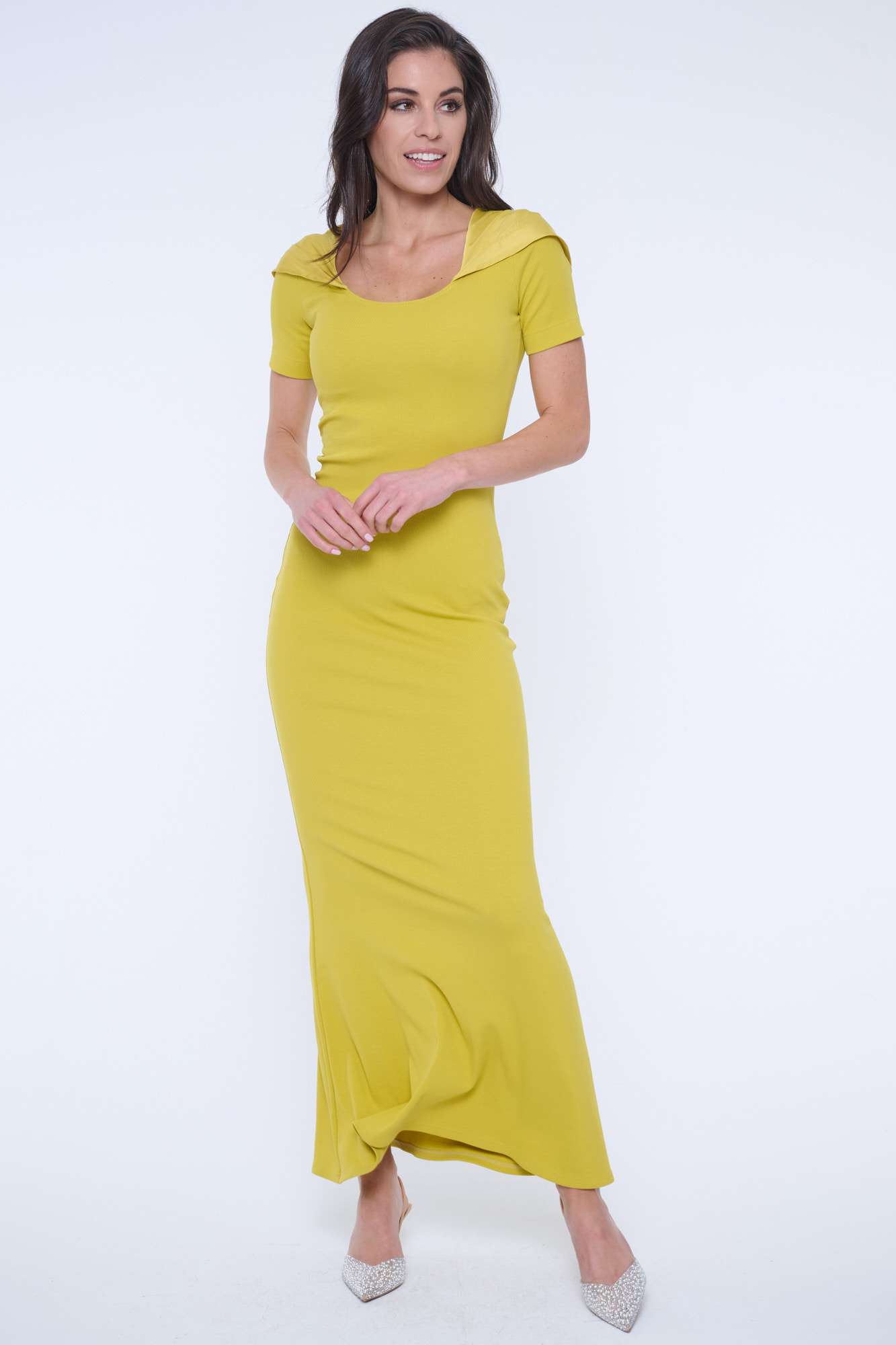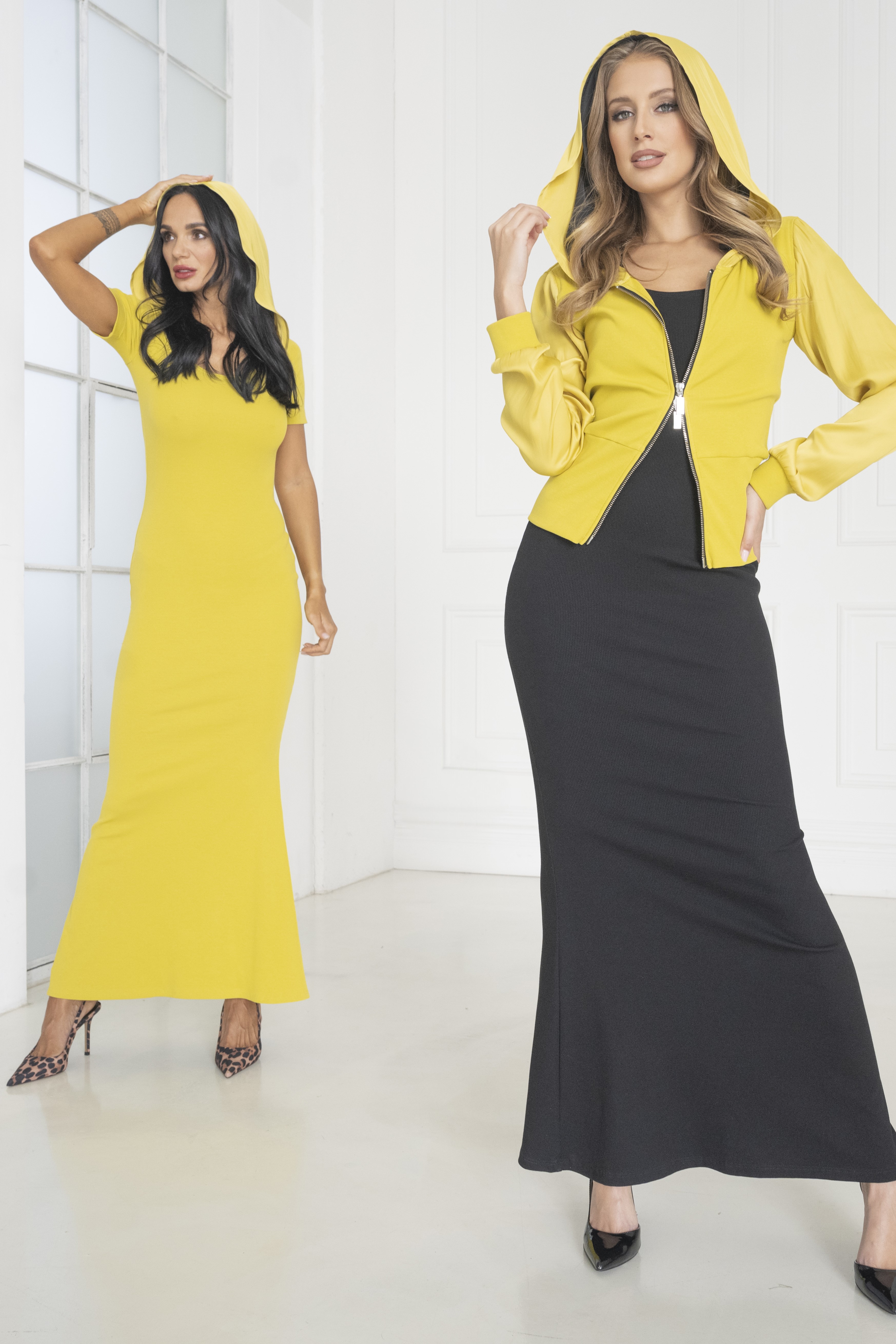 • detail 352-542 šaty dlouhé žebro s kapucí