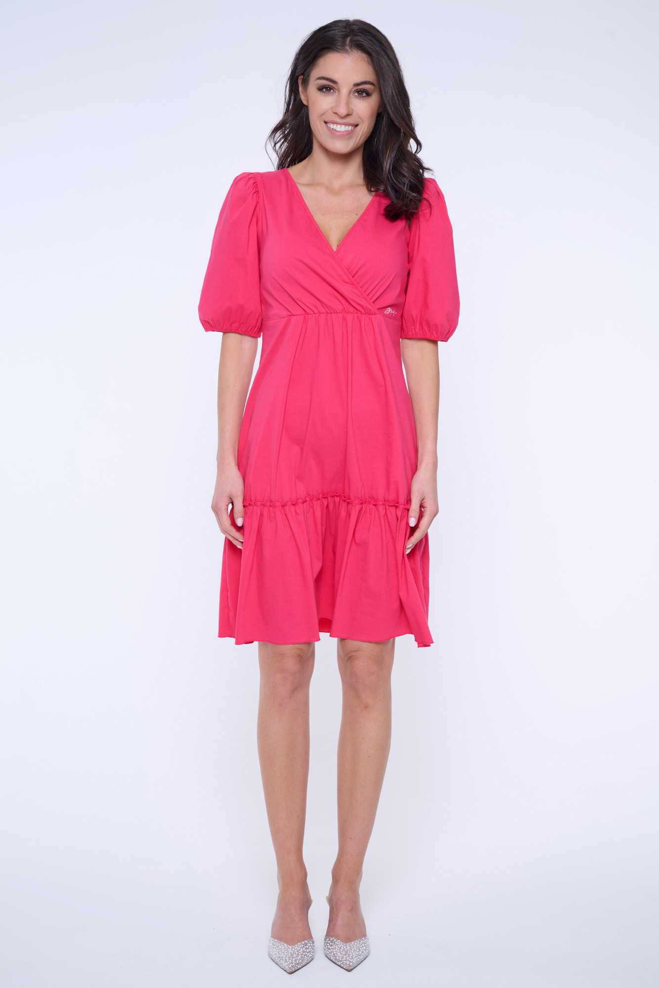 Šaty Infinite s výstřihem v délce nad kolena. Nabírané rukávy a kanýr v délce. Na boku minimalistické krystalové logo INF od Swarovski.
