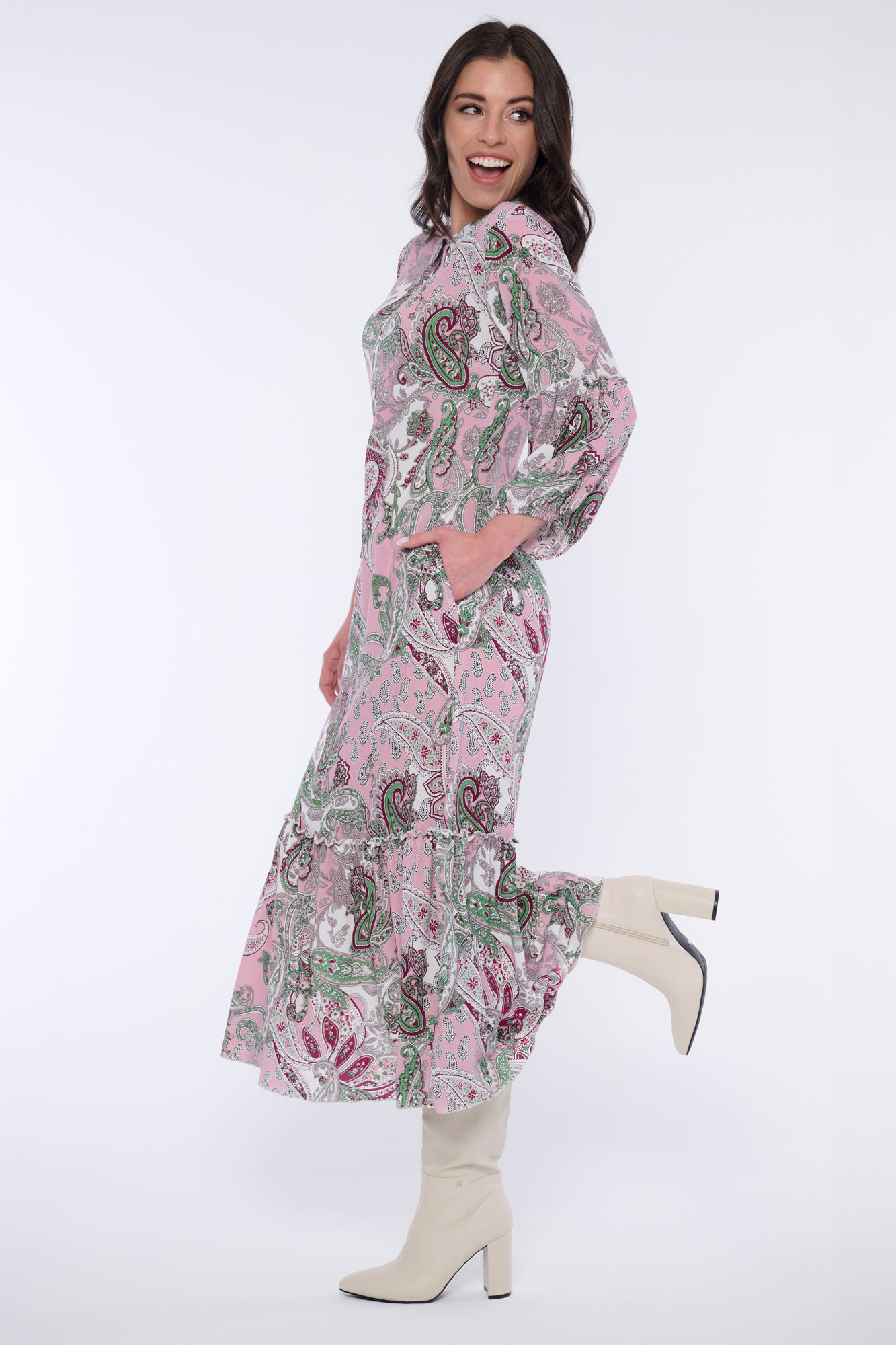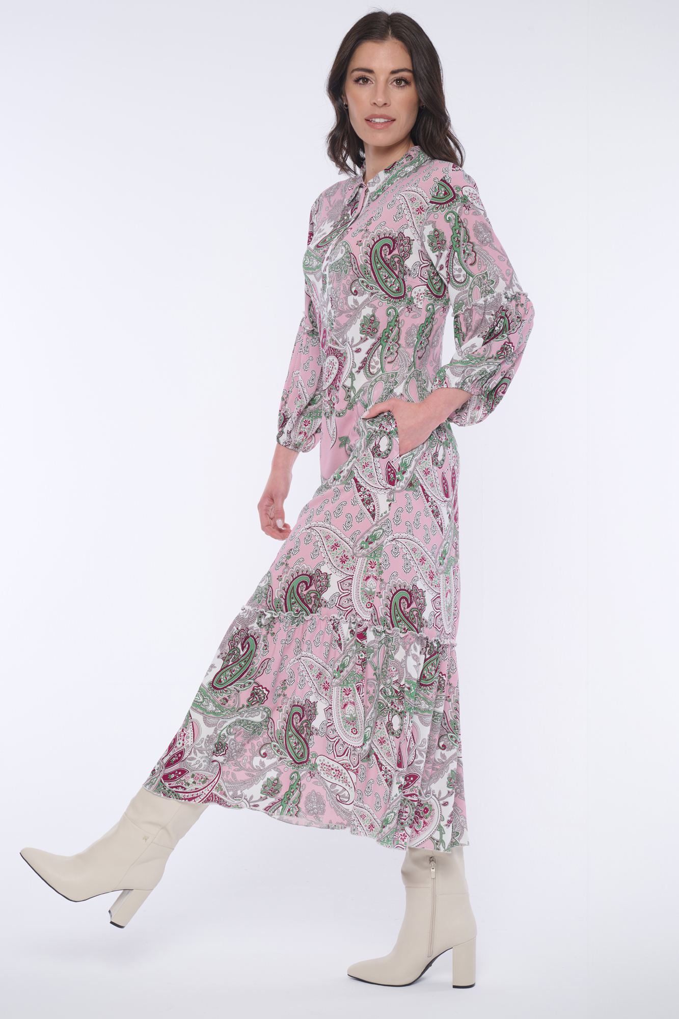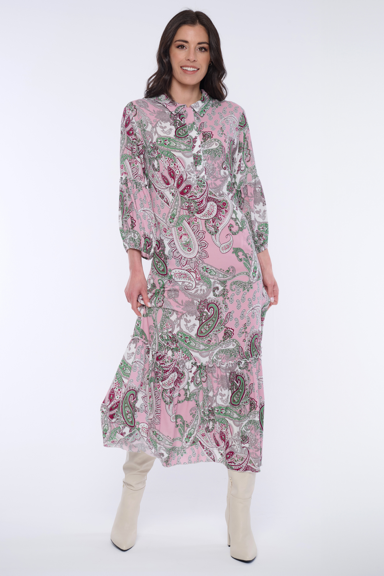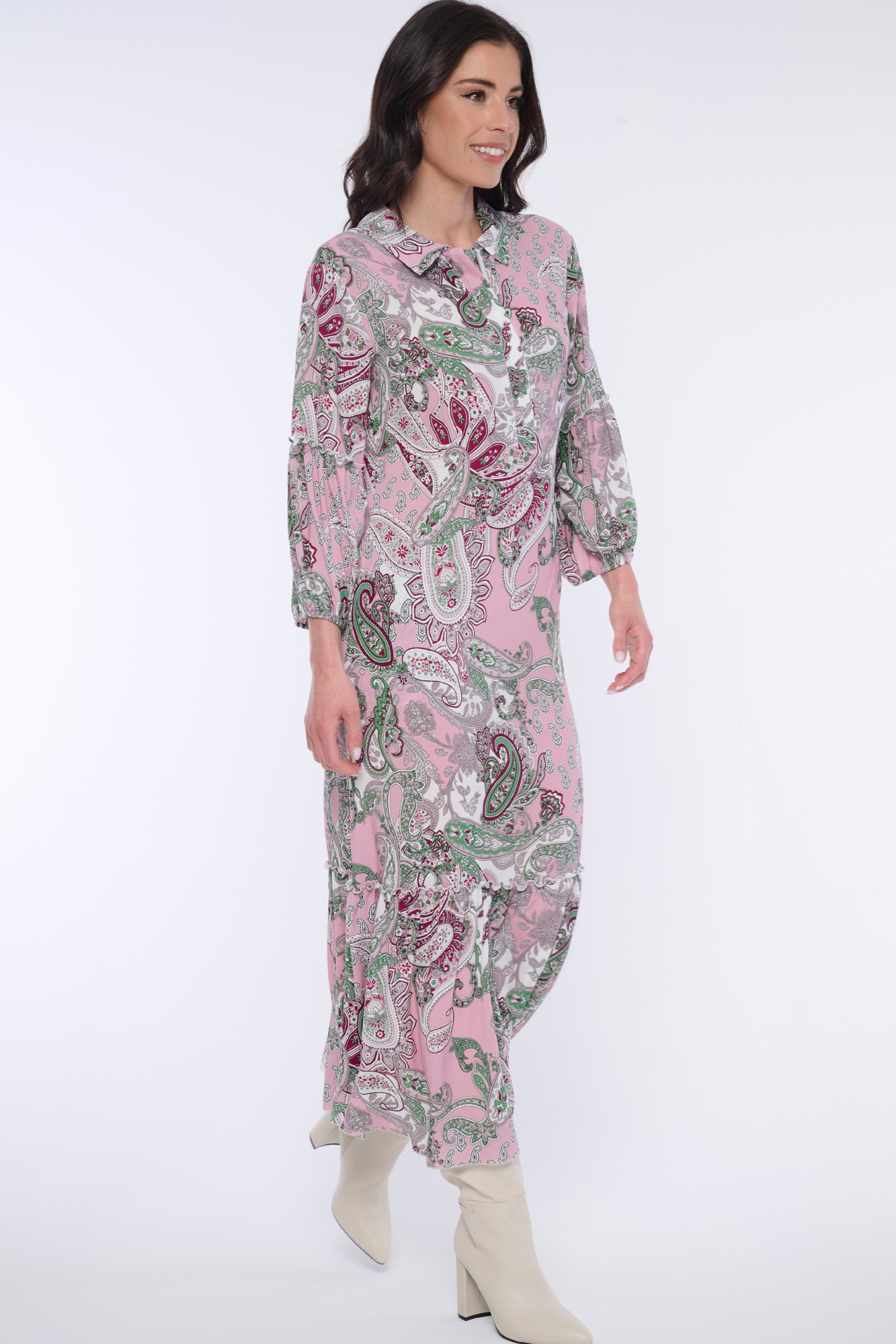 Luxusní šaty košilového střihu z lehkého materiálu s módním vzorem kašmír.