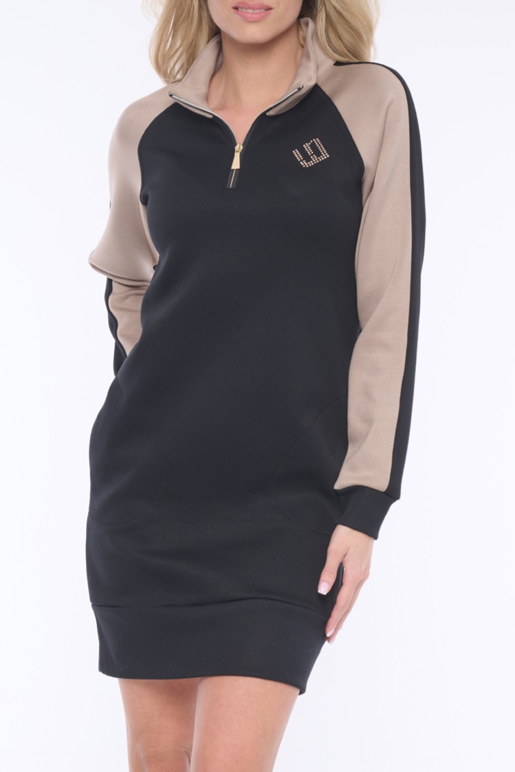 Sportovně elegantní střih šatů s kapsami, se stojáčkem, doplněné výrazným zipem a krystalovým logem od luxusní značky Preciosa. Dostupné ve dvou barevných variantách.