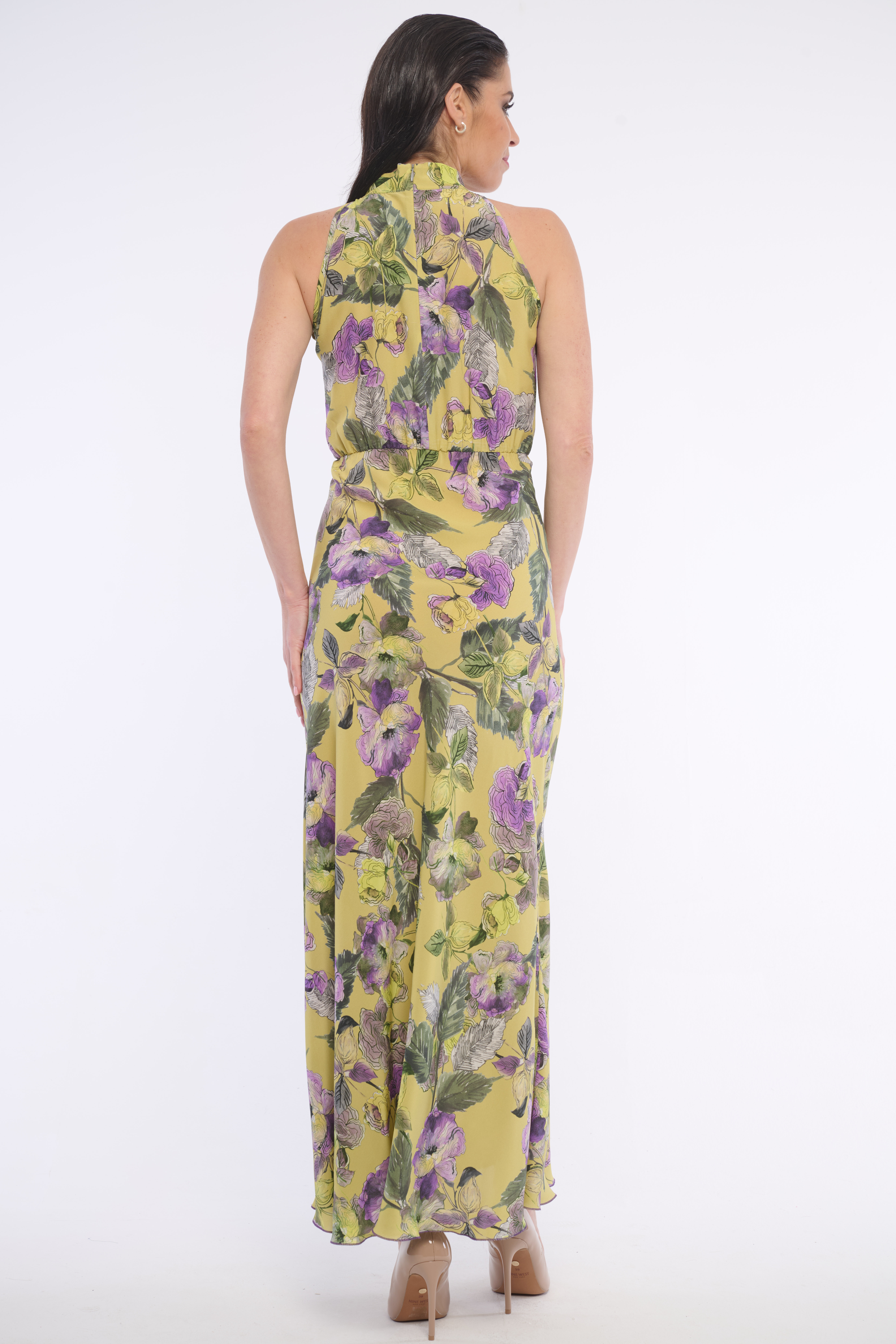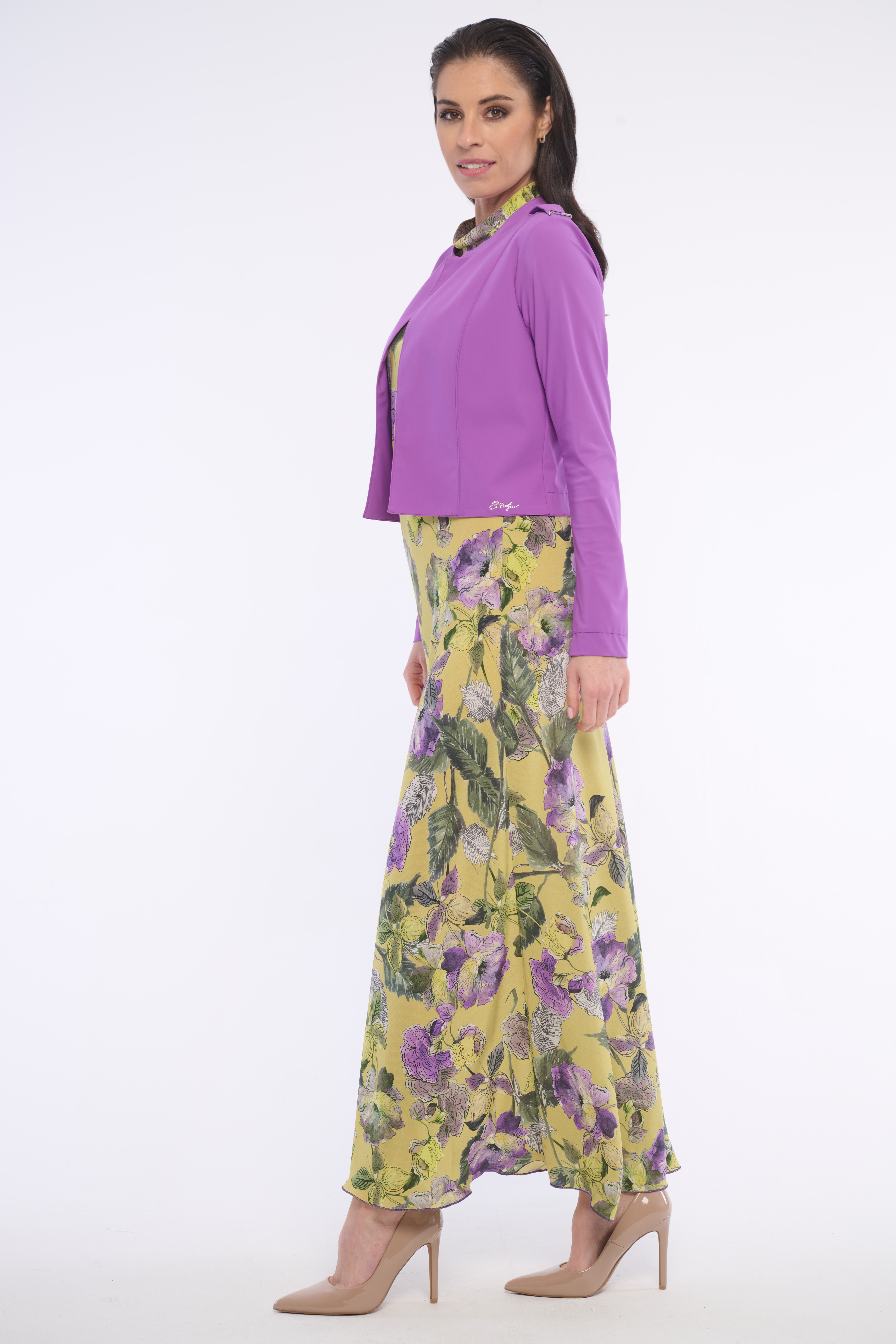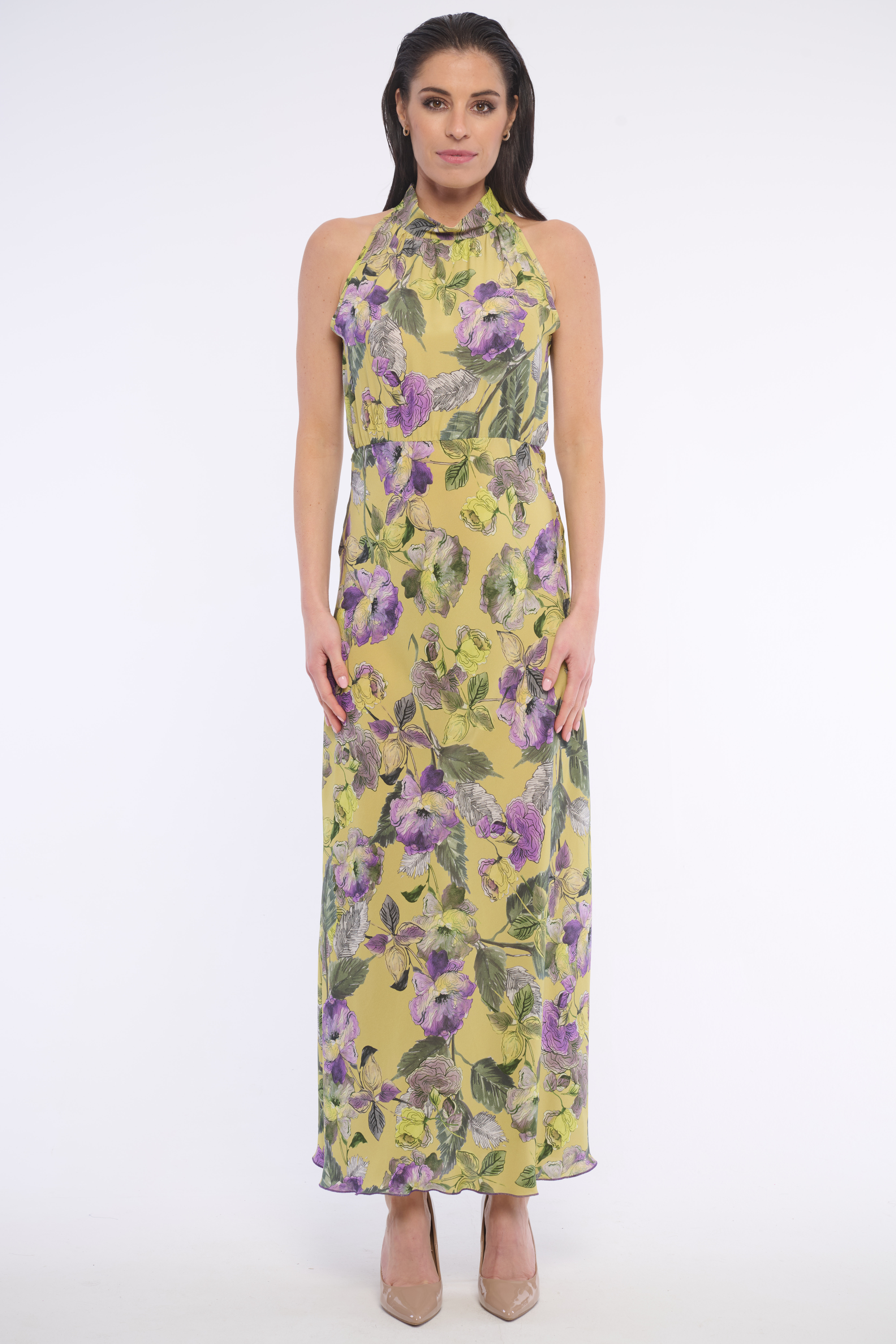 Dlouhé volné šaty se stojákem se zajímavým vzorem. Detailem na krku je logo z luxusních krystalů Swarowski. Dostupné ve dvou barevných variantách.