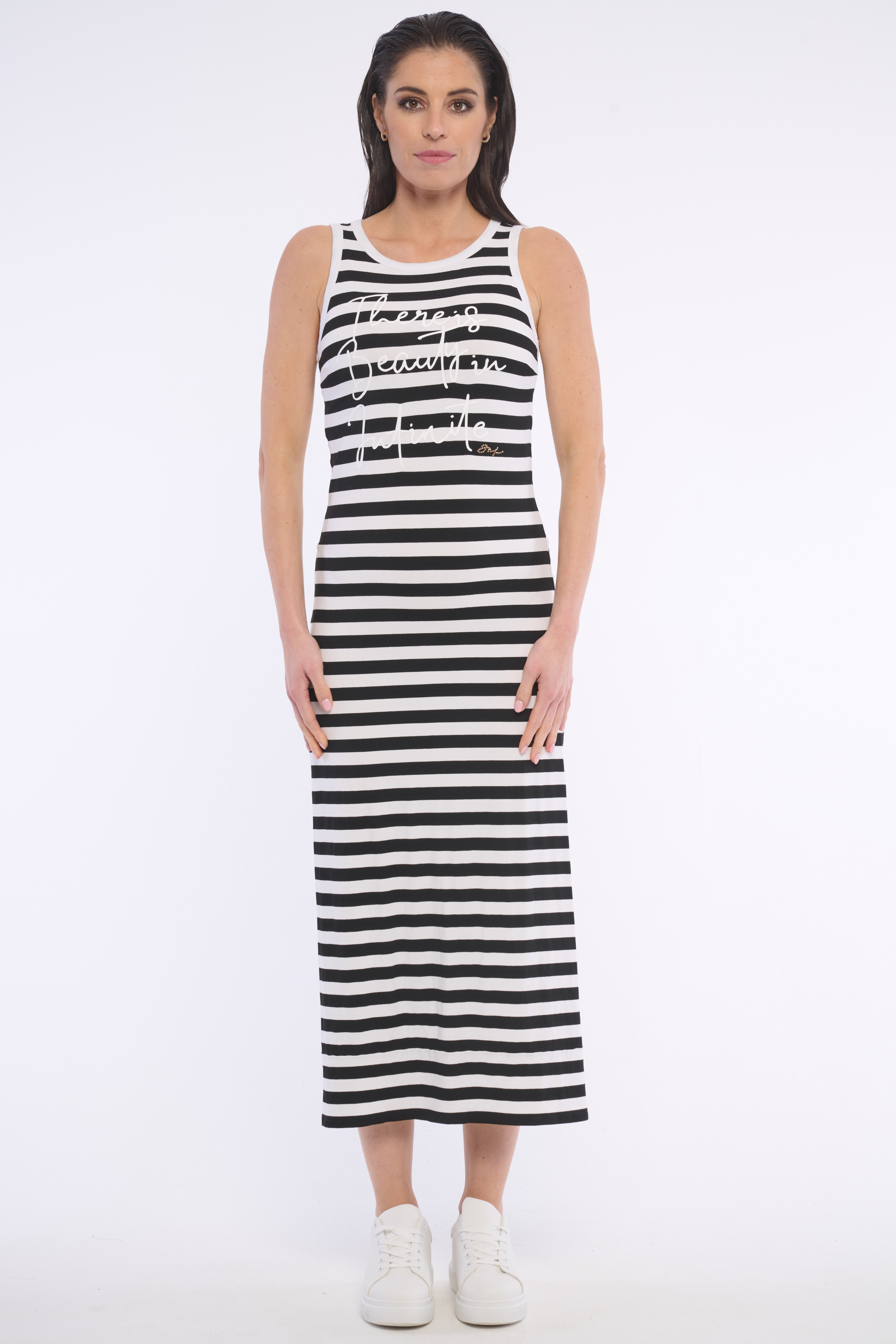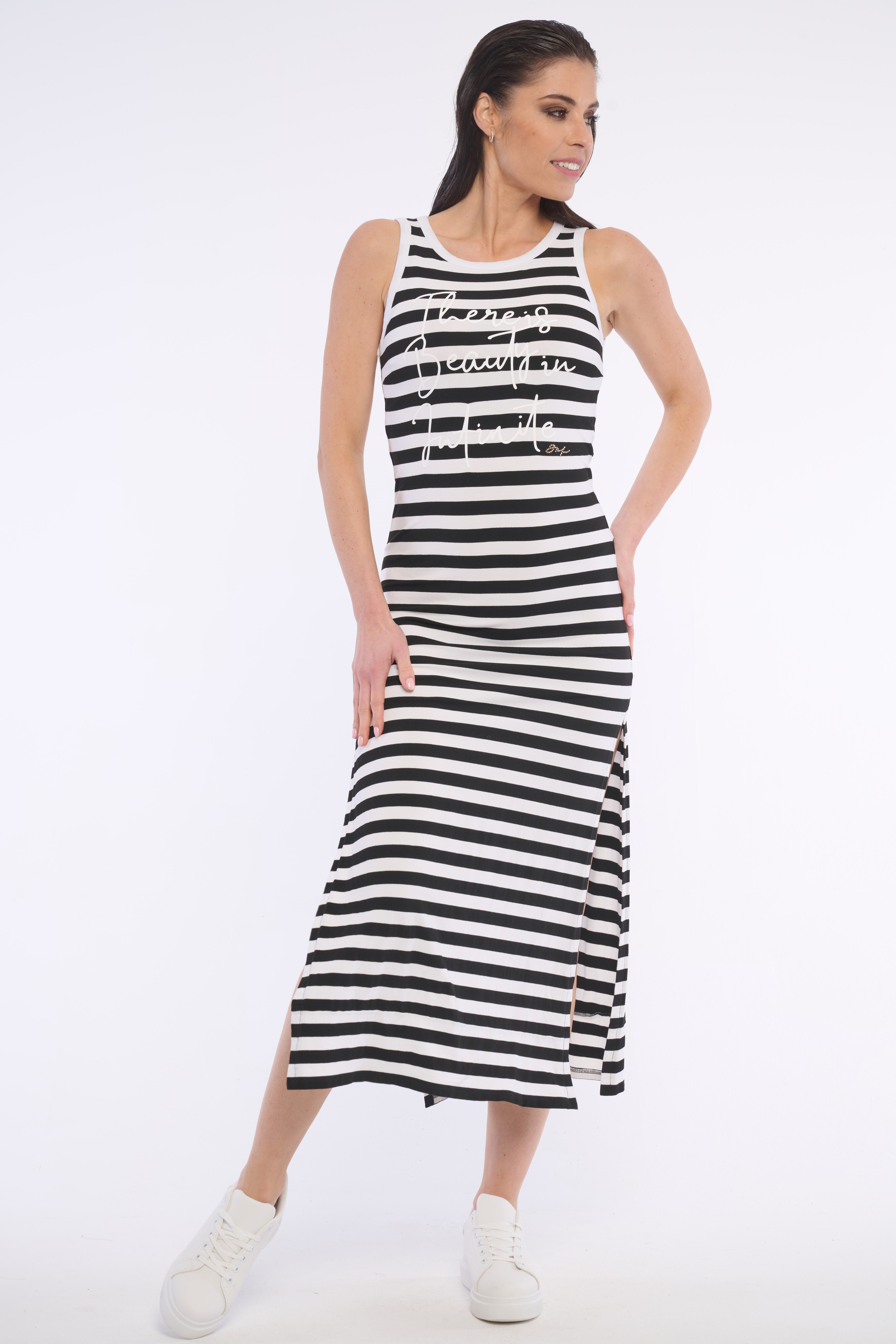 Dlouhé tubové šaty z velmi příjemného materiálu a s potiskem. Šaty krásně tvarují postavu a jsou vhodné na každou příležitost. Dostupné ve dvou barevných variantách.