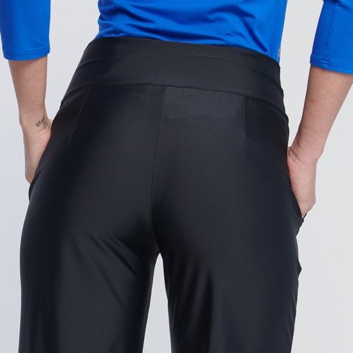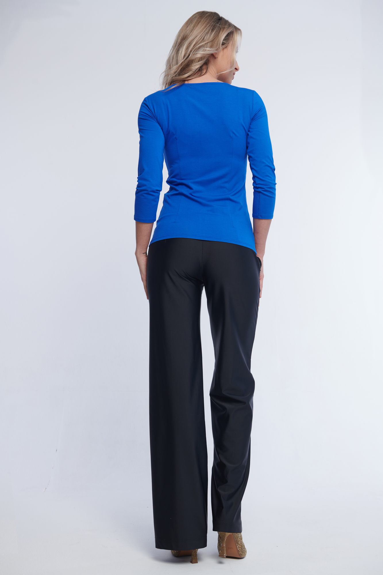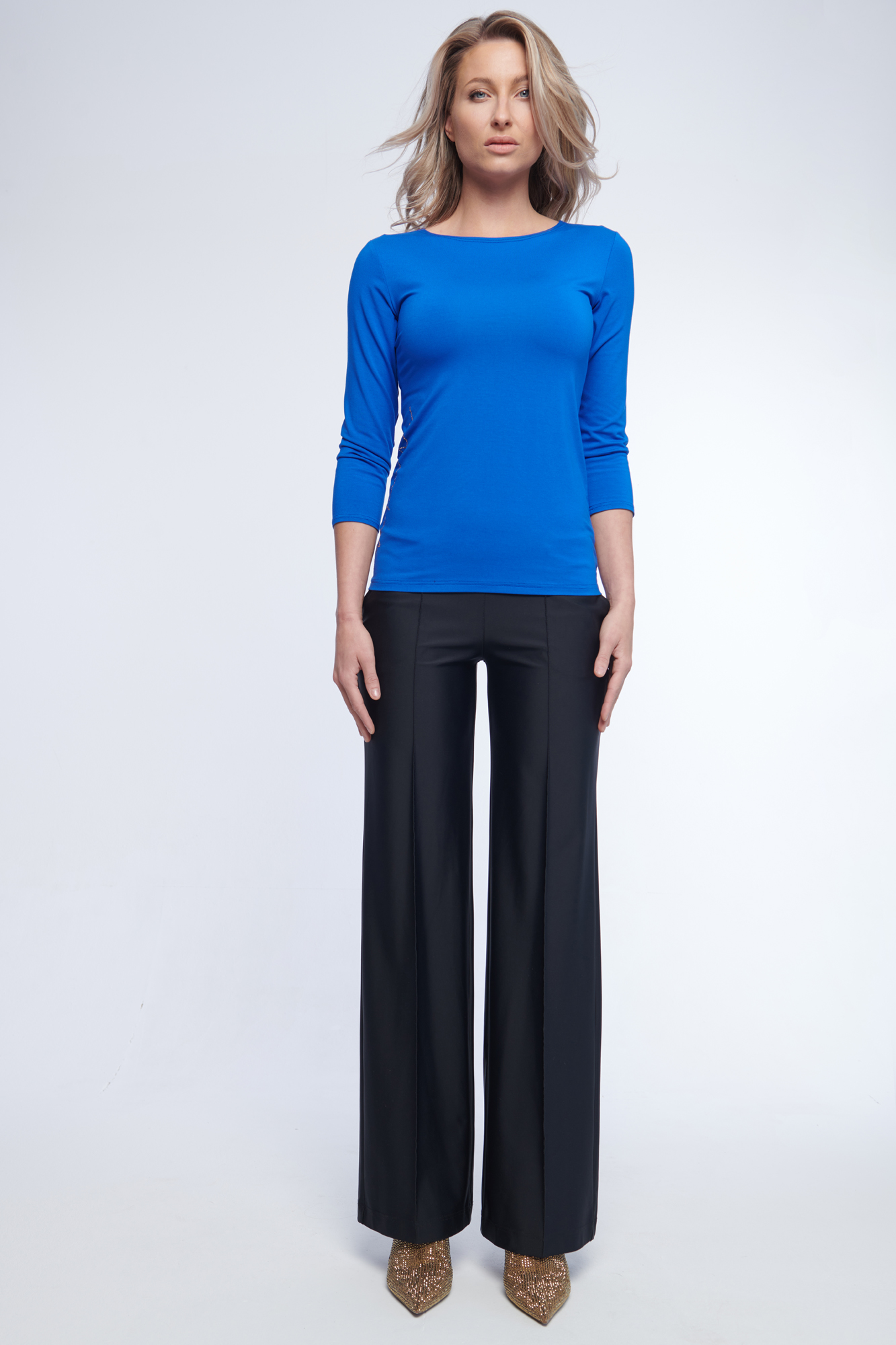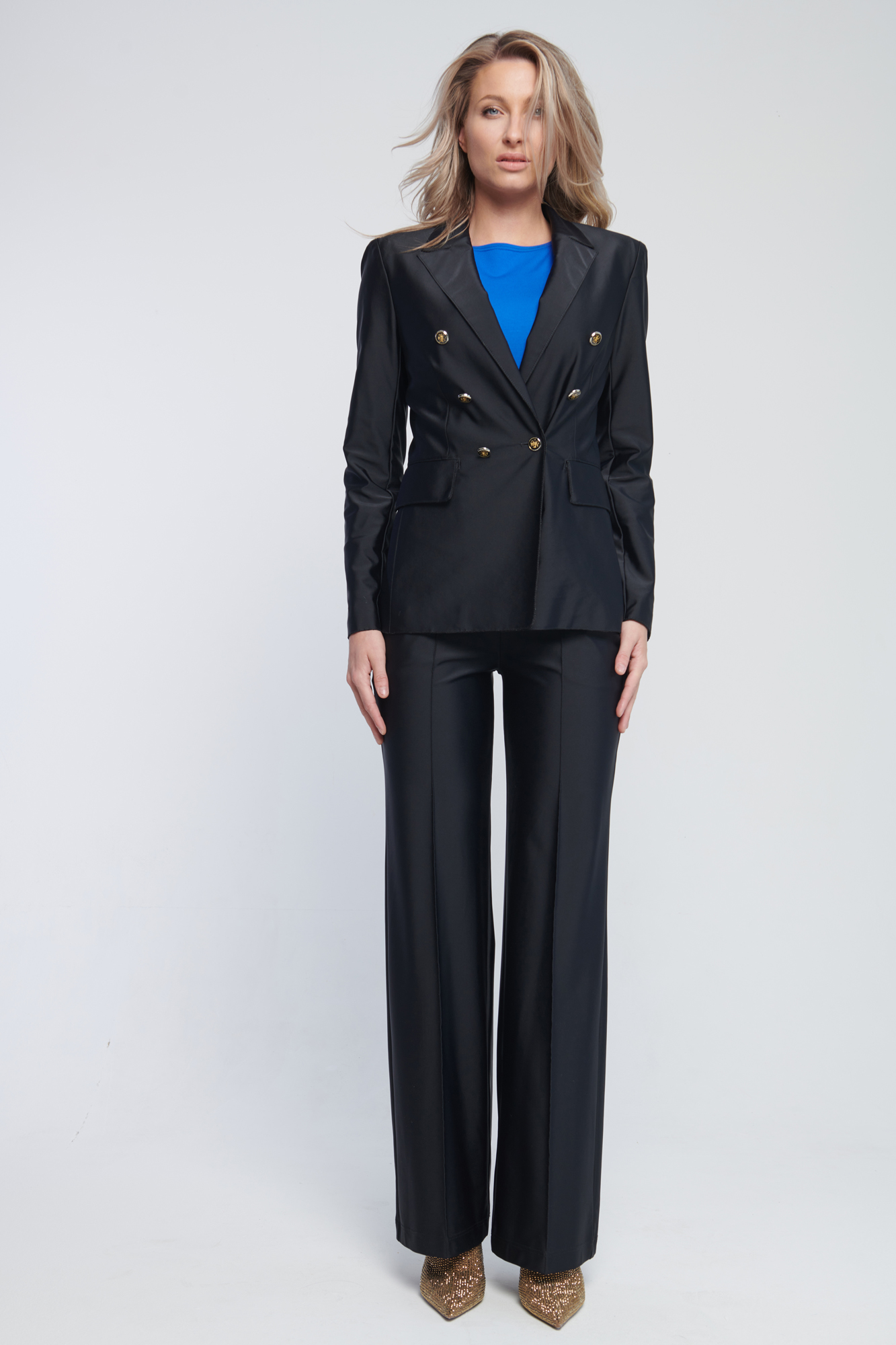 Široké kalhoty s elastickým pasem a puky. V pase malé okrasné zlaté crystalové logo INF.