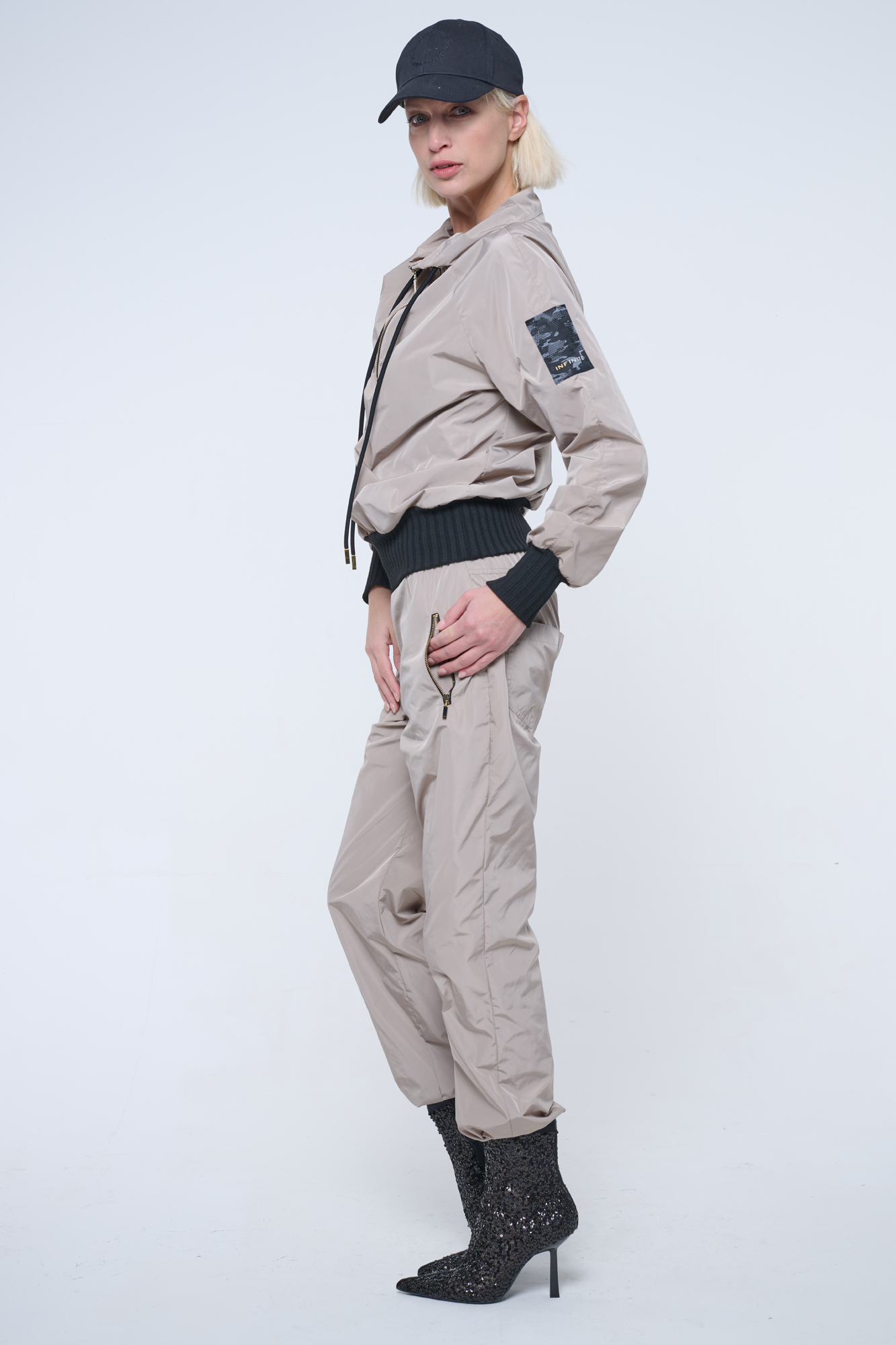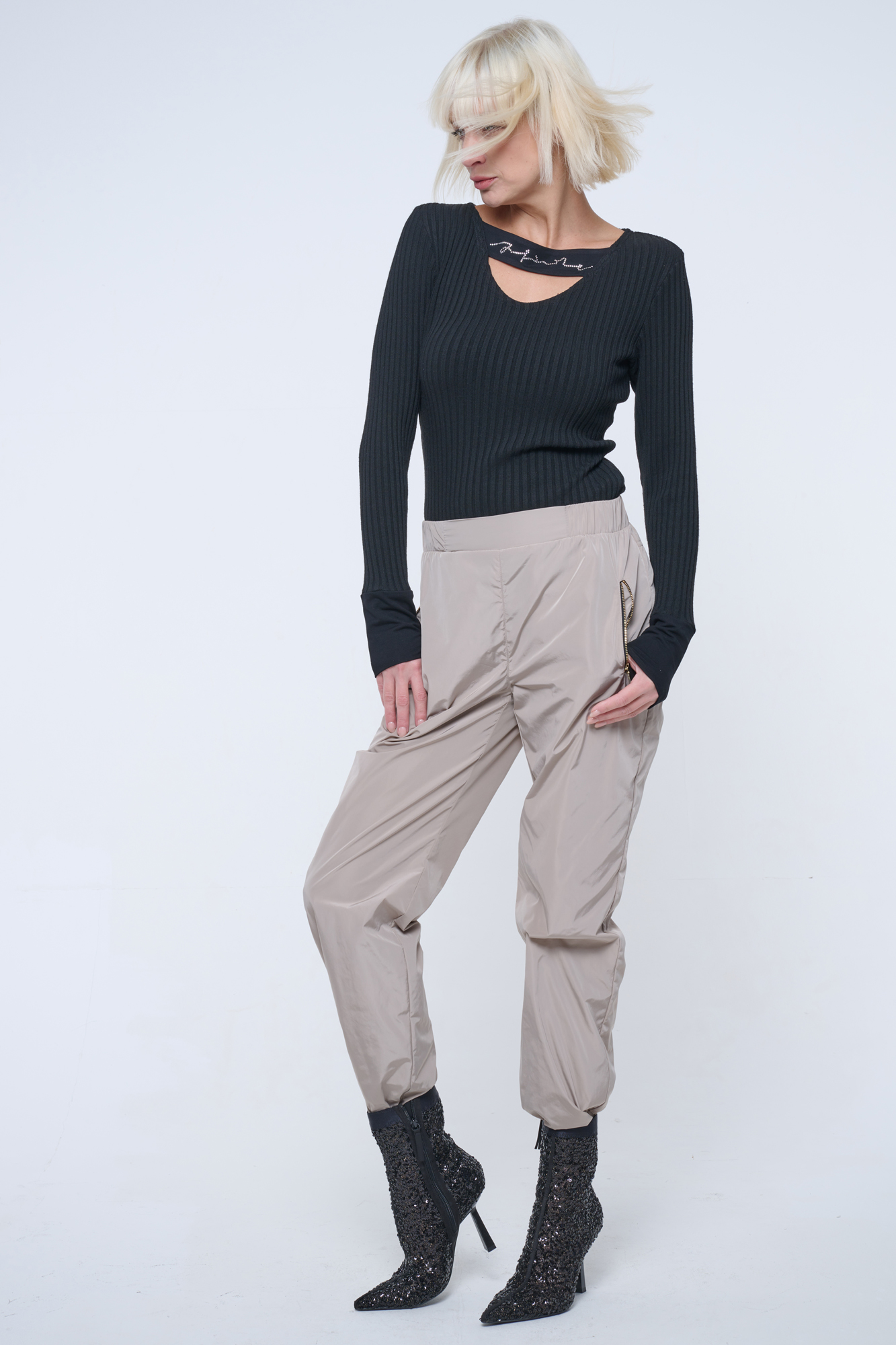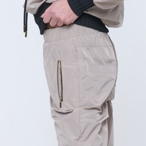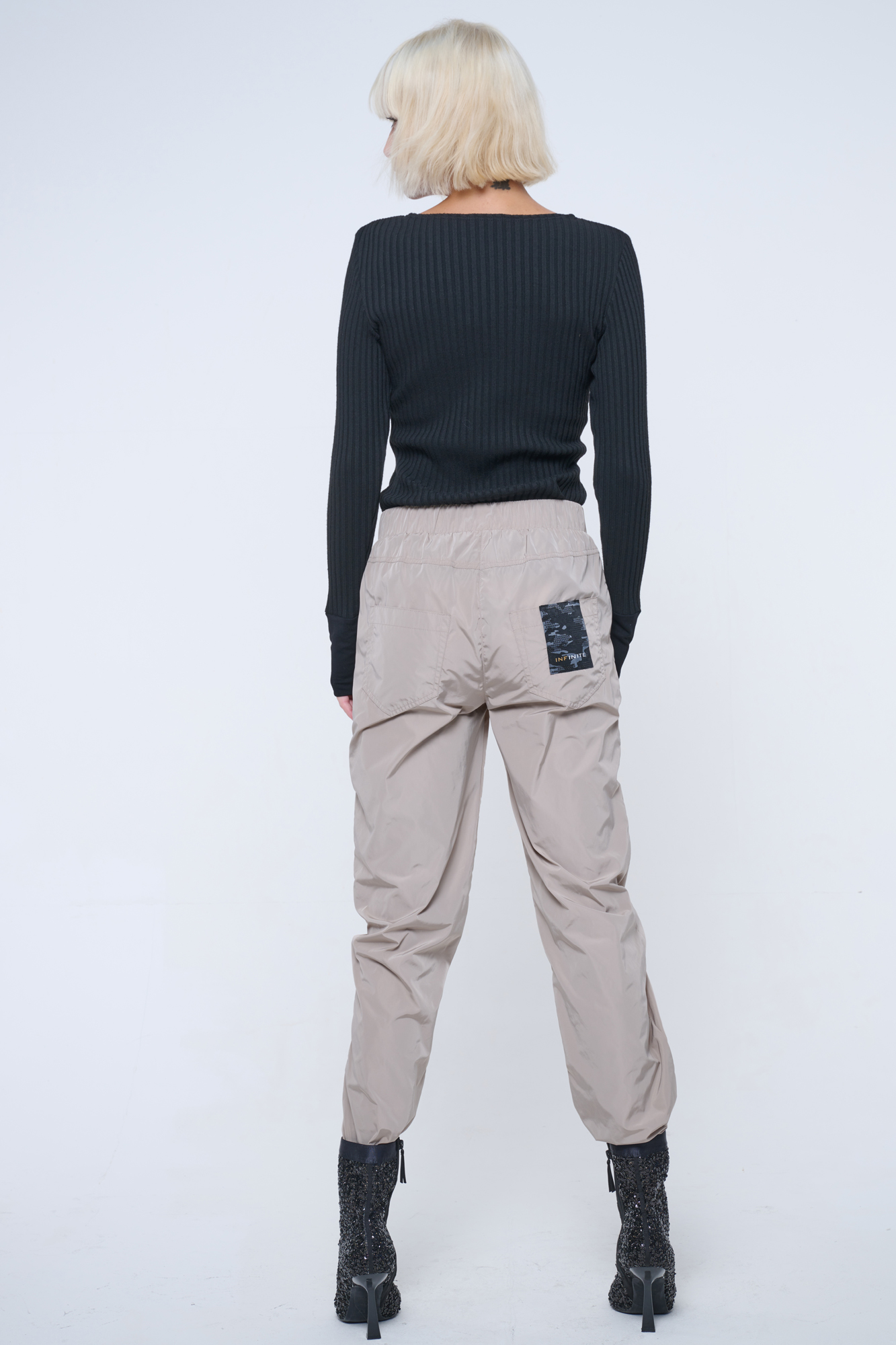 Šusťákové kalhoty s gumou INF v pase. Zlaté doplňky.