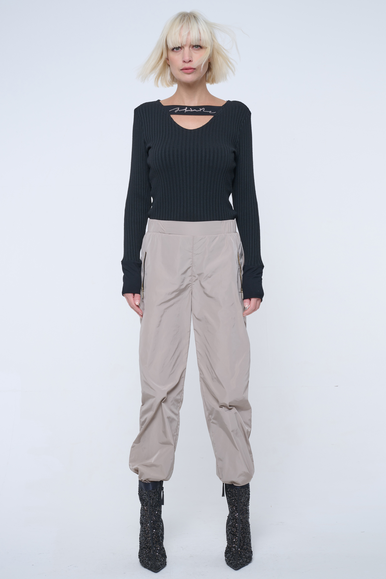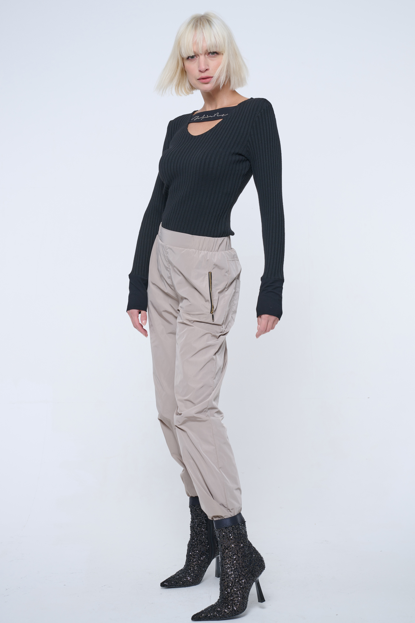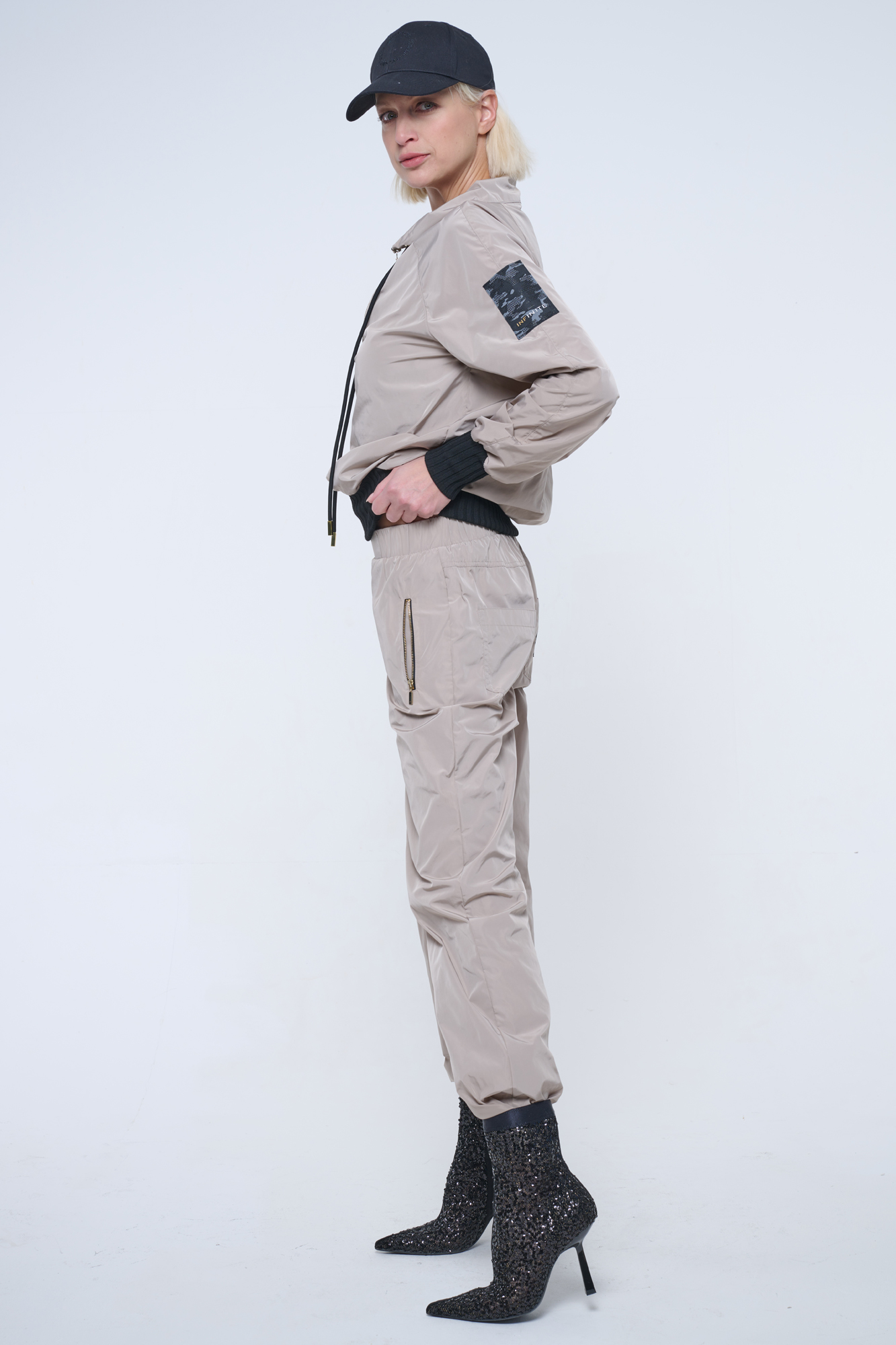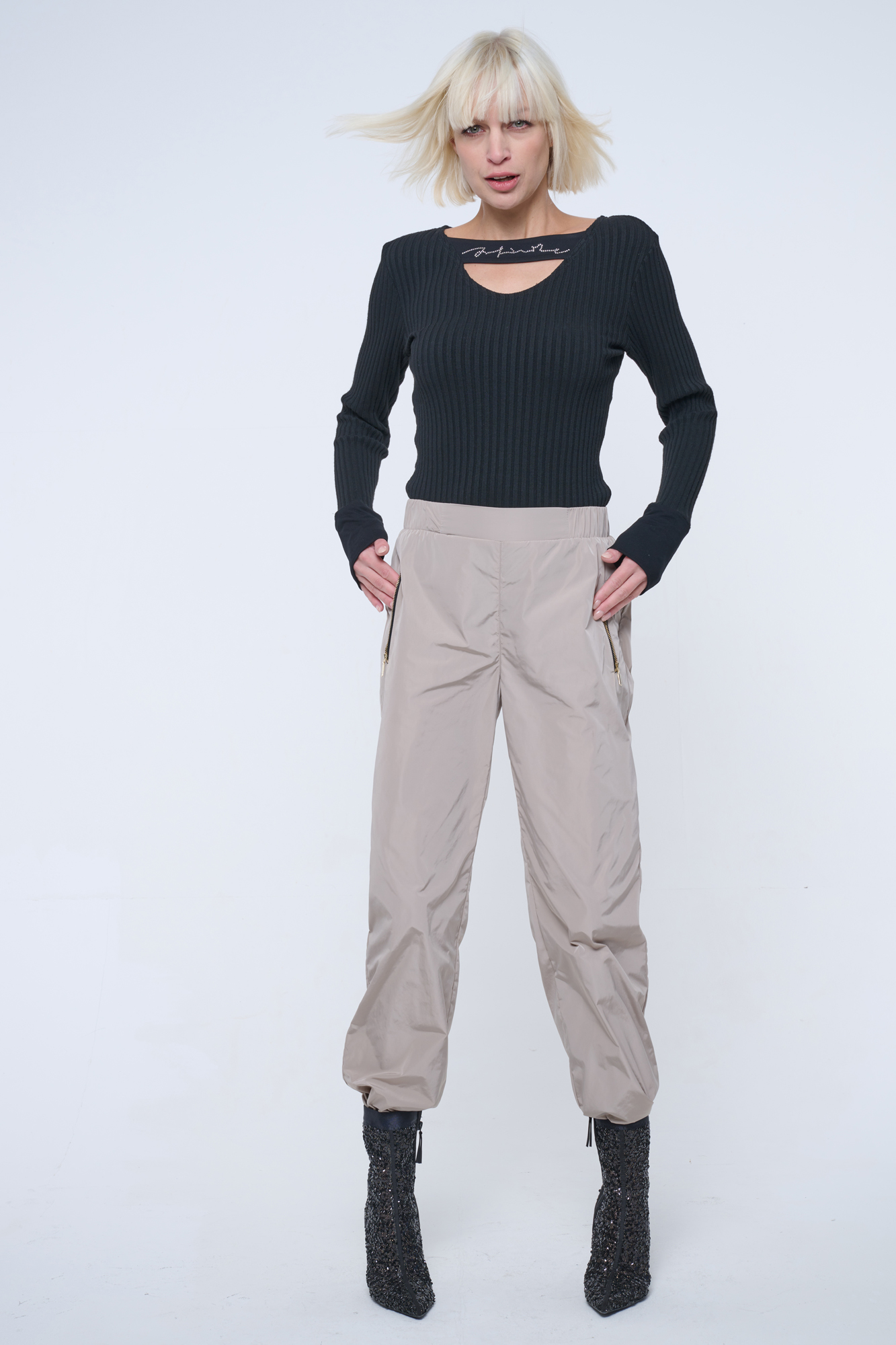 Šusťákové kalhoty s gumou INF v pase. Zlaté doplňky.