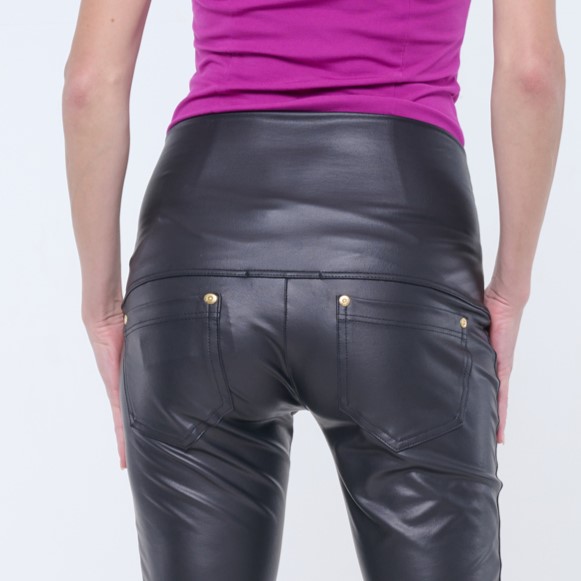 Legínové slim kalhoty z ekokůže s kapsami na zadním díle.