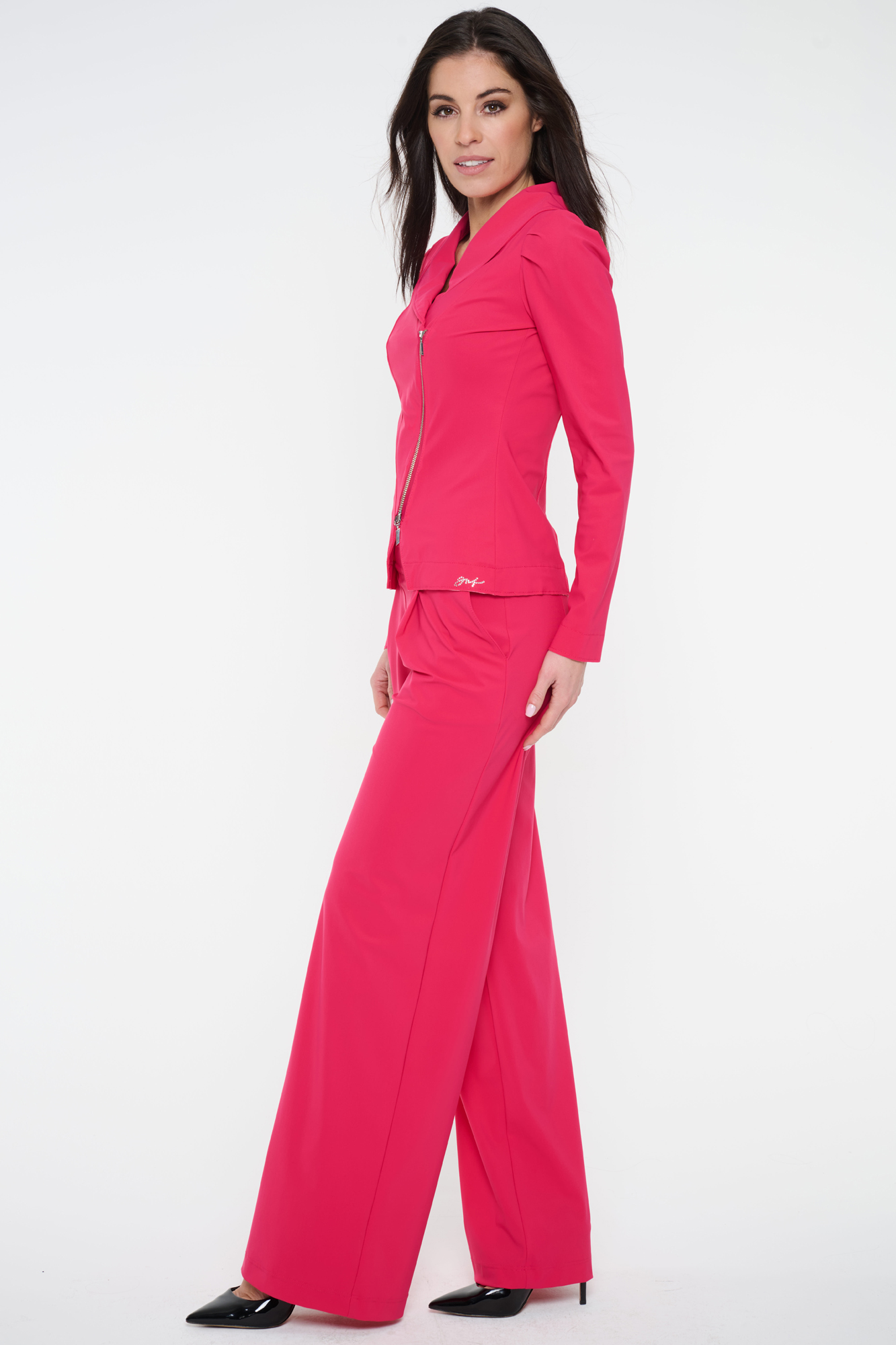 Kalhoty Infinite se širokými nohavicemi, Na jednom boku minimalistické logo INF ze stříbrných krystalů.