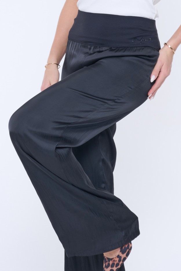 Kalhoty rovného volnějšího střihu. V pase sedlo, ze strečového materiálu, díky němu sedí střih všem postavám. Kalhoty vhodné na svatbu, ale i k teniskám do města.