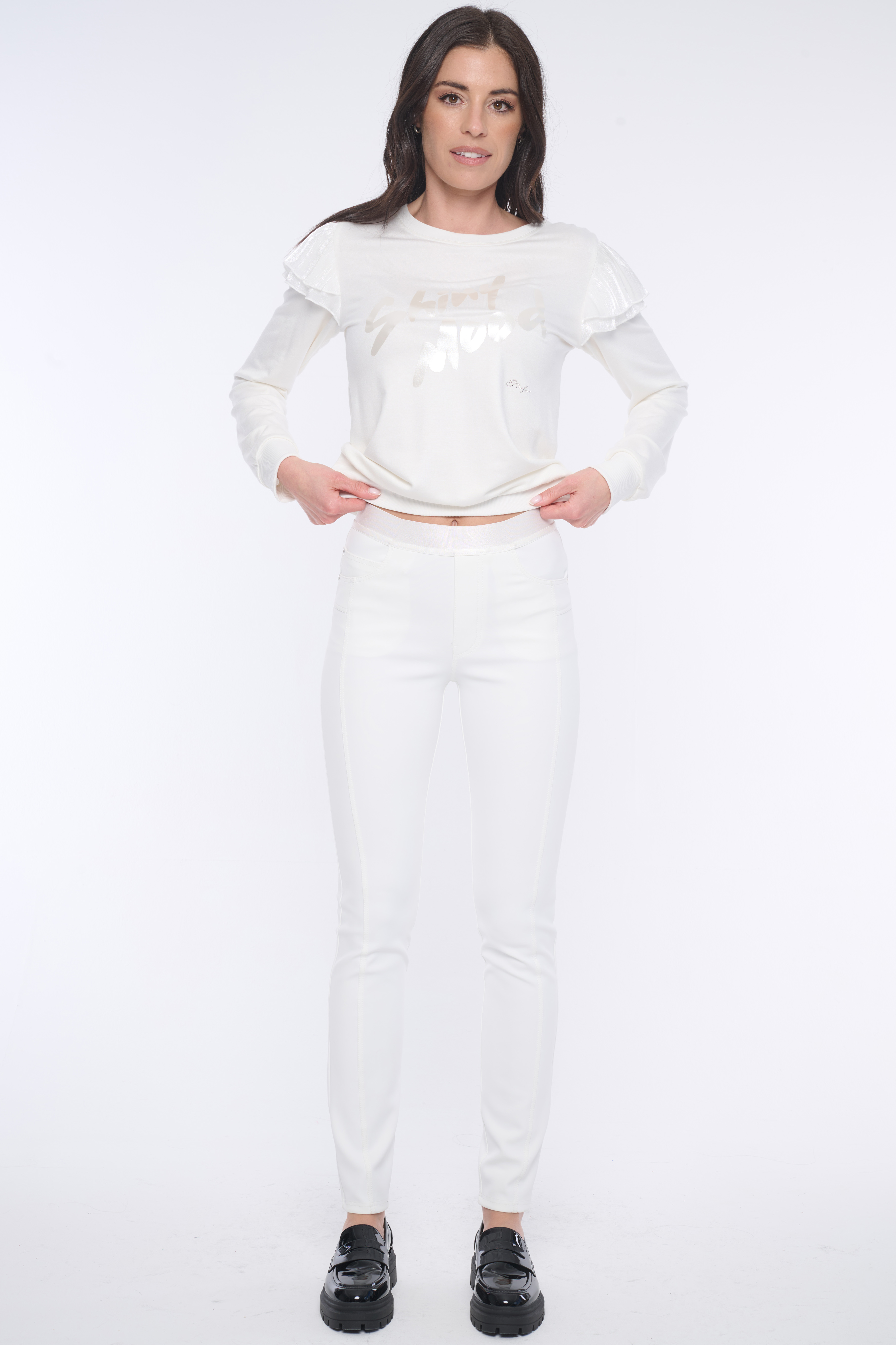 Slim kalhoty džínového střihu. V pase efektní guma INF.