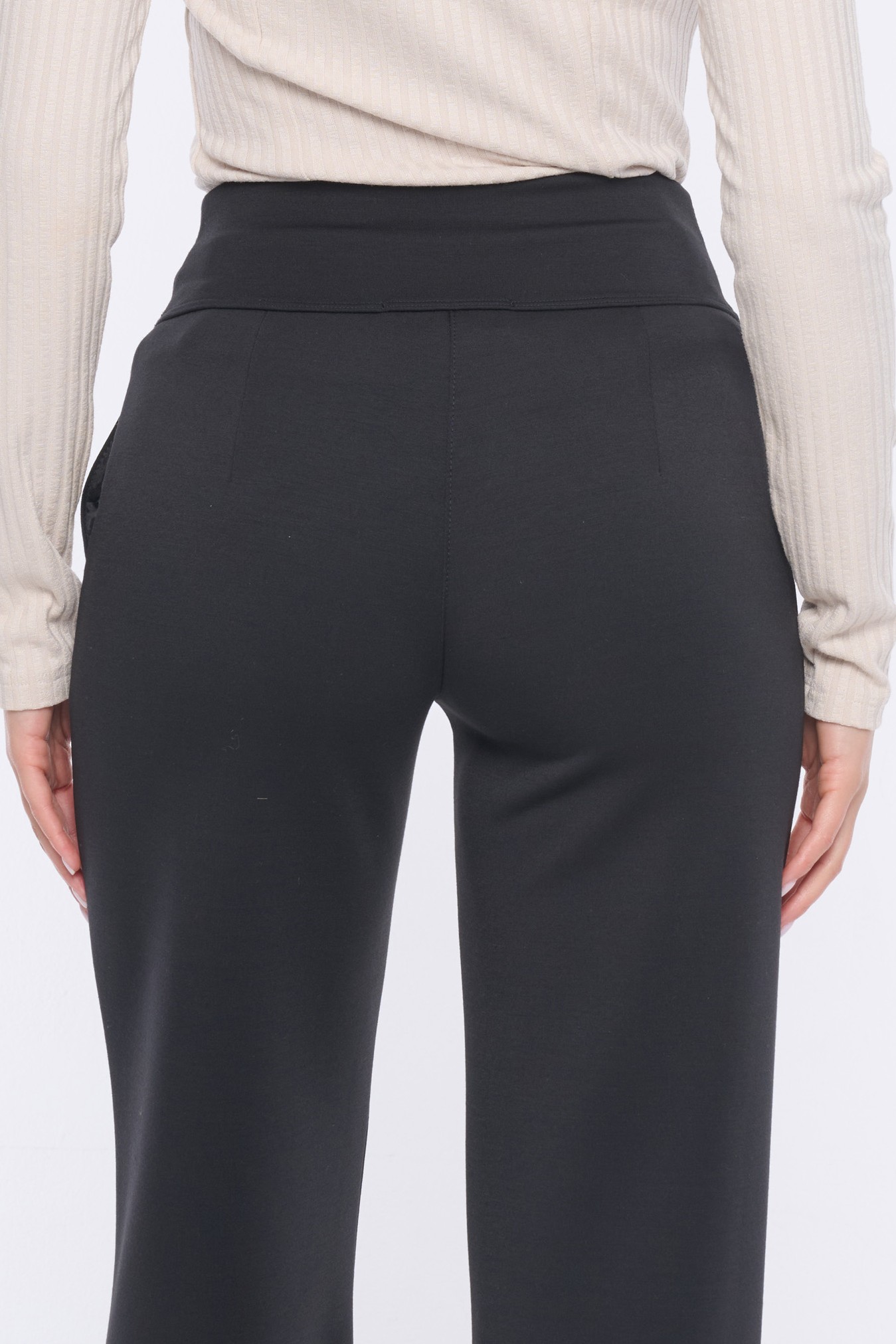 Kalhoty se širšími nohavicemi vyrobeny z kvalitního úpletu. Kalhoty mají štepované puky.