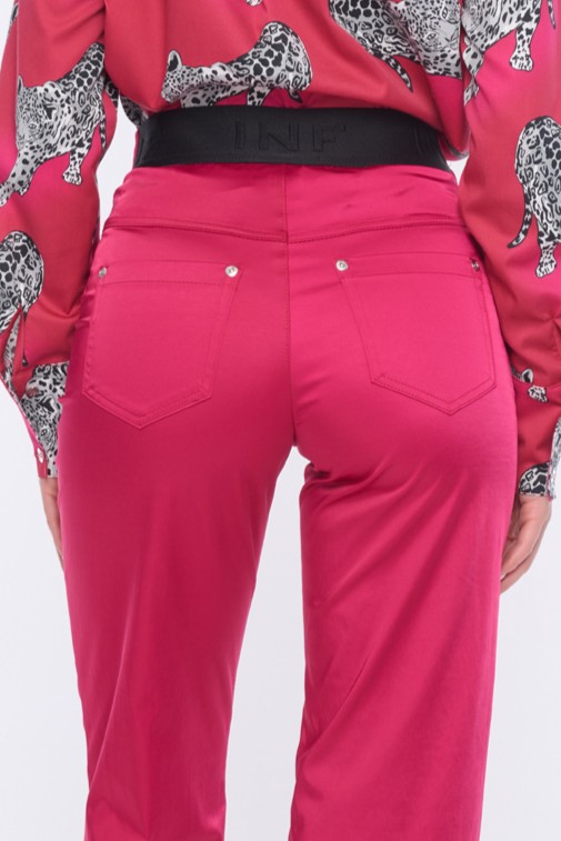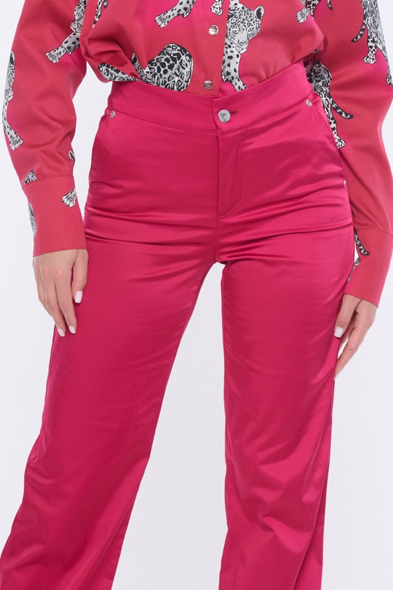 Kalhoty "džínového střihu" se širokými nohavicemi. V zadním díle v pase efektní guma INF díky které sedí kalhoty mnoha postavám. Stříbrné doplňky.