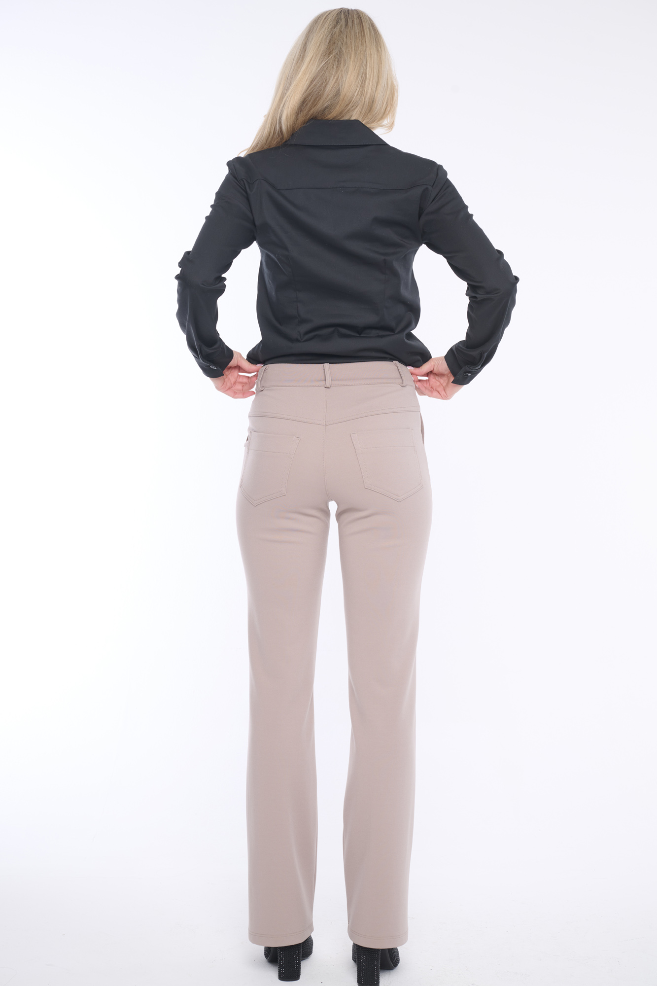 Klasické elegantní kalhoty rovného střihu doplněné lesklým knoflíkem. Dostupné ve dvou barevných variantách.