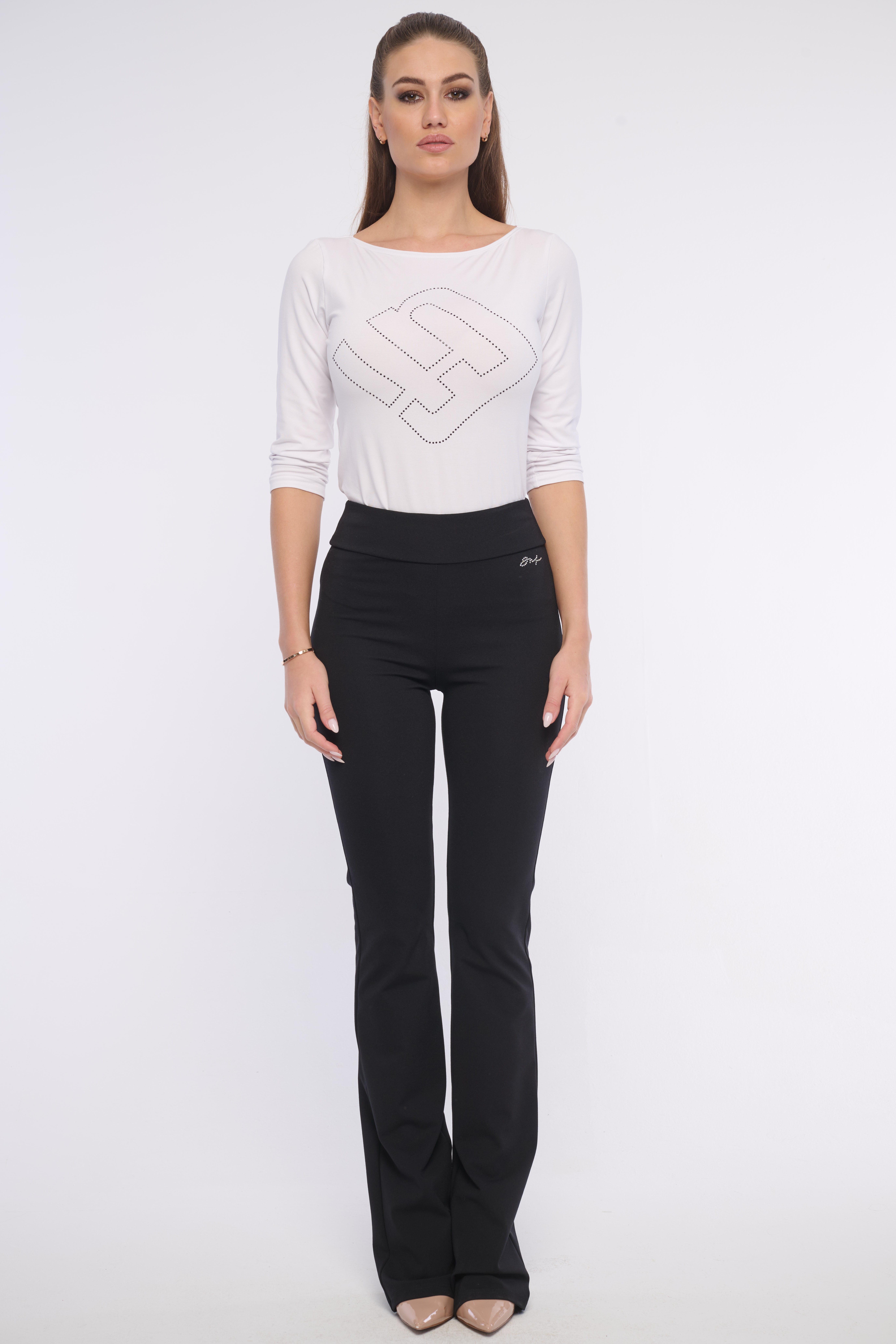 Klasické zvonové leginy z velmi příjemného materiálu. Krásně tvarují postavu a guma v pase zvýrazňuje pas. Detailem je logo z luxusních krystalů Swarovski. Kousek, který by neměl chybět v žádném šatníku. Dostupné ve dvou barevných variantách.