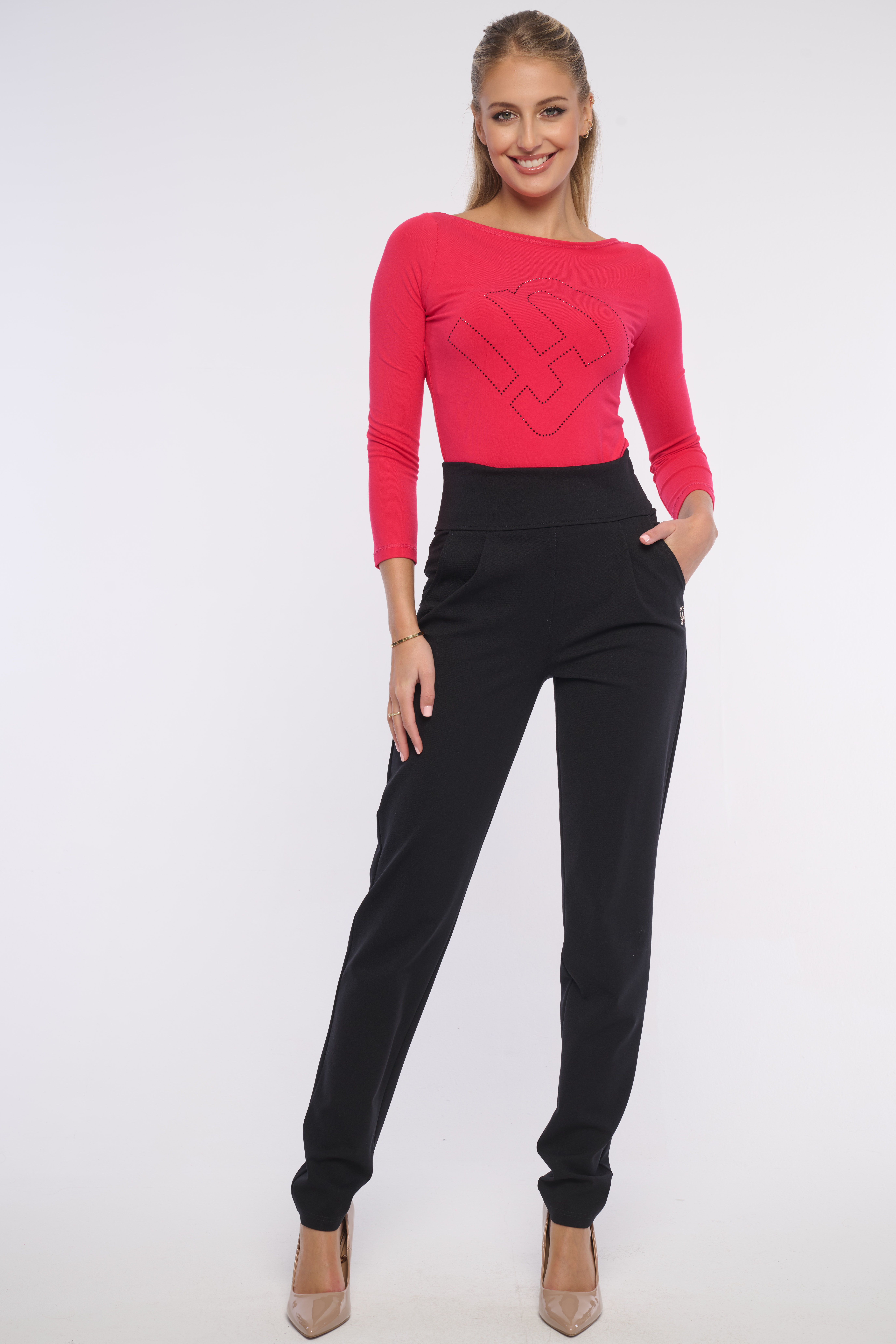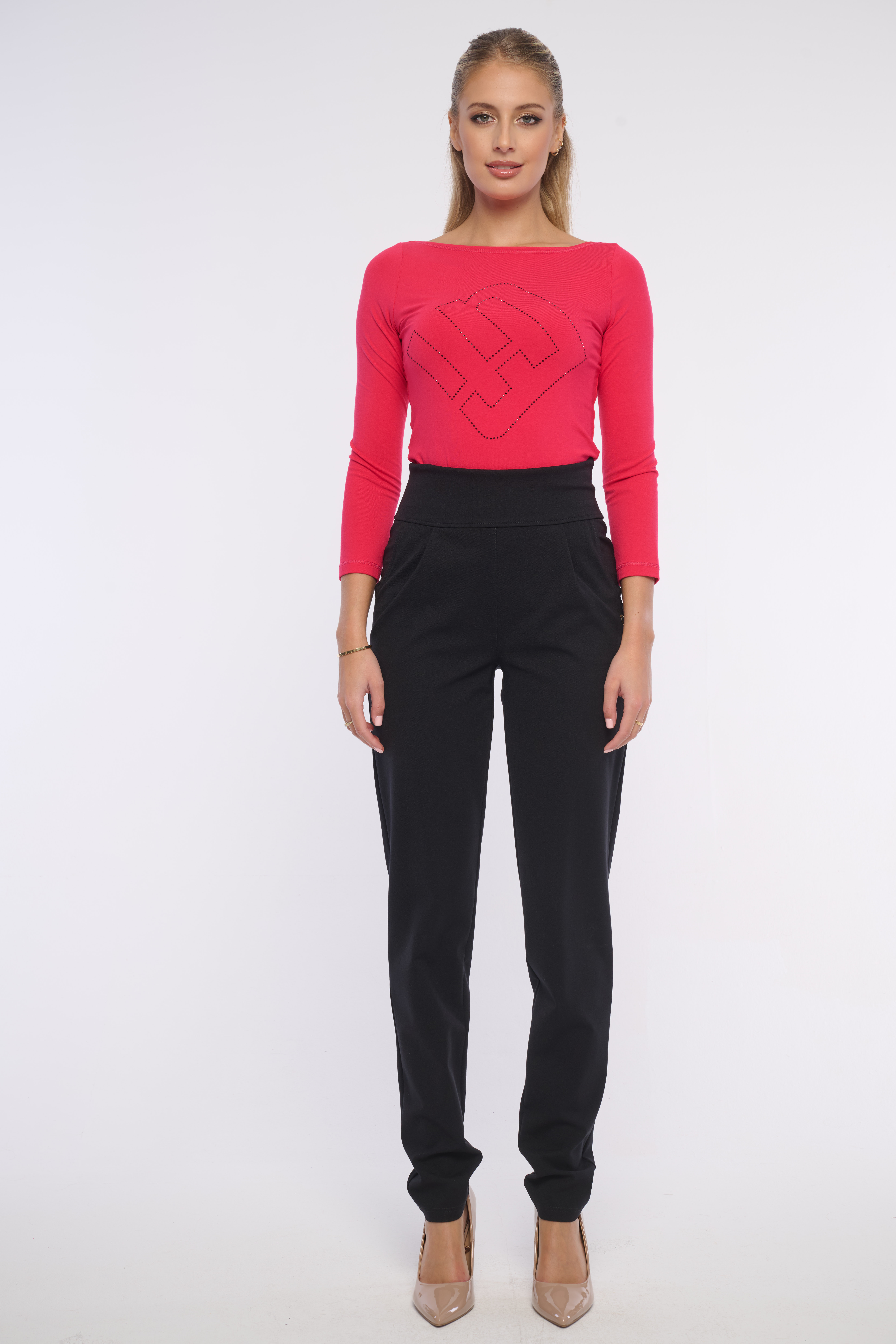 Klasické elegantní kalhoty, které krásně tvarují postavu. Detail tvoří loga na kapsách z luxusních krystalů Preciosa. Kousek, který by neměl chybět v žádném šatníku. Dostupné ve dvou variantách.