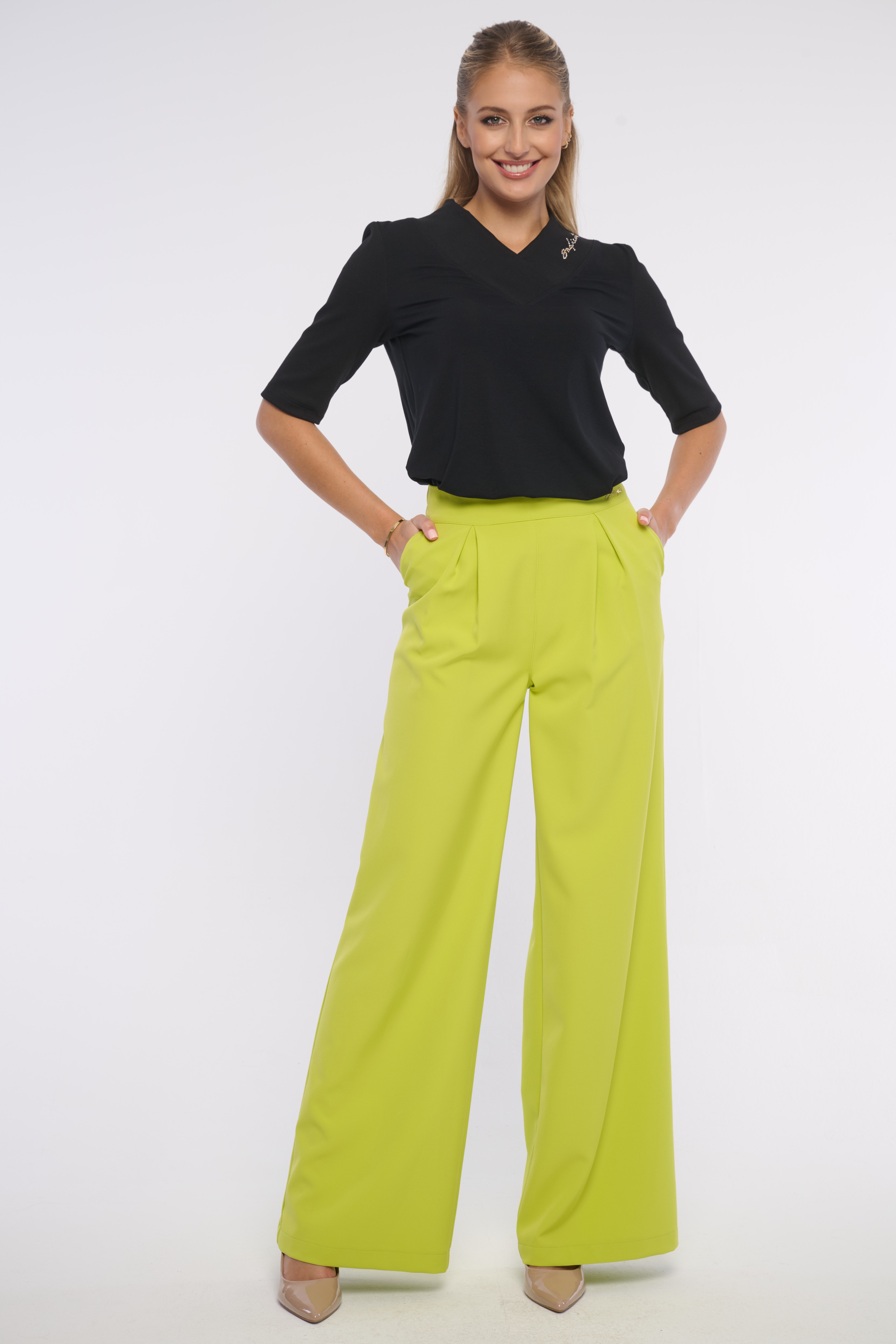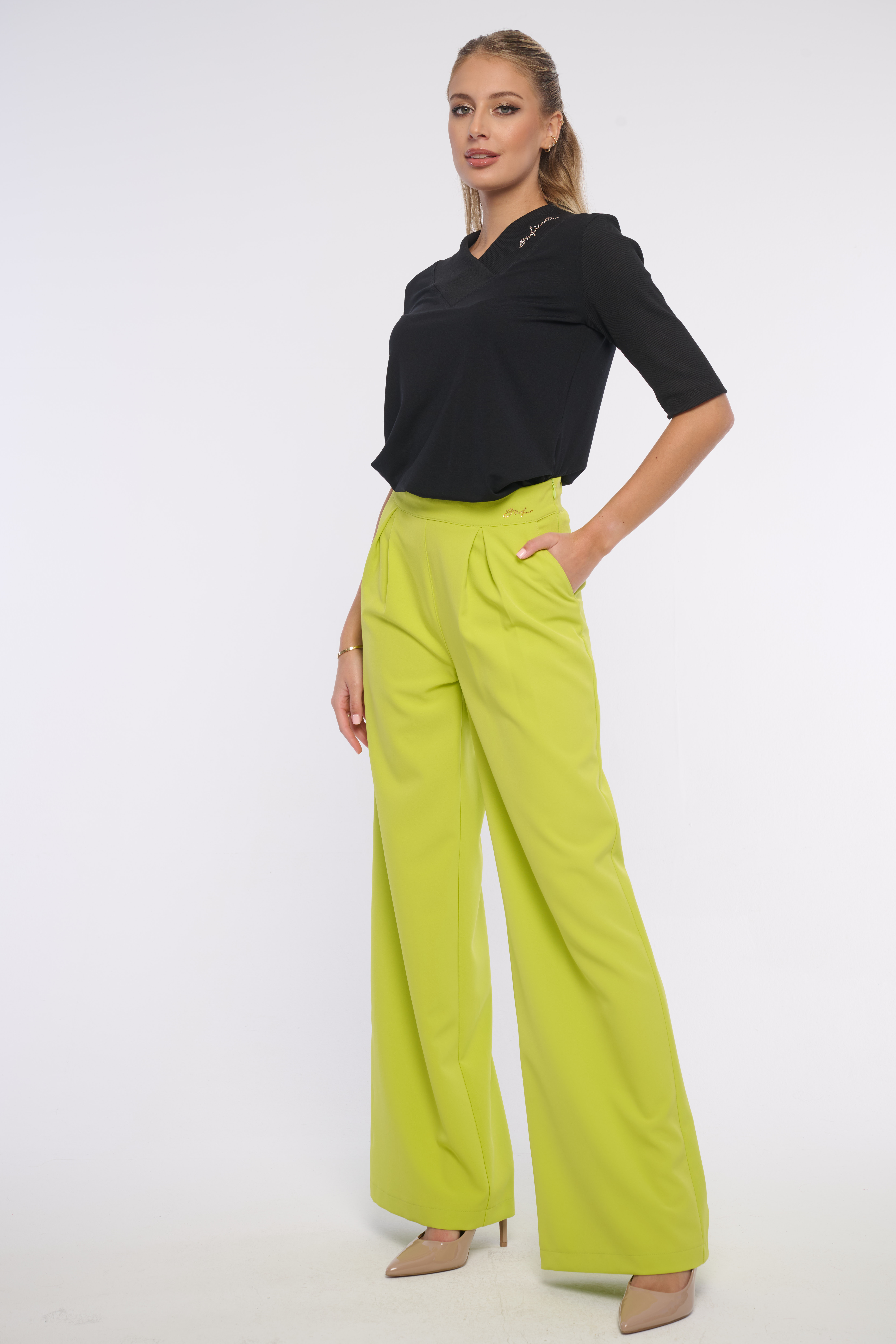 Elegantní volné kalhoty v pase na gumu, tudíž zajišťují pohodlí při každé příležitosti. Detail na kapse tvoří logo z luxusních krystalů Swarovski. Kousek, který rozhodně ozvláštní každý jednoduchý outfit. Dostupné ve třech barevných variantách.