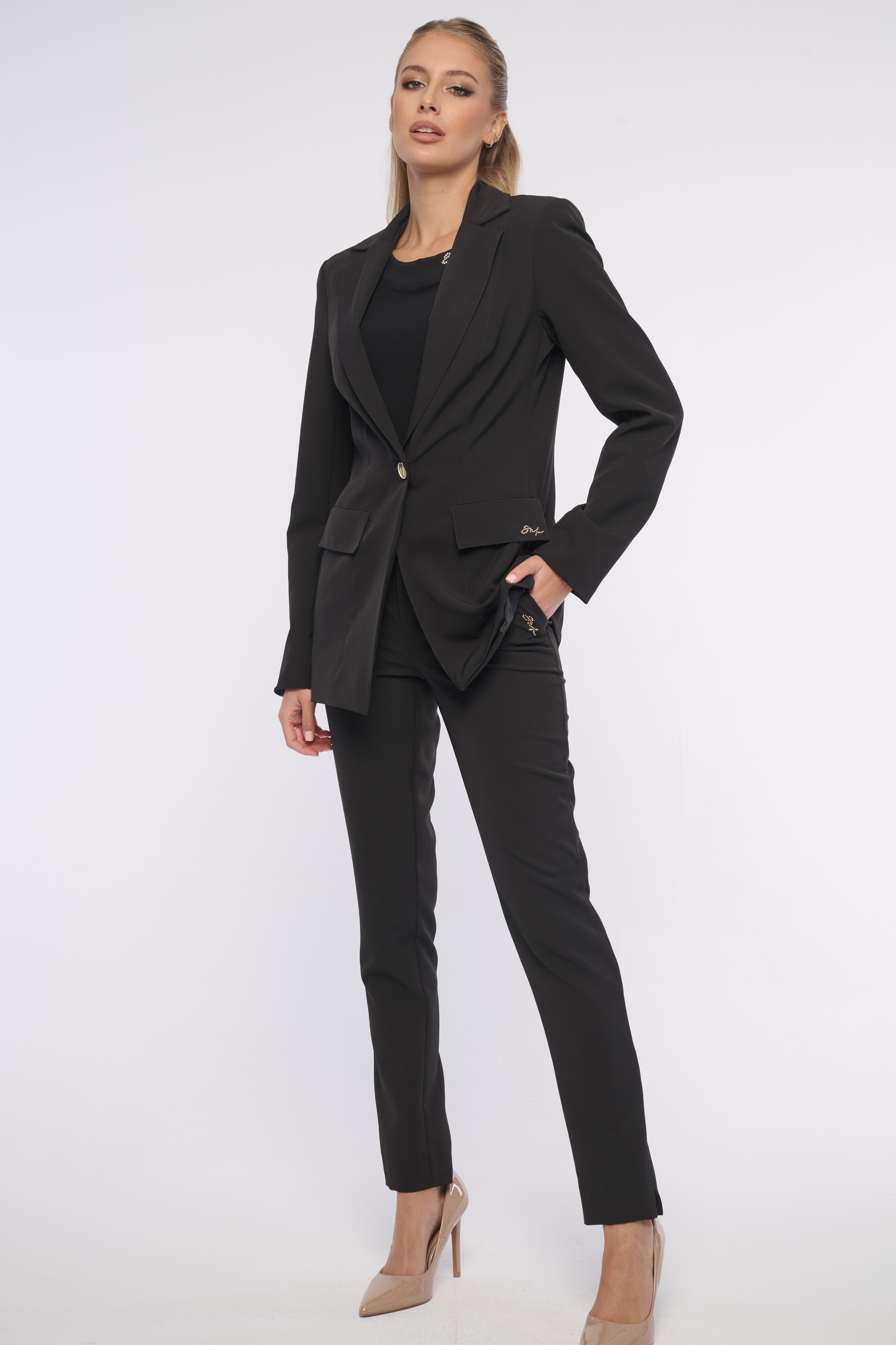 Klasické elegantní kalhoty s výrazným zlatým knoflíkem, doplněné logem z luxusních krystalů Swarovski. Vhodné na jakoukoliv příležitost i běžné nošení. Dostupné ve dvou barevných variantách.