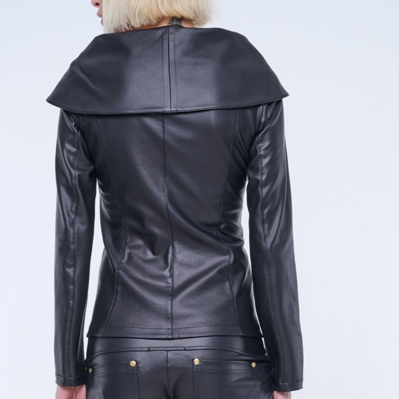Křivák z ekokůže se zlatým zipem. Slim střih.
