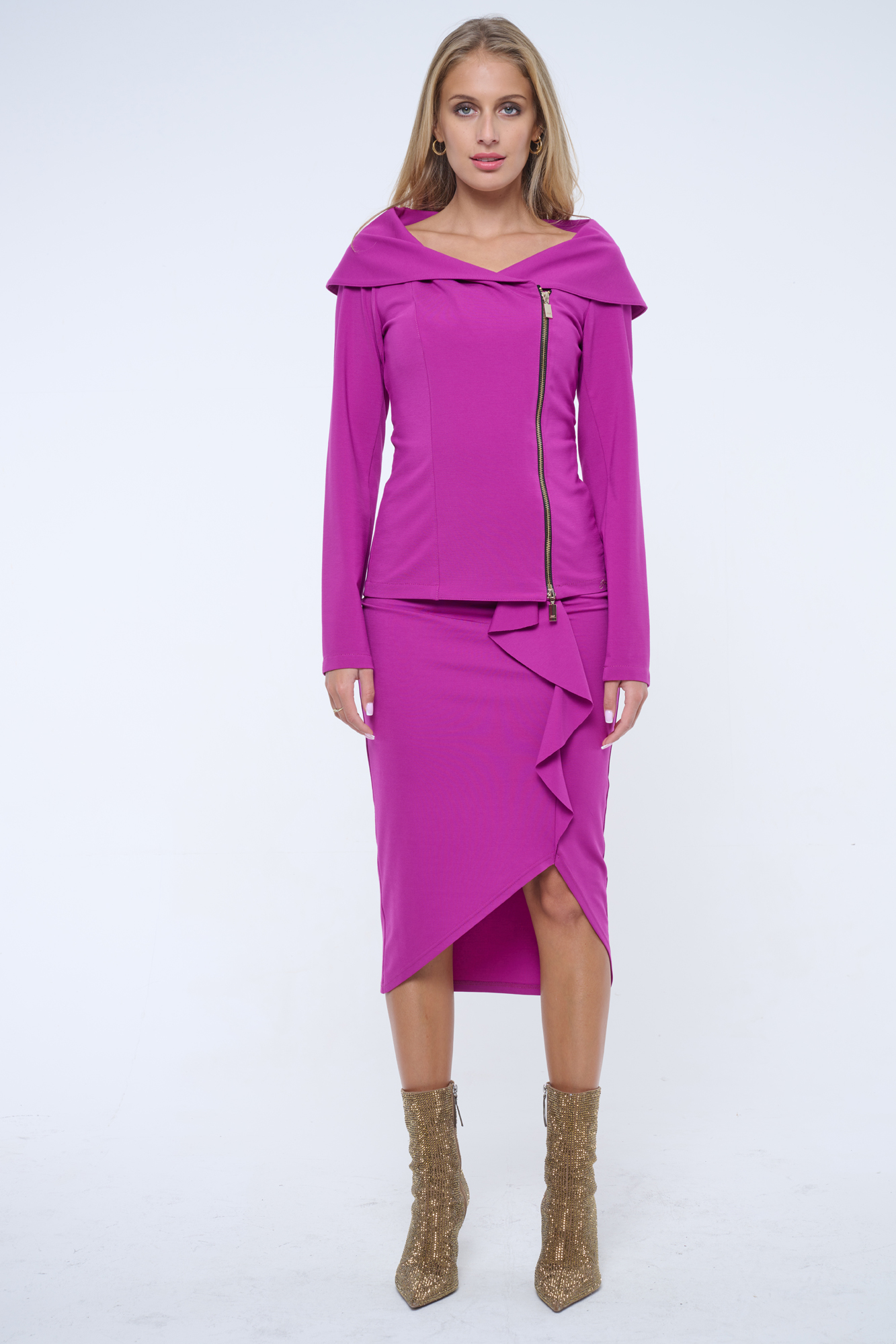 Úpletový křivák se zlatým zipem. Malé krystalové logo INF. Slim střih.