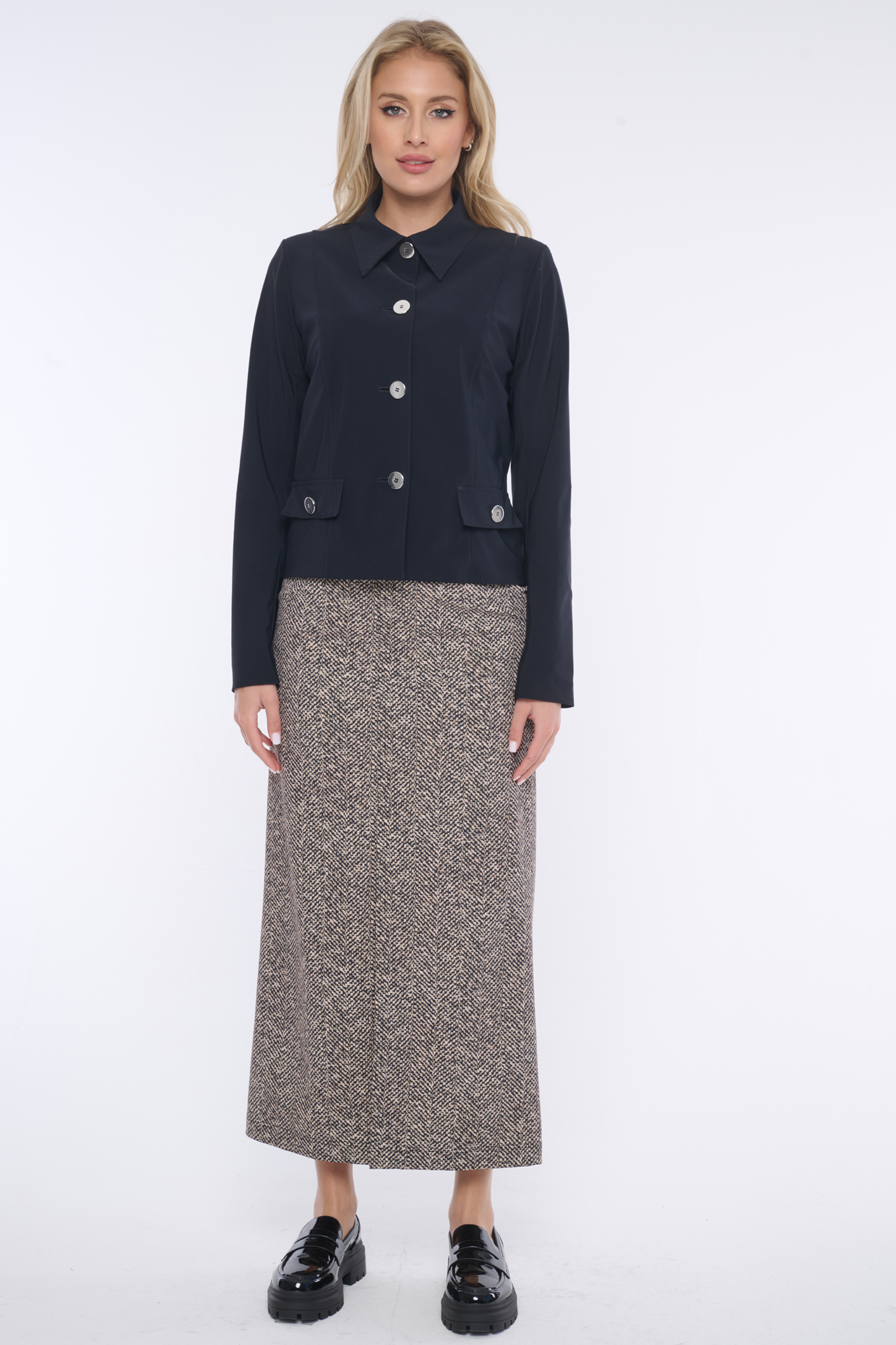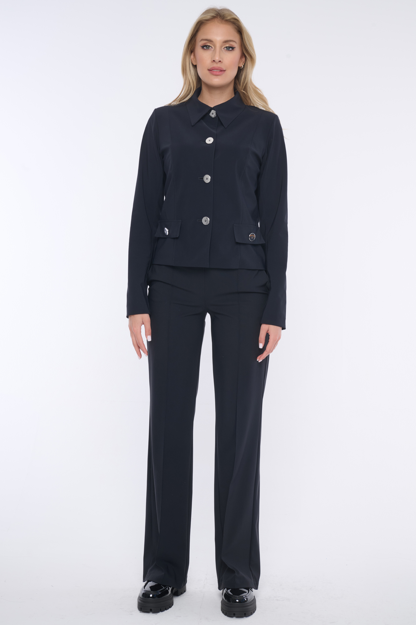 Tyto sako je vhodné nosit samostatně nebo jako módní kalhotový kostým společně se širokými kalhoty ze stejné kolekce.