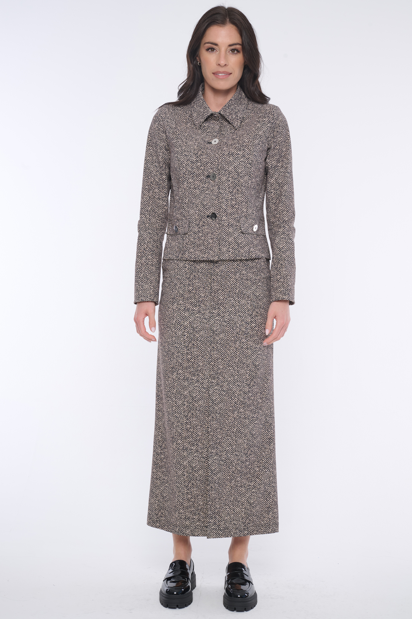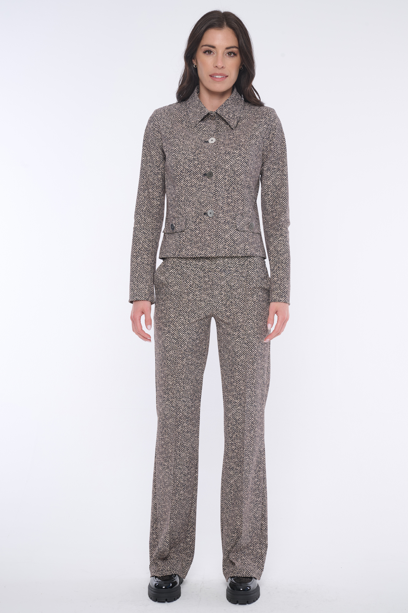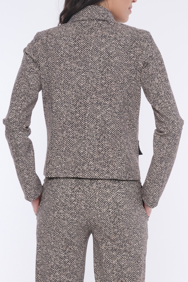 Tyto sako je vhodné nosit samostatně k uni kalhotům nebo jako módní kalhotový kostým společně s tvídovými kalhoty ze stejné kolekce.