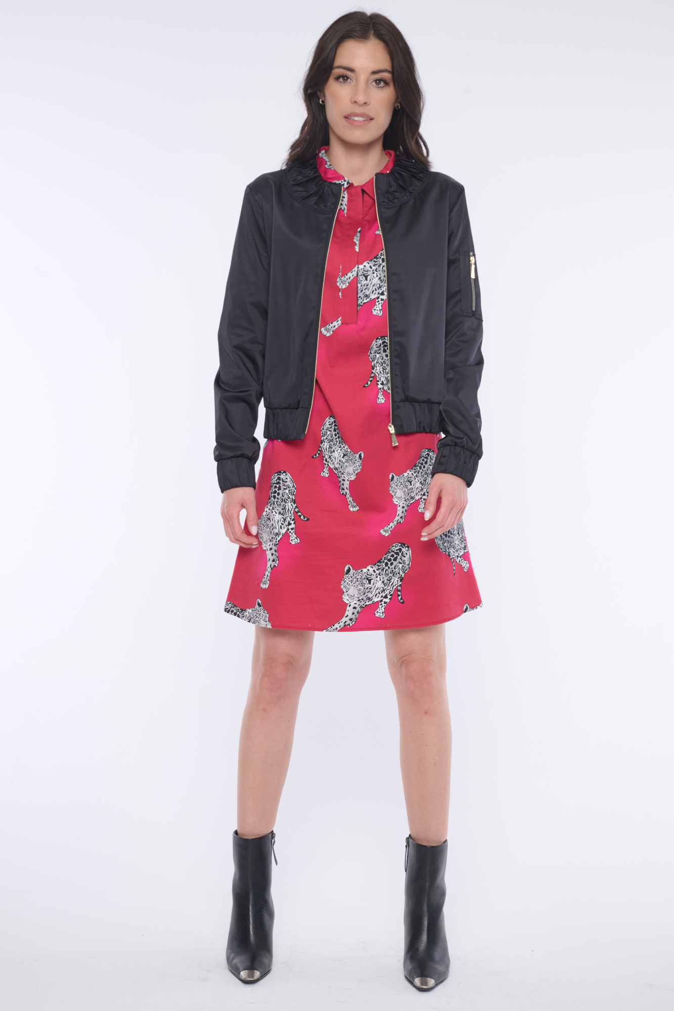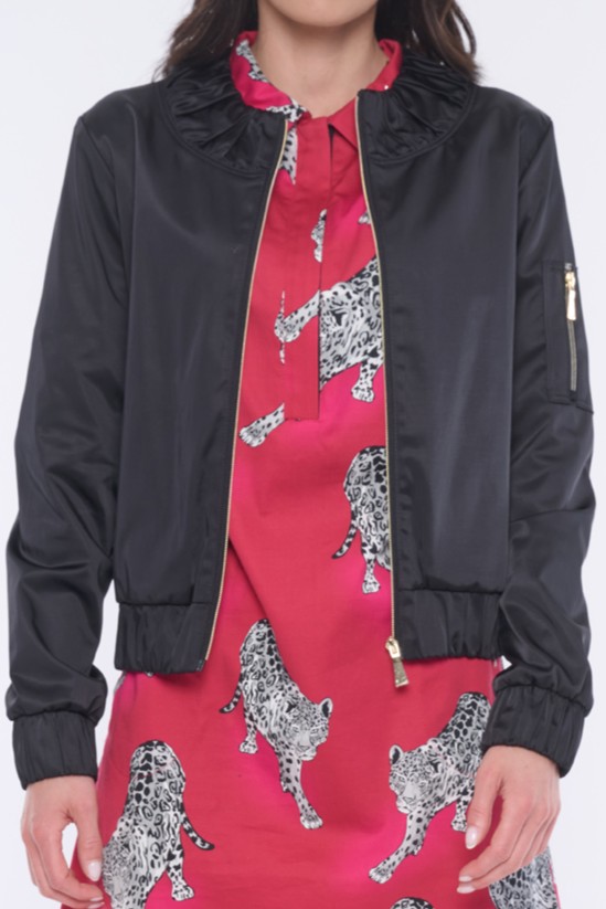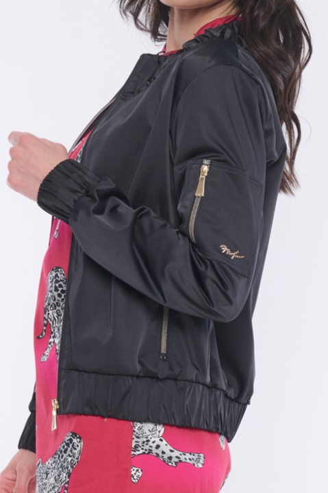 Univerzální luxusní bundička z polomatného saténu vhodná do exteriéru i interiéru. Na rukávu kapsička se zipem a minimalistickým logem INF z krystalů Swarovski.