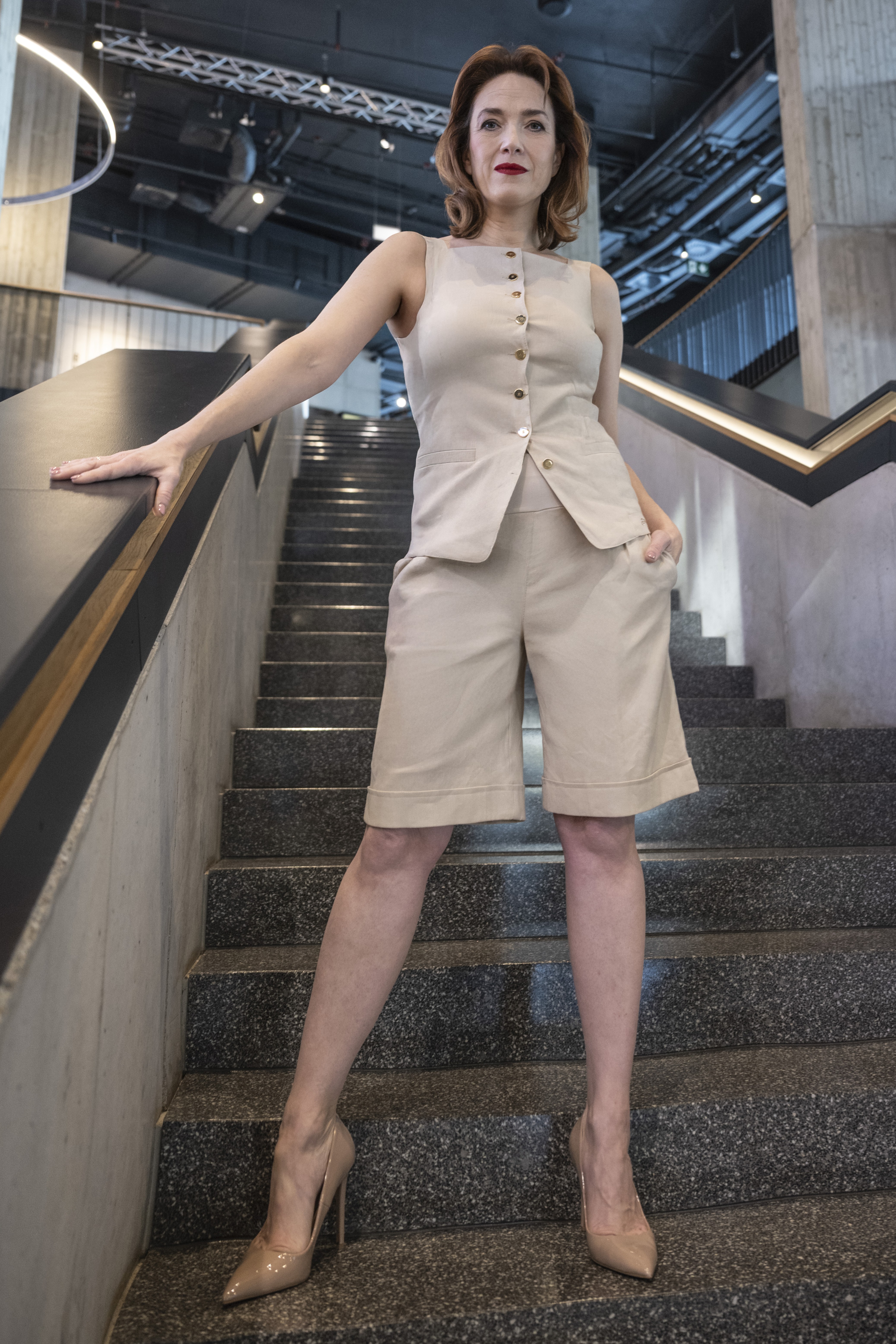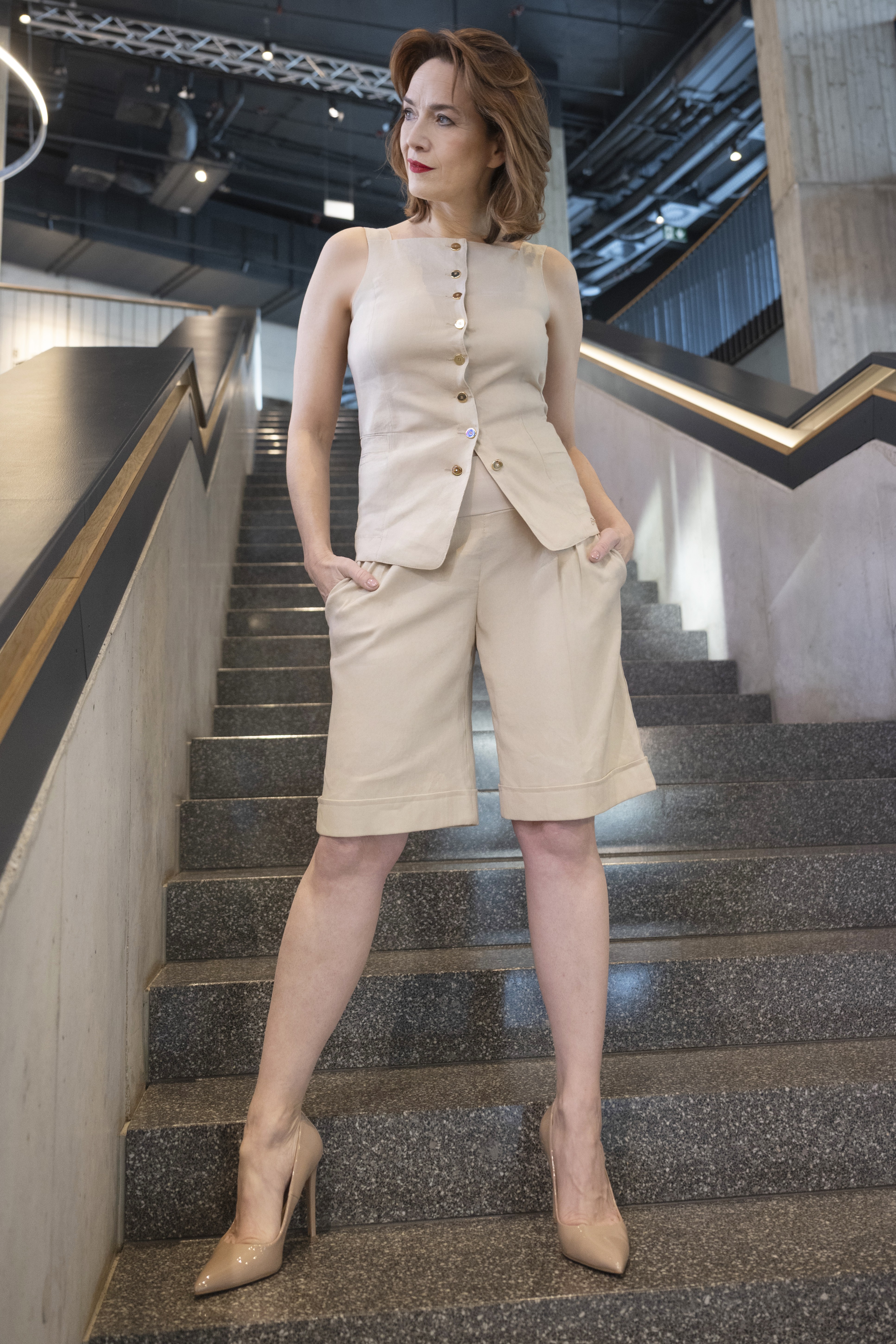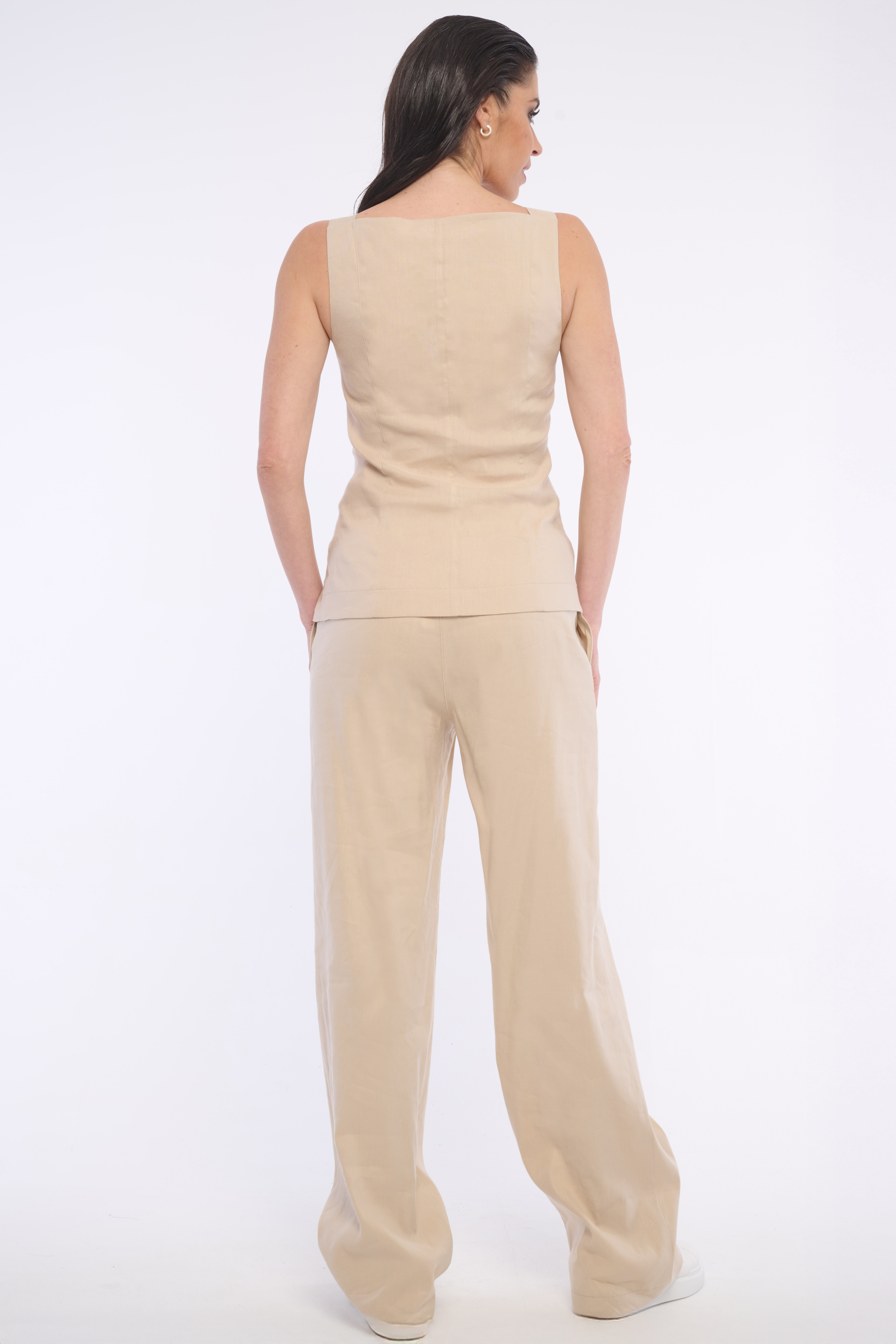 Elegantní lněná vesta s výraznými zlatými knoflíky. Ideální do kompletu s našimi lněnými kalhotami. Dostupná ve dvou barevných variantách.