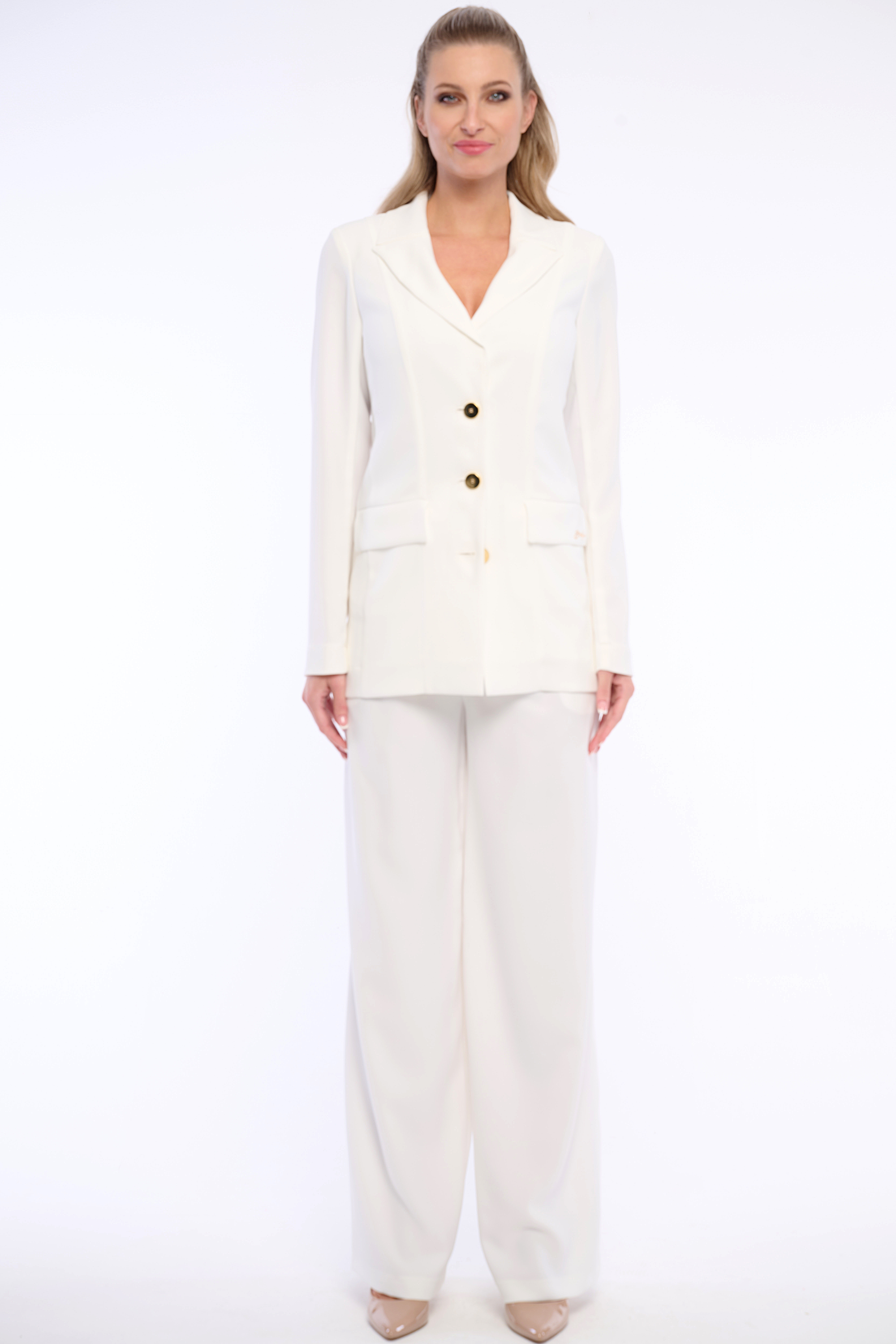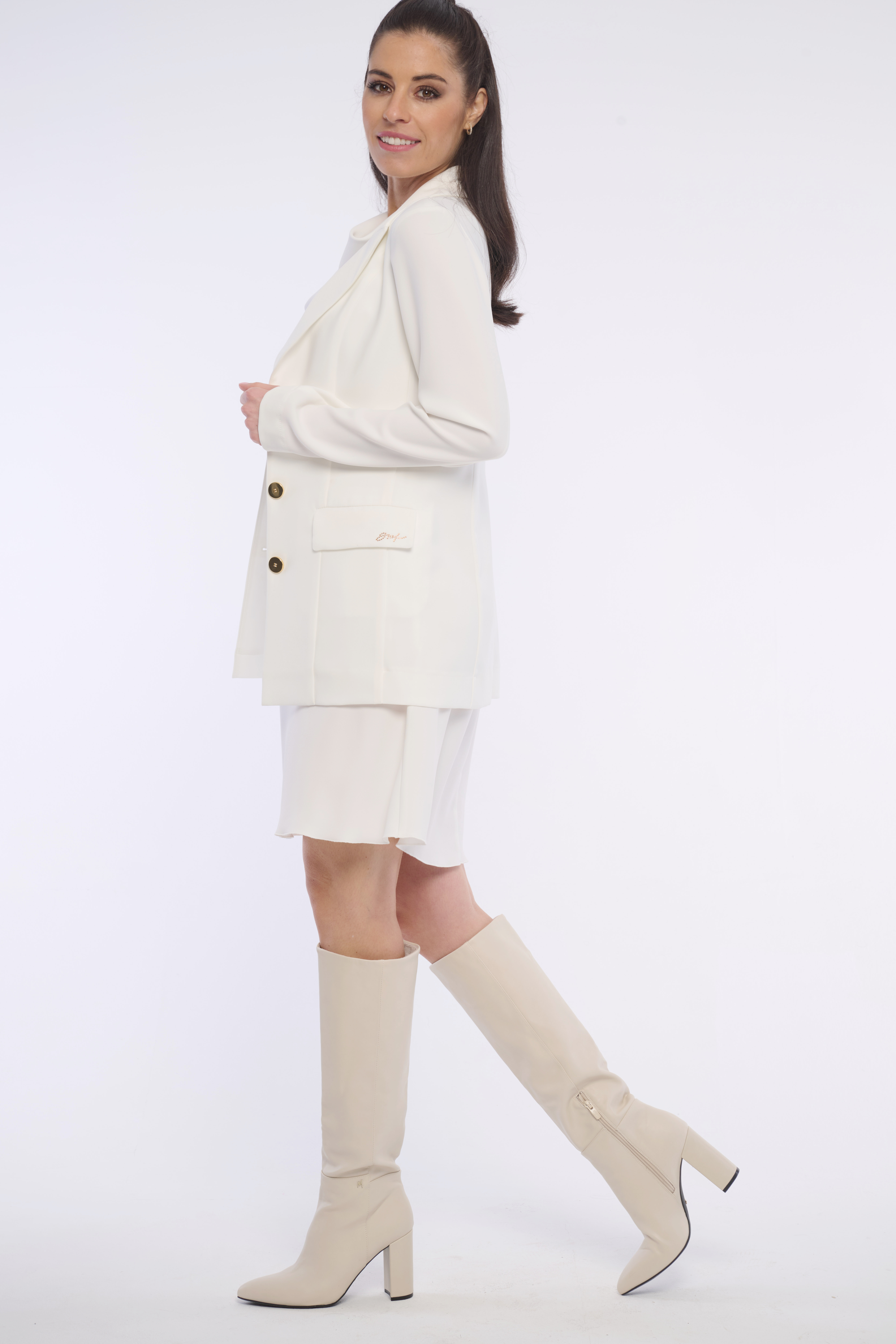 Lehké sako z příjemného materiálu s výraznými knoflíky. Detail na kapse tvoří logo z luxusních krystalů Swarowski. Dostupné ve dvou barevných variantách.