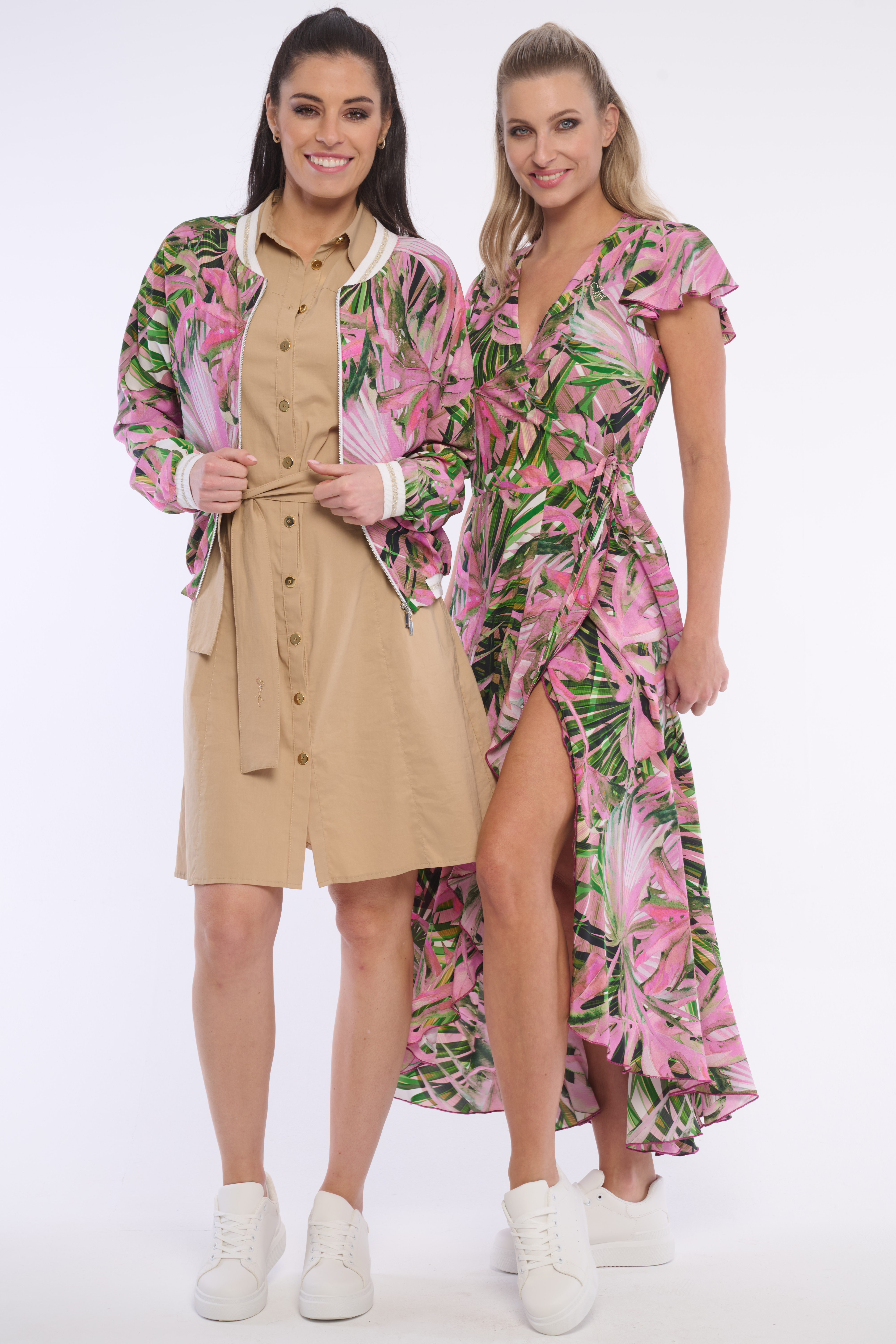 Lehký letní bomber s neobyčejným vzorem, který vám ozvláštní každý outfit. Detail tvoří logo z luxusních krystalů Preciosa. Dostupný ve třech barevných variantách.