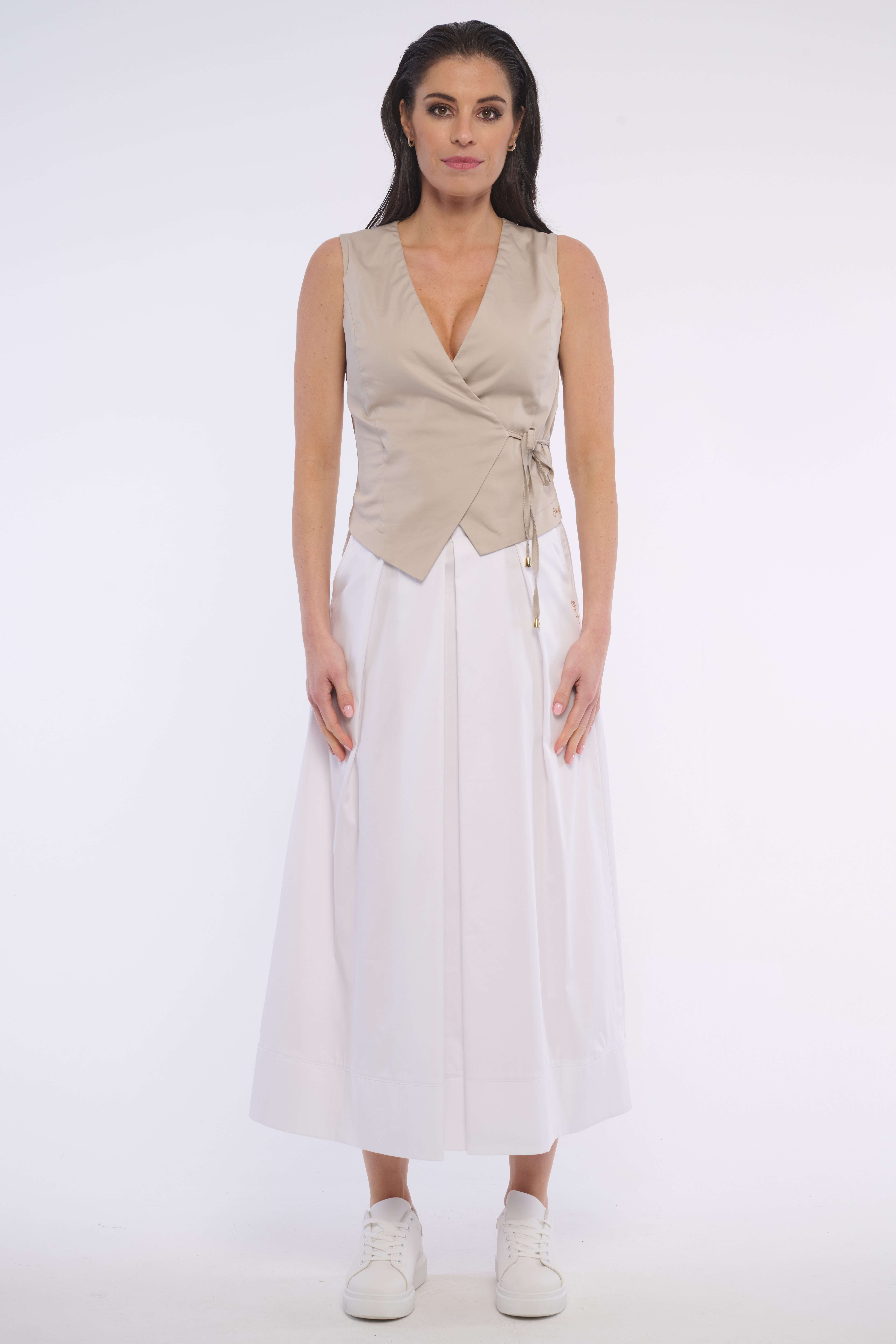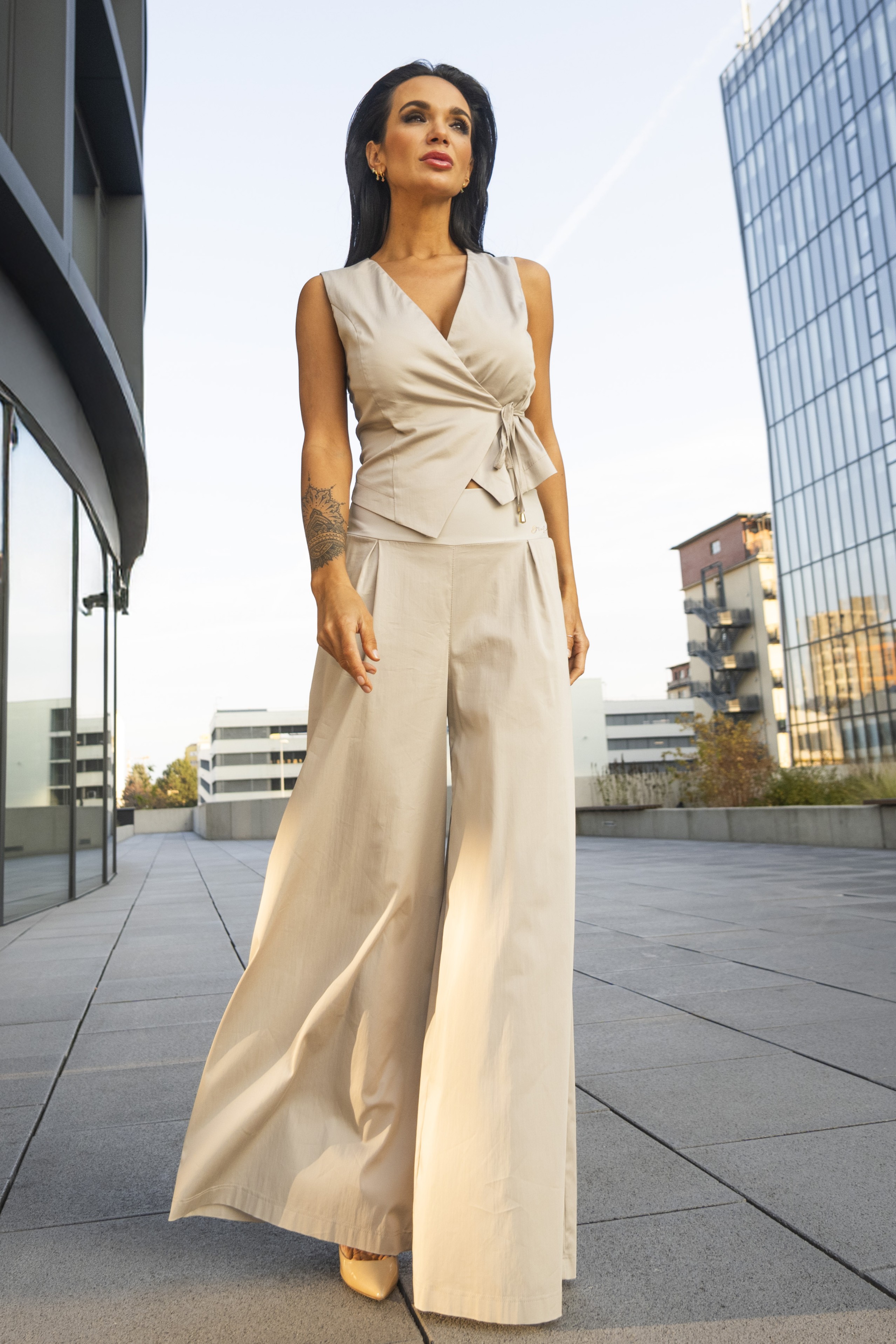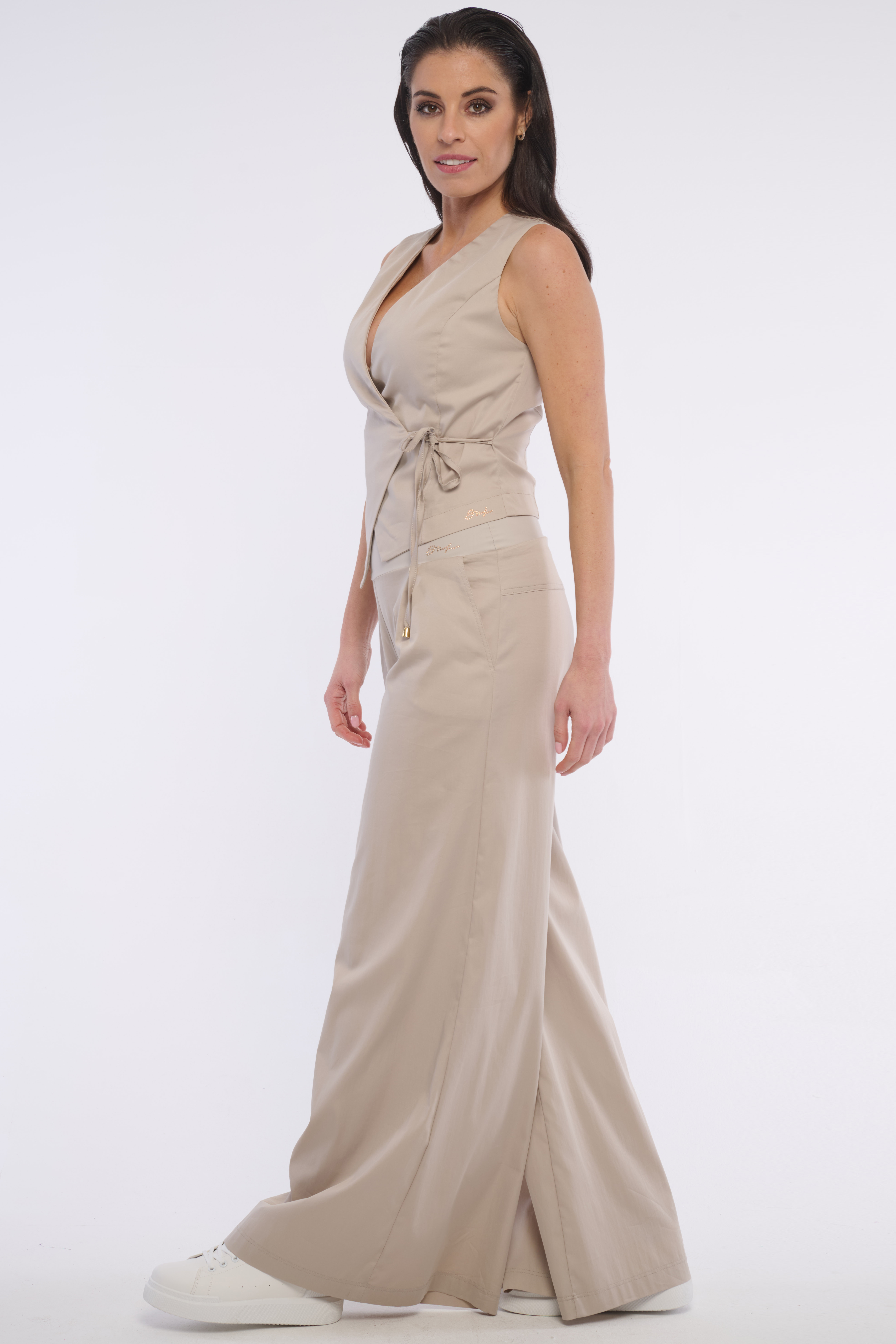 Zajímavá zavinovací vesta na šňůrku, která krásně zvýrazní pas. Ideální do kombinace s našimi kalhotami ve stejné barvě. Dostupné ve dvou barevných variantách.