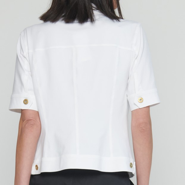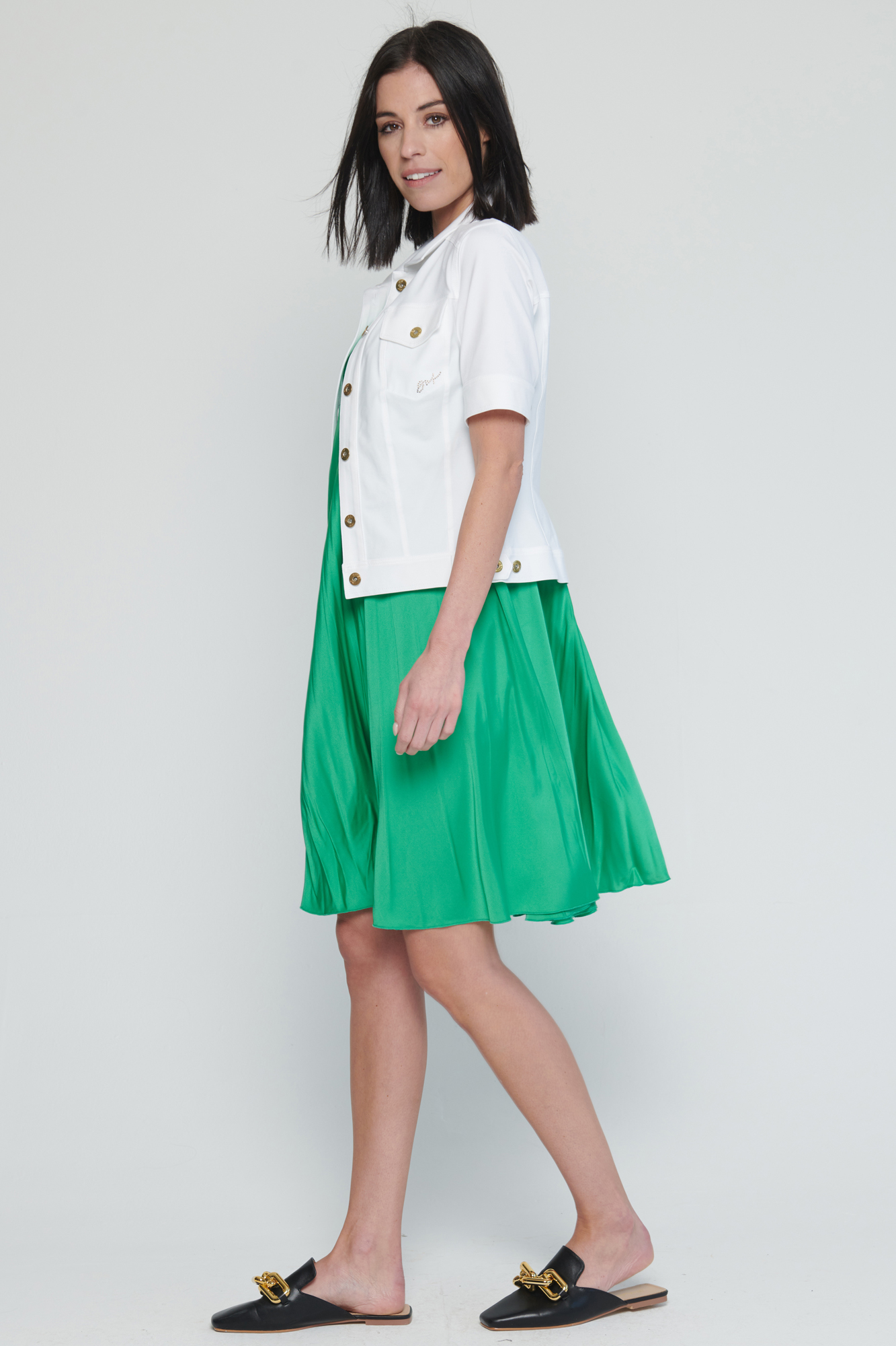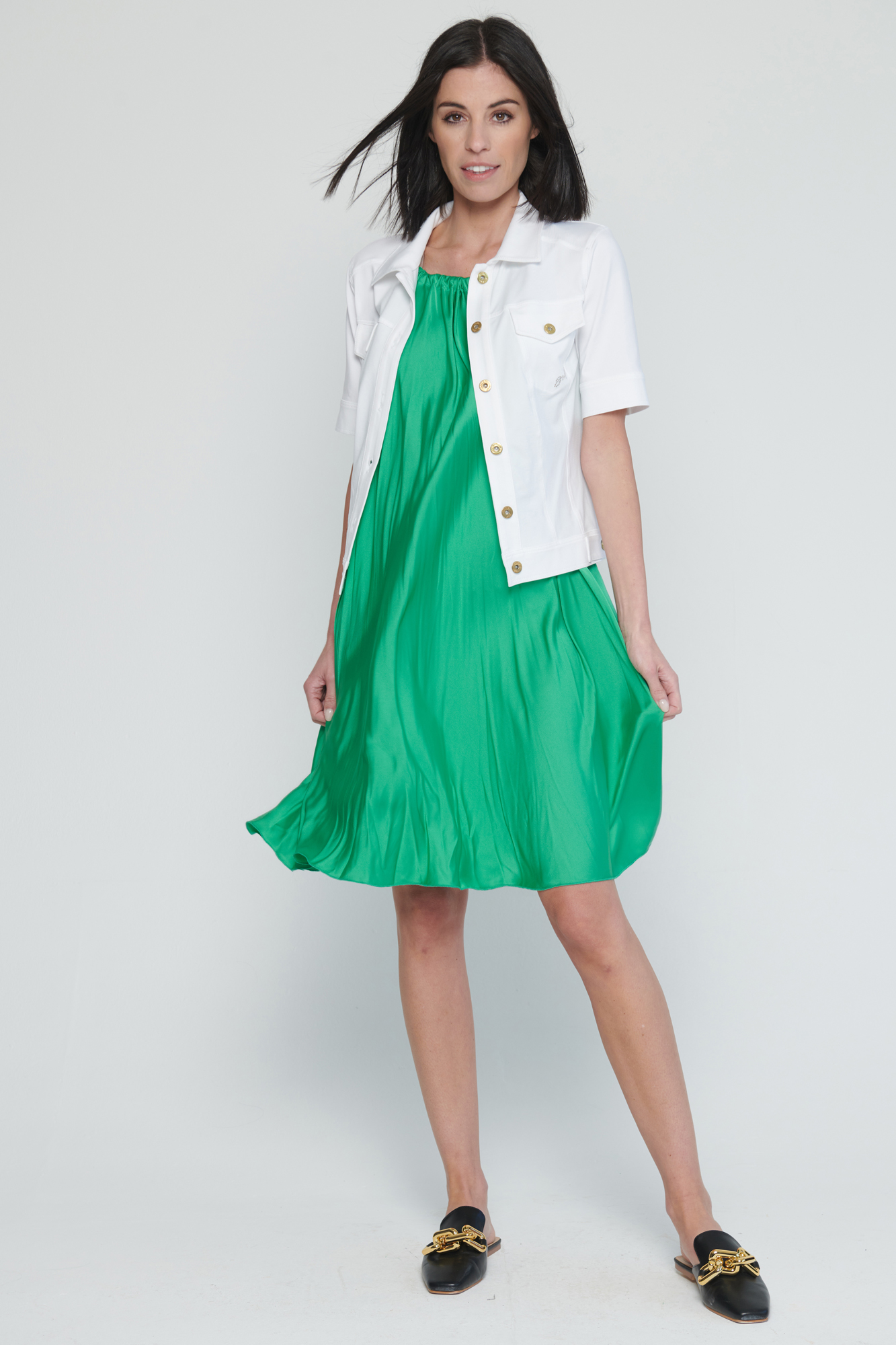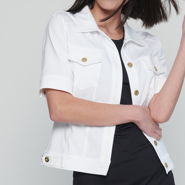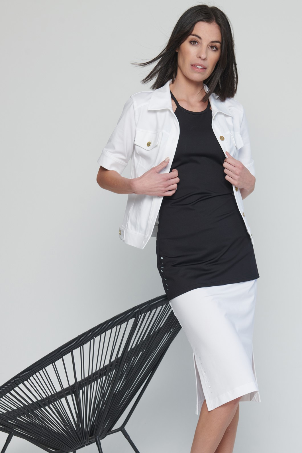 Bundička džínového střihu se zlatými doplňky. Vhodná na všechny letní šaty. Na kapse malé zlaté crystal logo INF.
