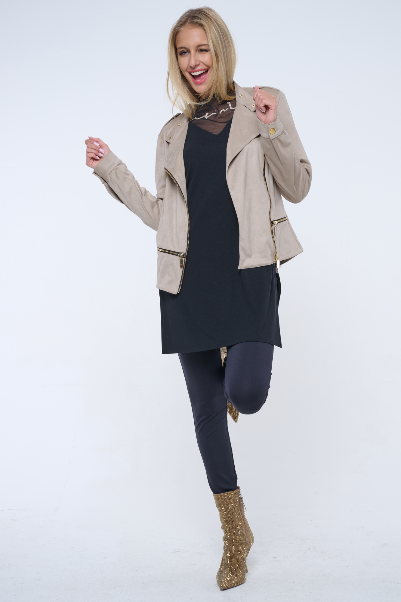 Křivák ze strečového ekosemiše. Zlaté doplňky.