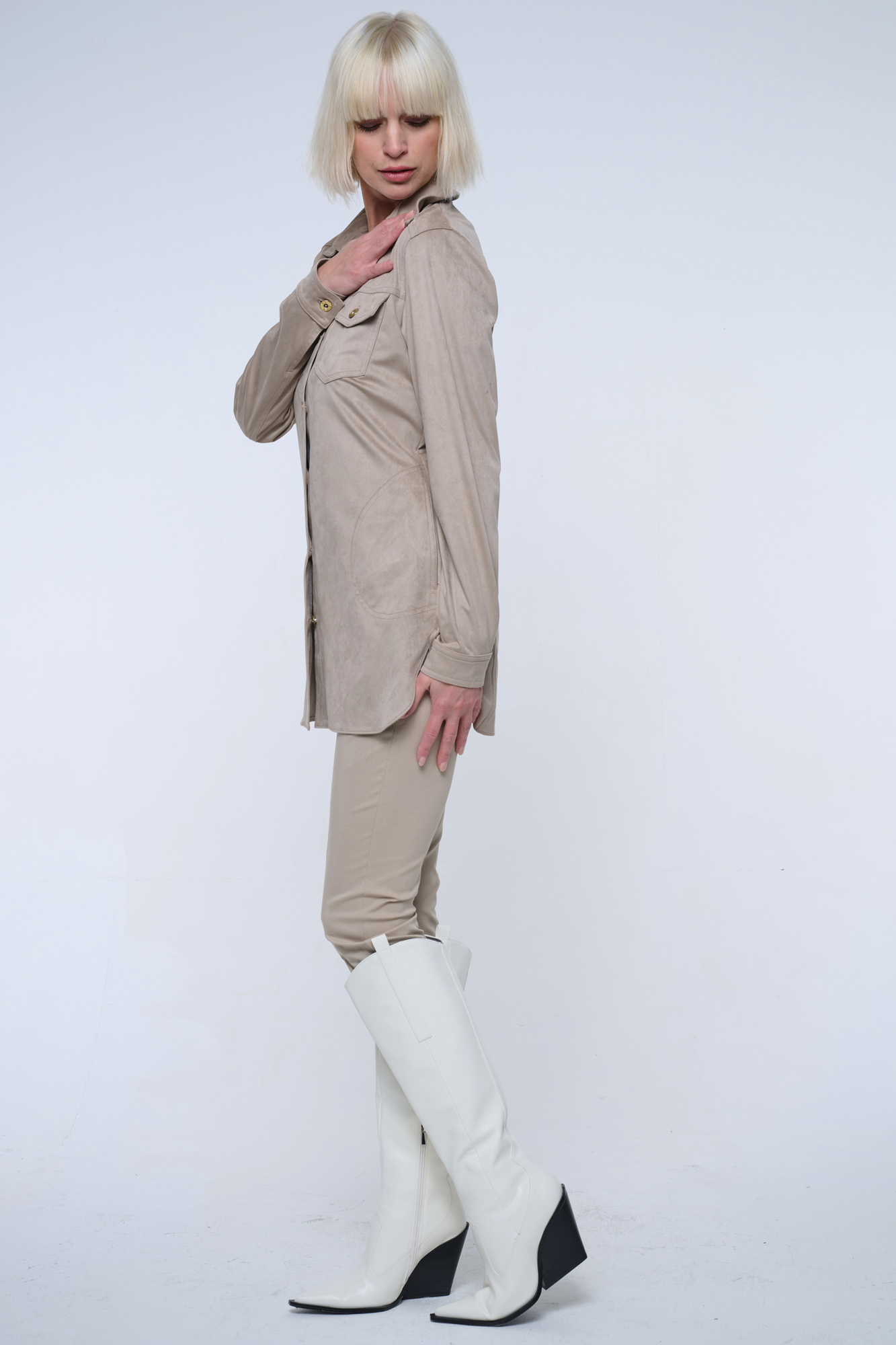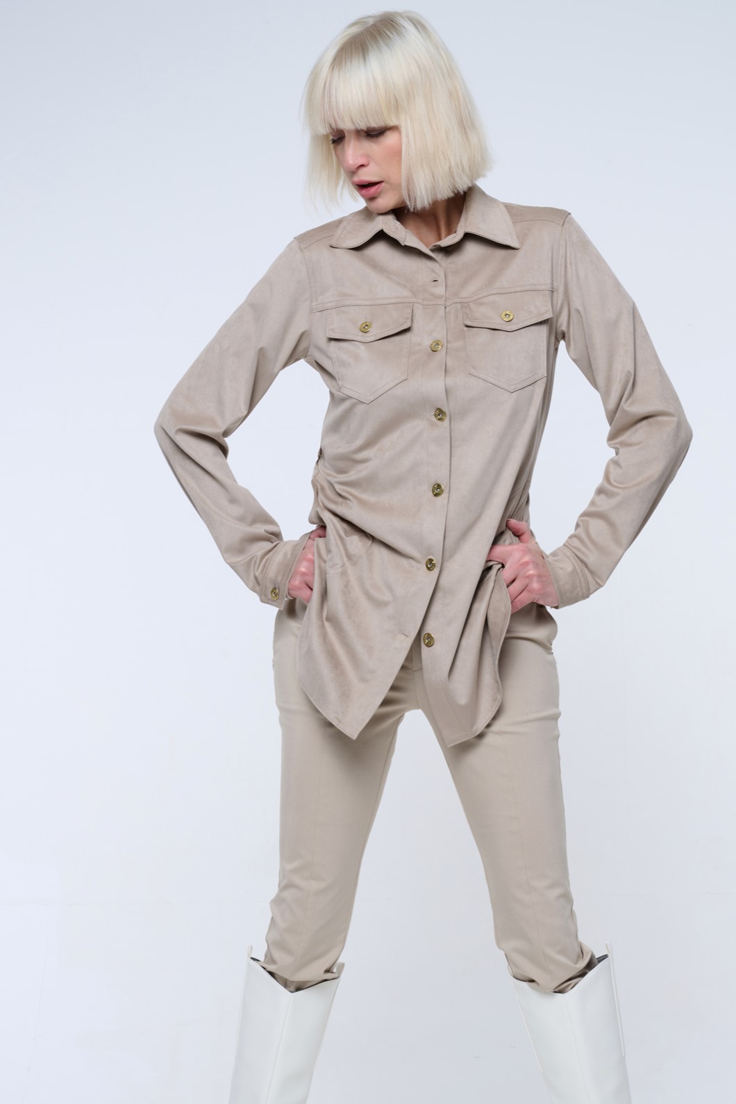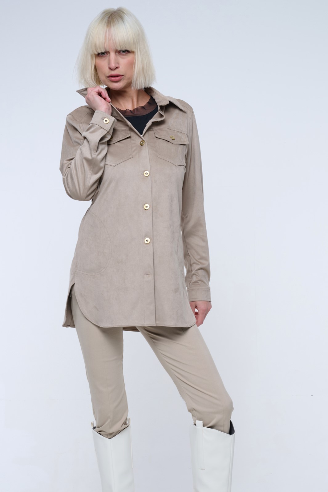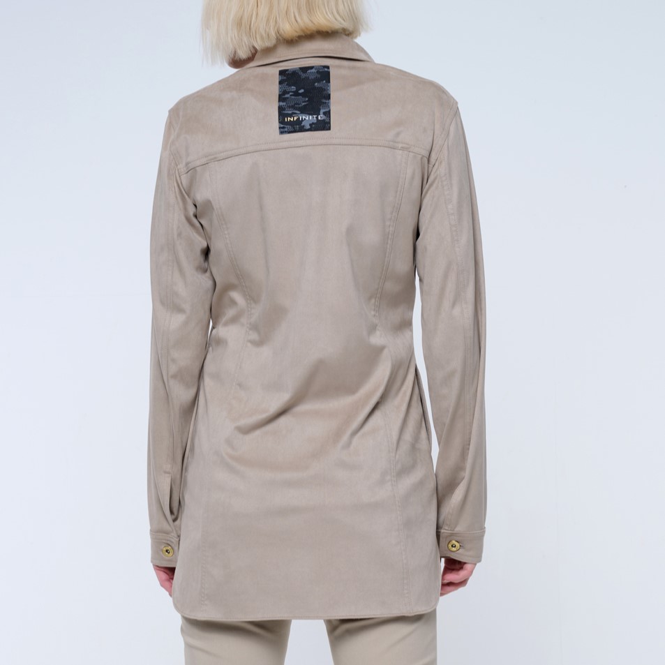 Blejzr košilového střihu ze strečového ekosemiše.