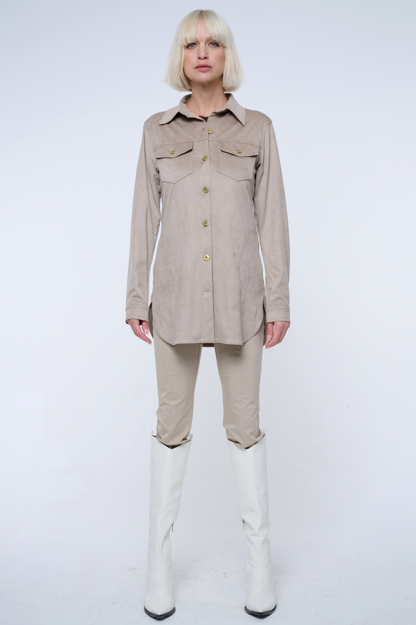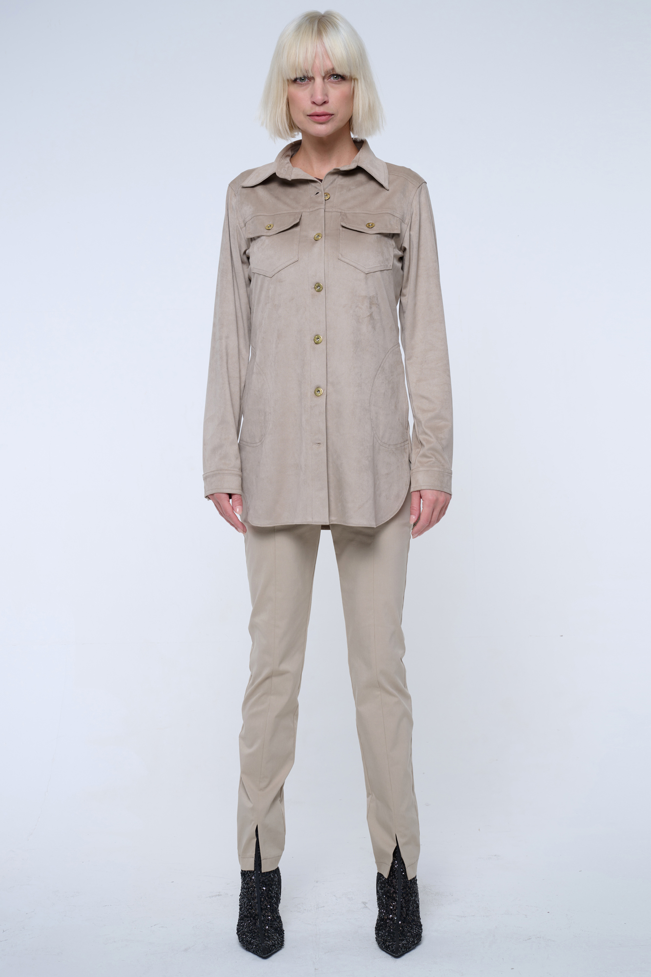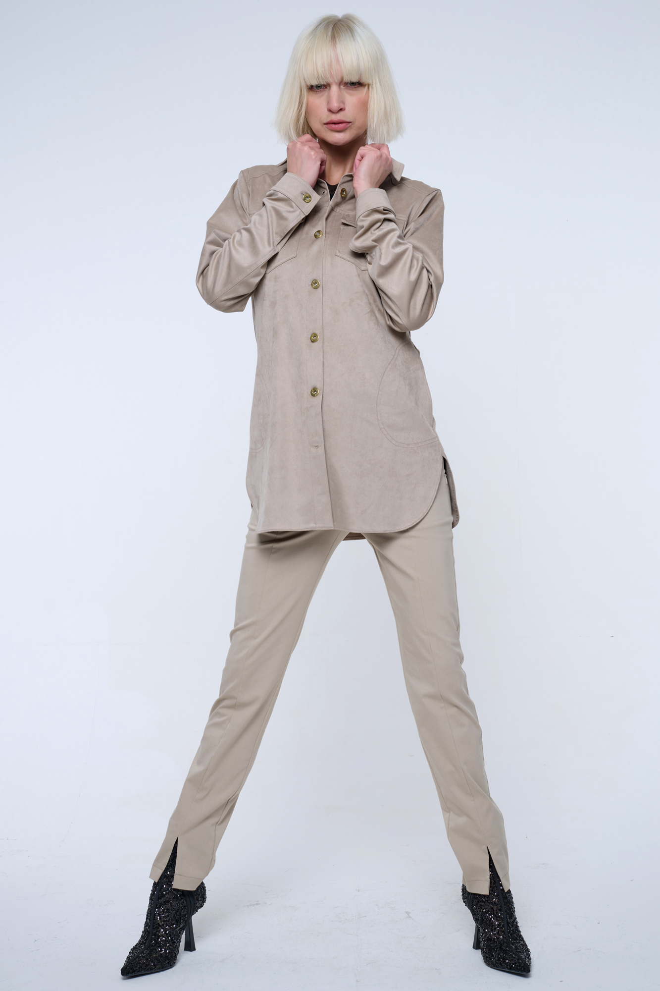Blejzr košilového střihu ze strečového ekosemiše.