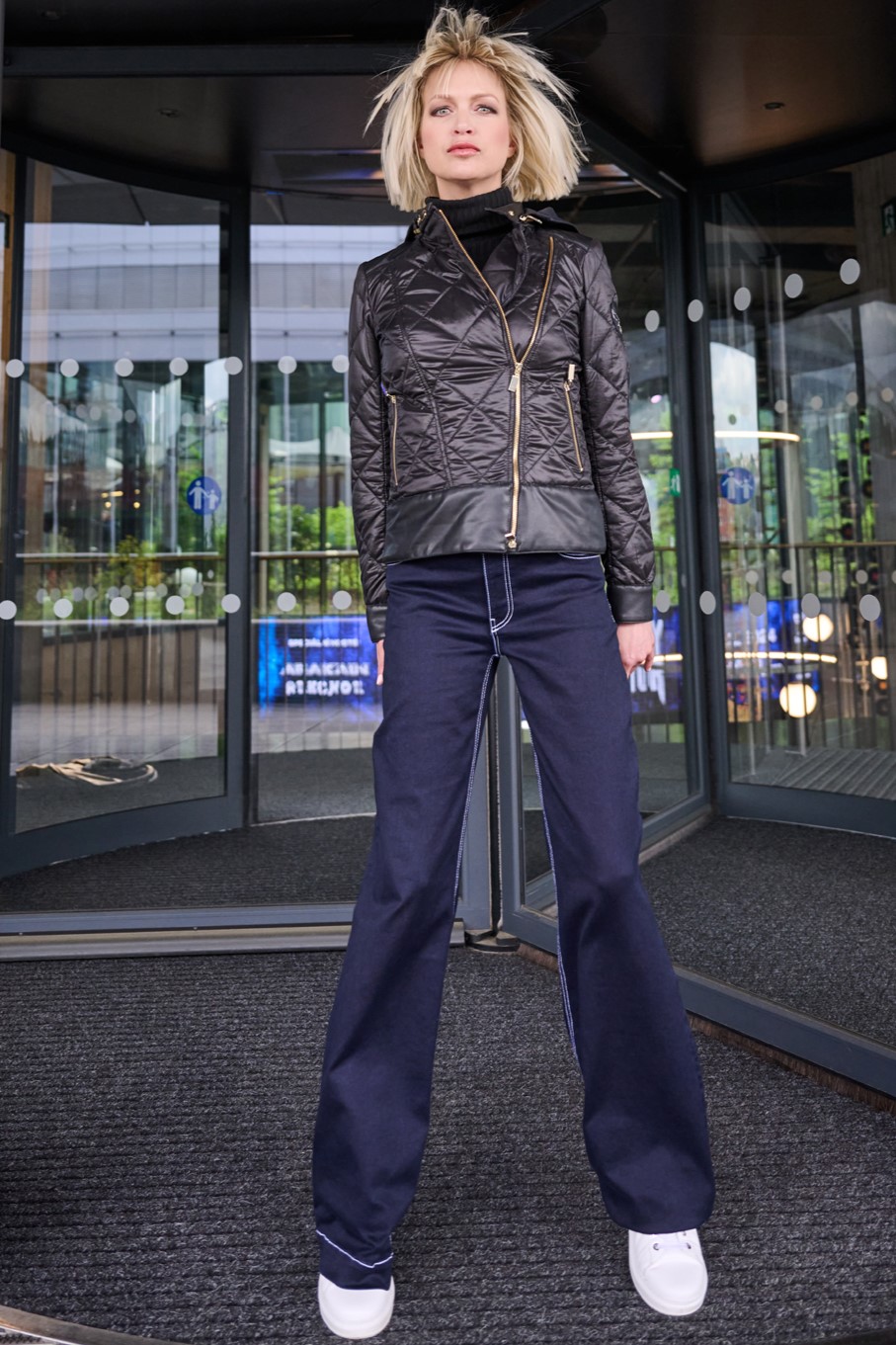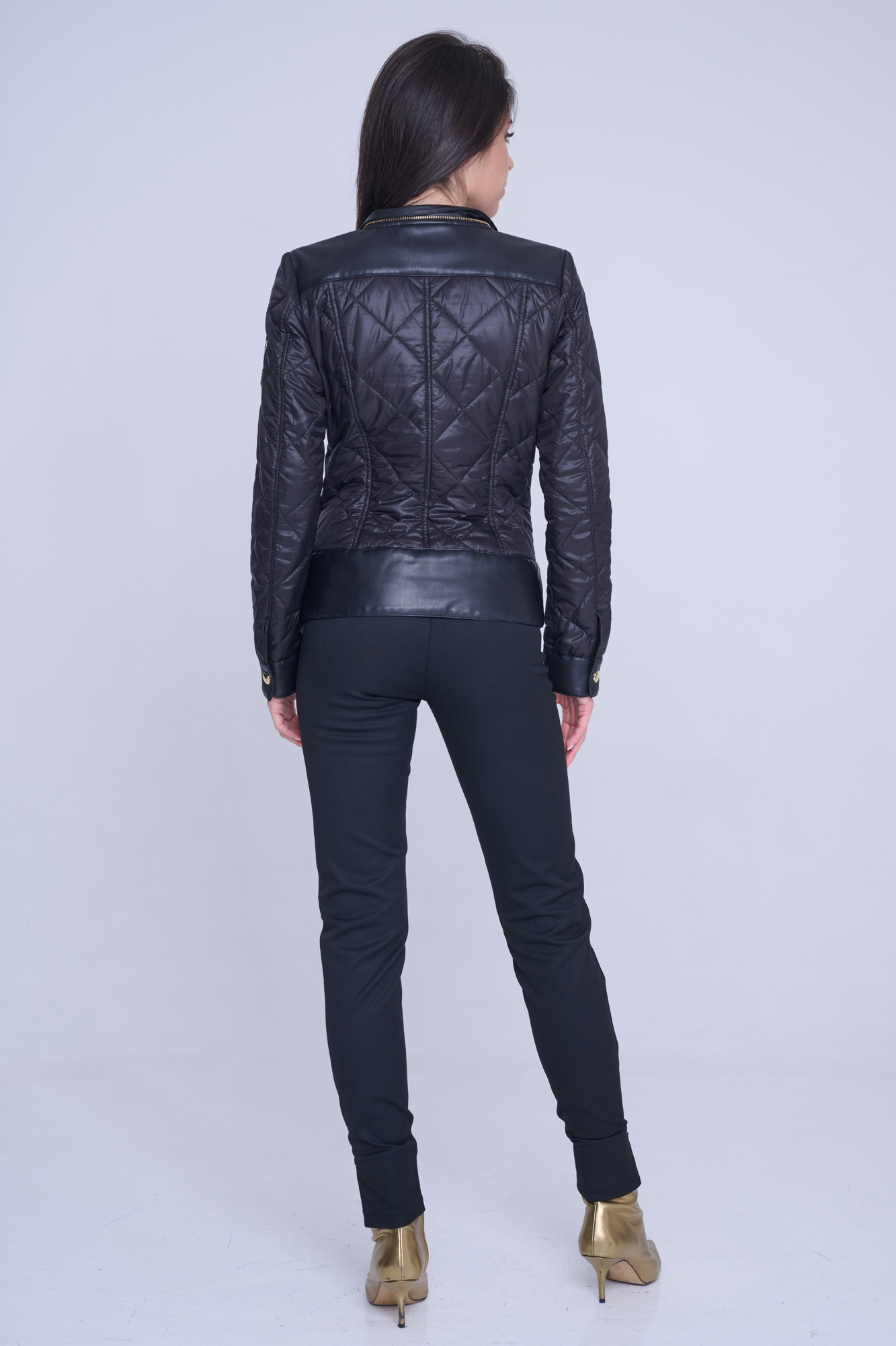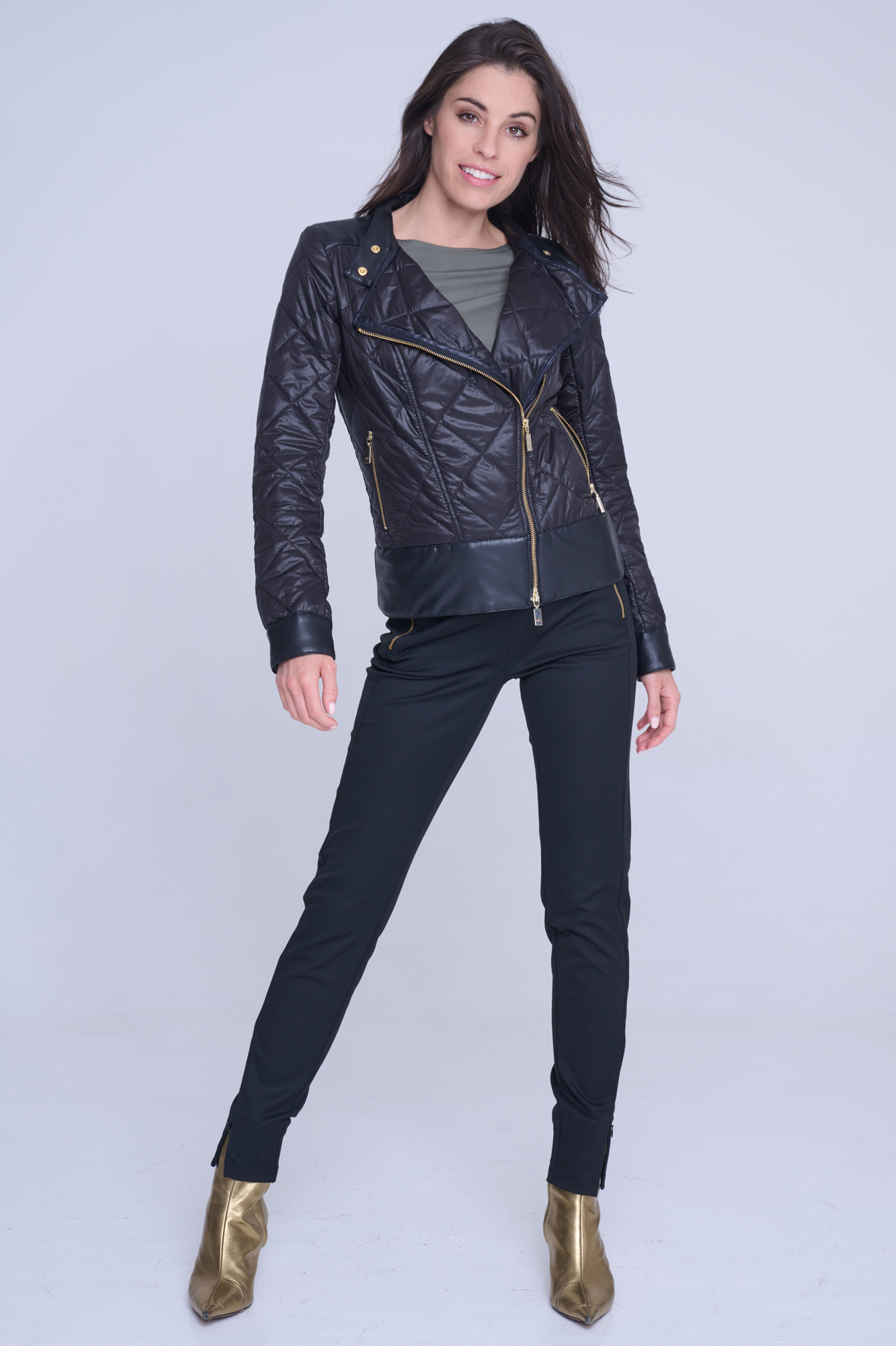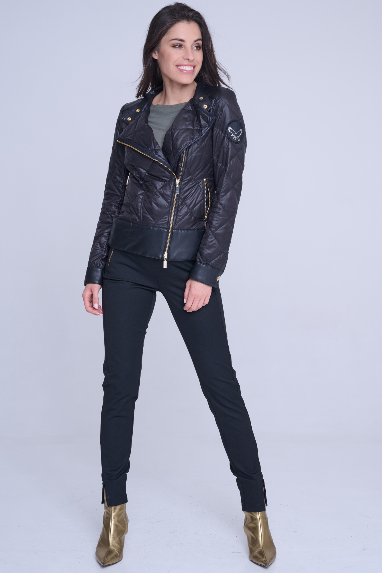 Šusťákový křivák Infinite s odpínatelnou kapucí. V kombinaci s ekokůží. Zlaté doplňky.