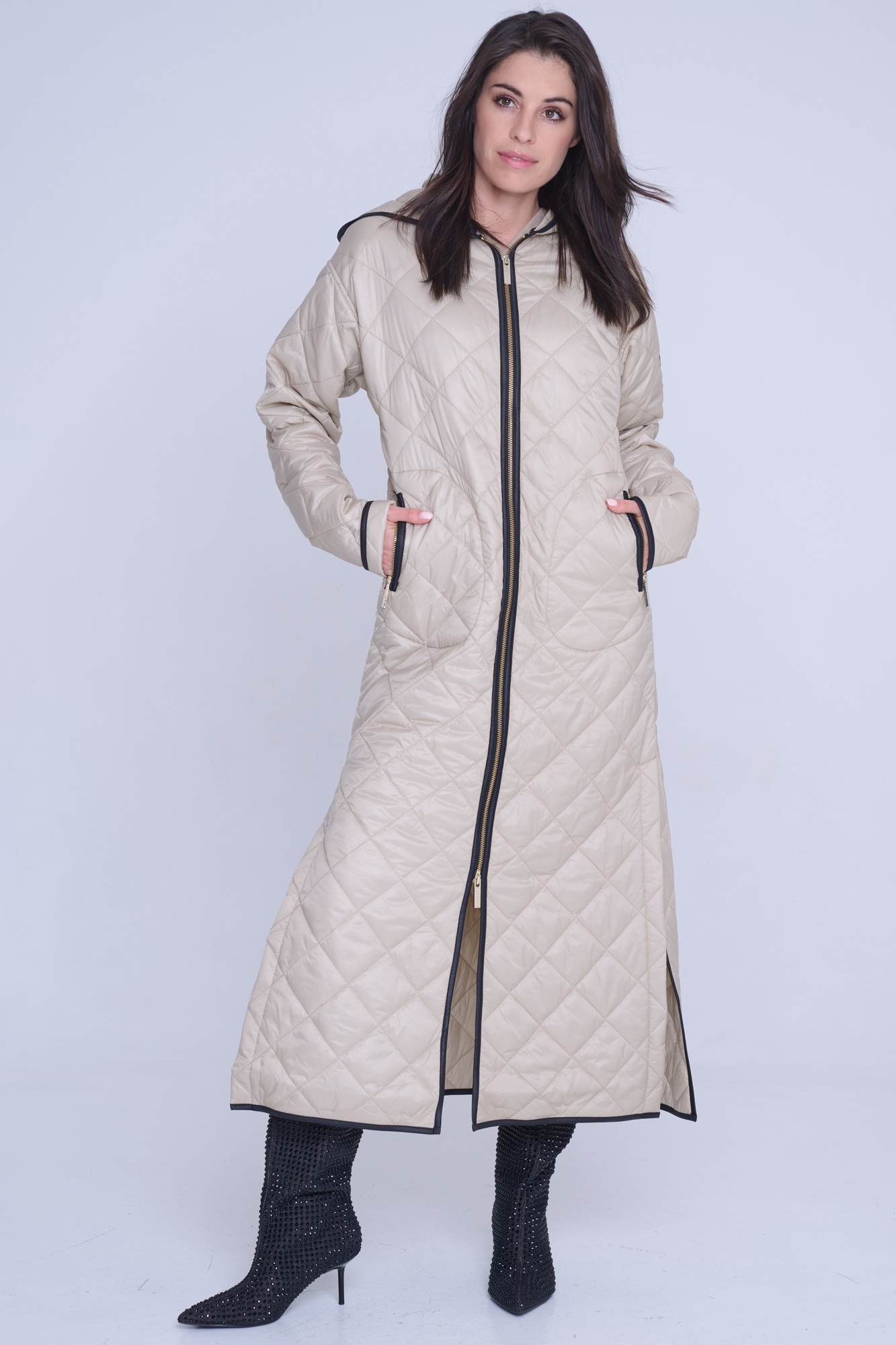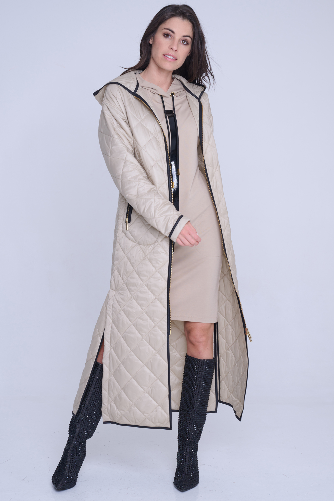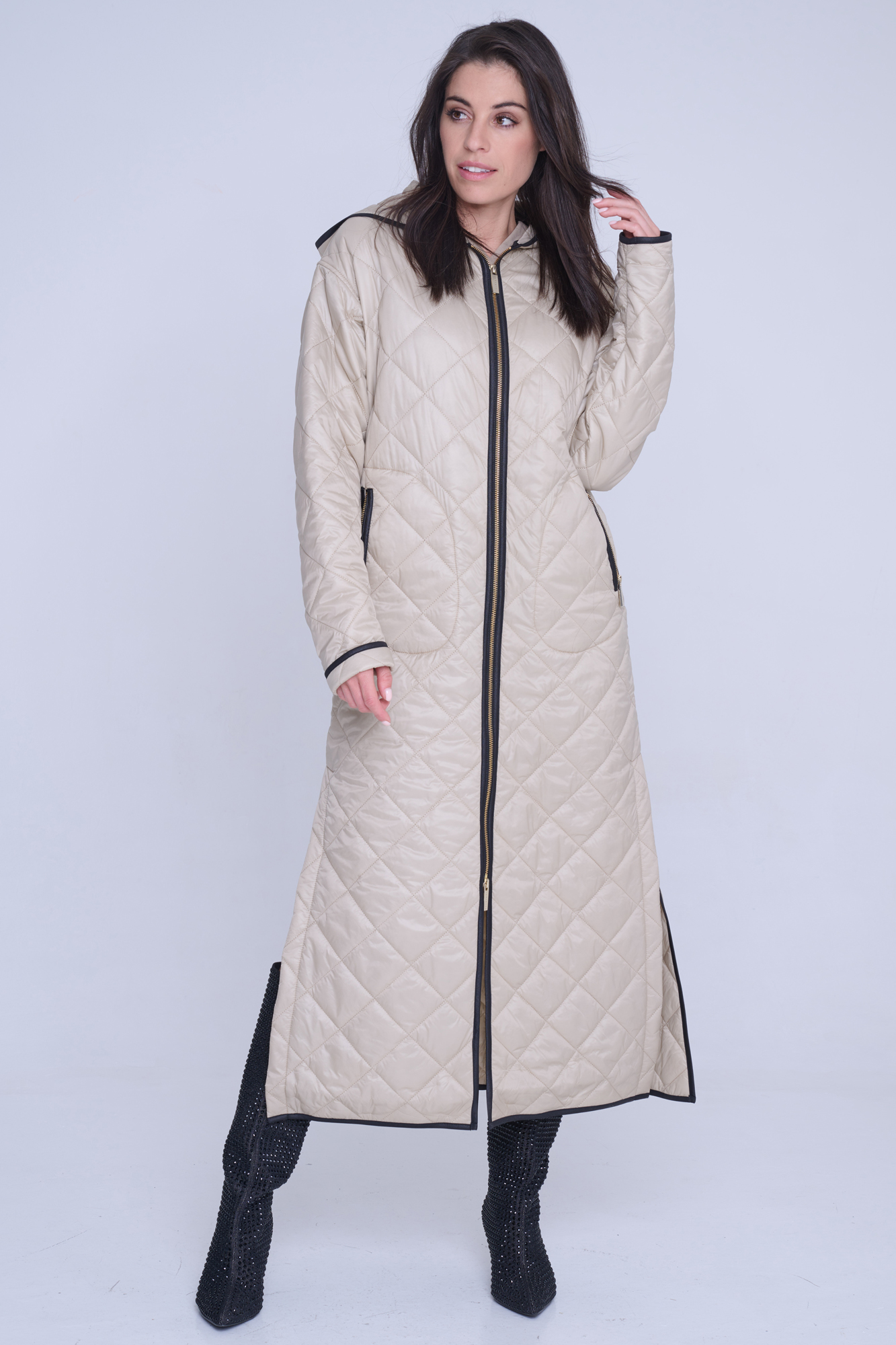 • detail 643-259B dlouhý lehký prošívaný kabát